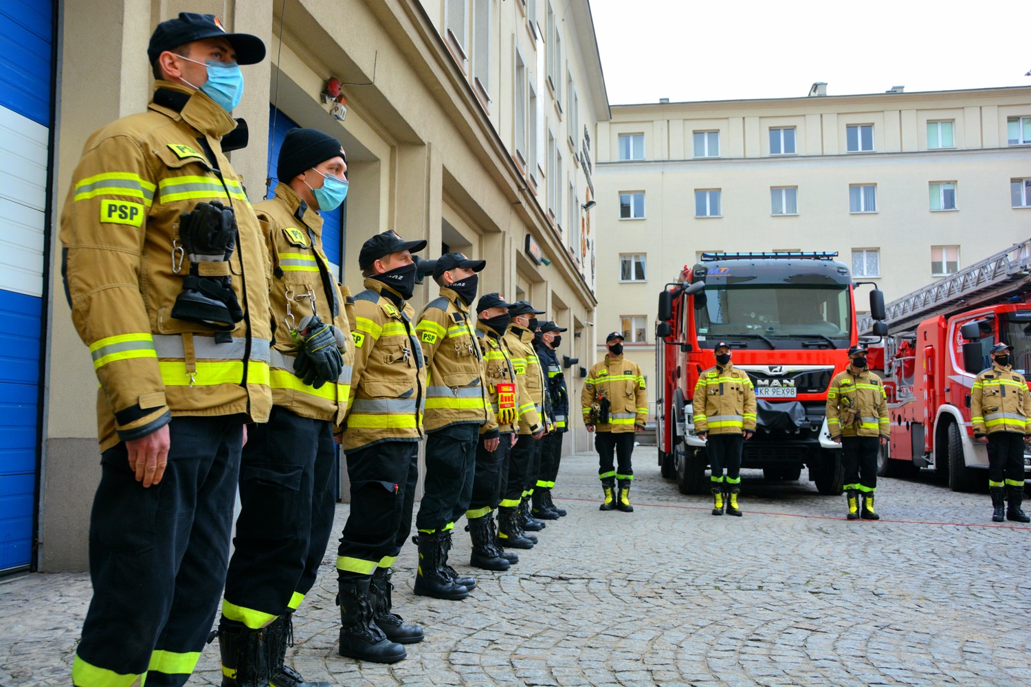 22 stycznia 2021 r. na terenie Szkoły Aspirantów PSP w Krakowie, odbyła się odprawa z przygotowującymi się do wyjazdu strażakami. To grupa 66 strażaków PSP, w tym 59 ratowników medycznych. W odprawie wziął udział wojewoda małopolski Łukasz Kmita, małopolski komendant wojewódzki PSP st. bryg. Piotr Filipek oraz komendant Szkoły Aspirantów PSP w Krakowie mł. bryg. Marek Chwała wraz z zastępcami.