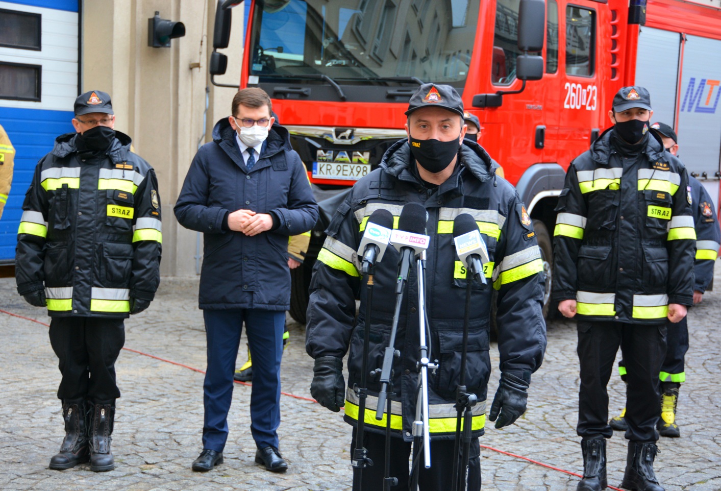 - Jesteśmy po to, aby pomagać nie tylko na własnym terenie, ale także poza granicami naszego kraju. Dzisiejsza akcja jest jednym z wielu elementów działań jakie Państwowa Straż Pożarna podejmuje w walce z COVID-19. Jako funkcjonariusze PSP będziemy wspierali działania związane z testowaniem na Słowacji. W imieniu komendanta głównego Państwowej Straży Pożarnej nadbrygadiera Andrzeja Bartkowiaka dziękuję Wam serdecznie za tę gotowość do niesienia pomocy oraz za to, że bez chwili wahania zdecydowaliście się wziąć udział w tej misji - powiedział małopolski komendant wojewódzki Państwowej Straży Pożarnej st. bryg. Piotr Filipek.