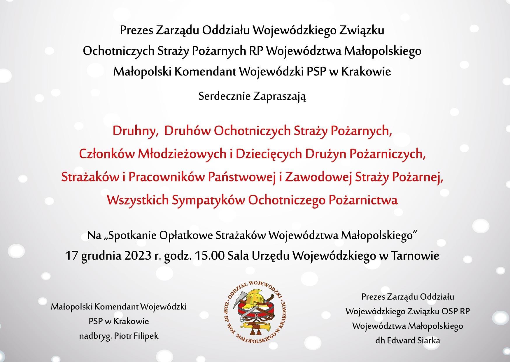 Szanowni Strażacy PSP i OSP woj. małopolskiego, zapraszamy na tradycyjne spotkanie opłatkowe