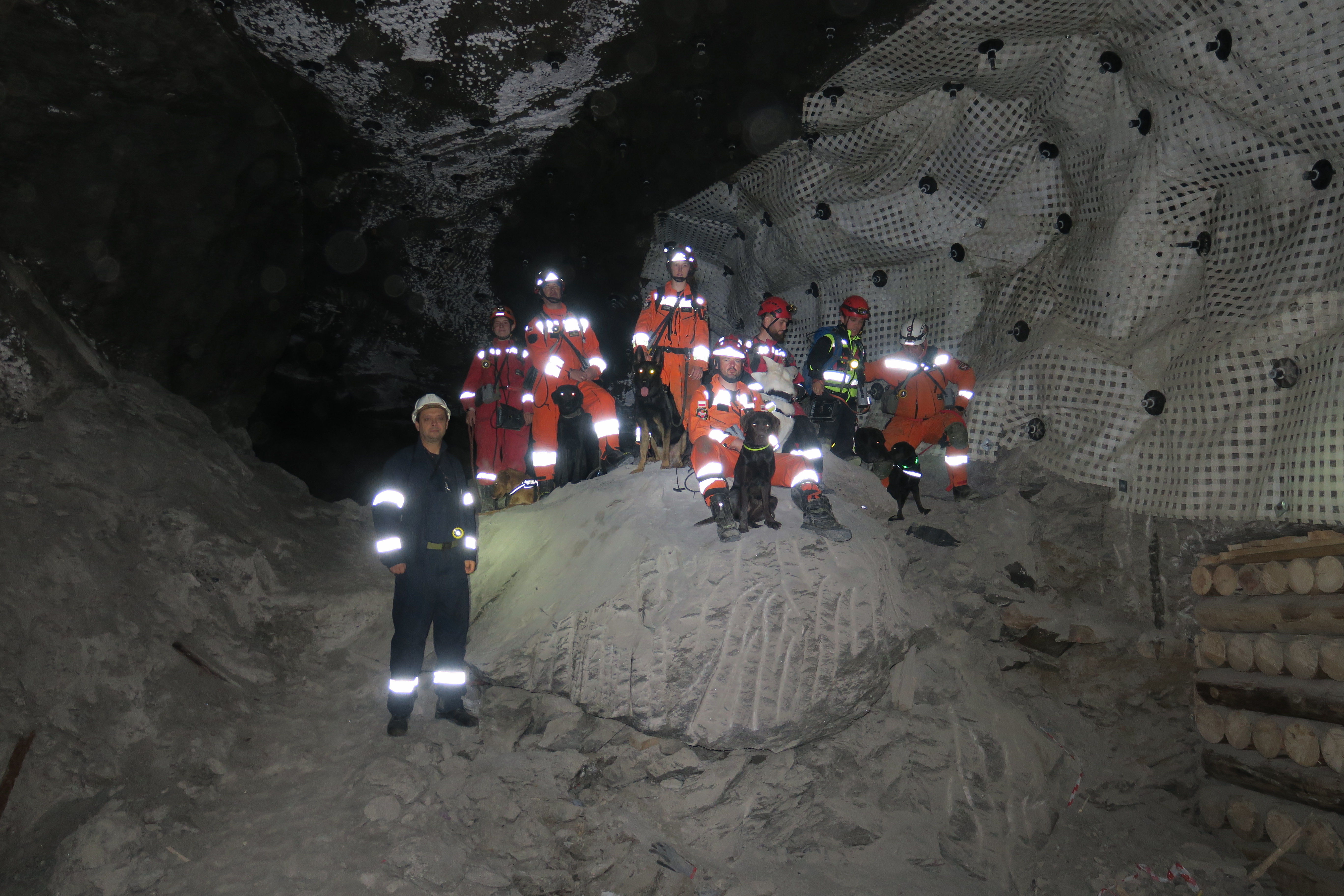 Trening zespołów ratowniczych specjalności gruzowiskowej (przewodników i psów ratowniczych) w wyrobiskach Kopalni Soli w Wieliczce jest bardzo cennym doświadczeniem, a zarazem kolejnym wartościowym miejscem do pracy zespołów ratowniczych w trudnych warunkach. Jest to zarazem urozmaicenie środowiska pracy dla psa ratowniczego. Kopalnia daje możliwość samodzielnej pracy psa w dystansie, pracy na niestabilnym podłożu, w ciemności, na różnych wysokościach wyrobisk, w ciasnych wnękach jak i dużych przestrzeniach, które dają możliwości różnych scenariuszy lokalizacji "zaginionego" pozoranta.