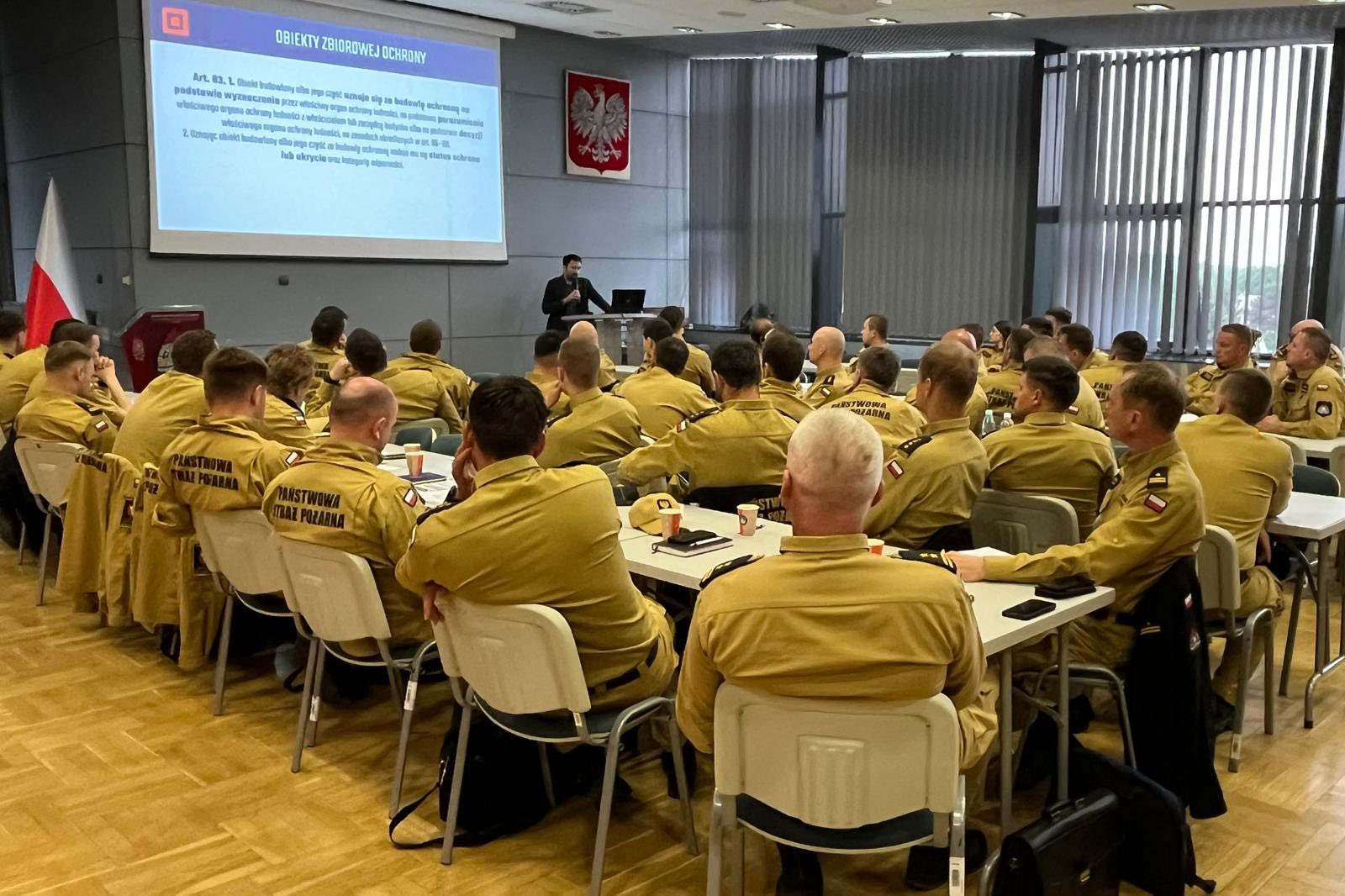 Podkreślić należy, że przedmiotowe szkolenie związane jest z nowym zadaniem przydzielonym Państwowej Straży Pożarnej, o którym mowa w art. 107 ust. 2 ustawy z dnia 5 grudnia 2024 r. o ochronie ludności i obronie cywilnej (Dz. U. z 2025 r., poz. 1907) polegającym na kontroli spełniania przez obiekty zbiorowej ochrony wymagań w zakresie bezpieczeństwa pożarowego, a także wymagań dotyczących wyposażenia budowli ochronnej.