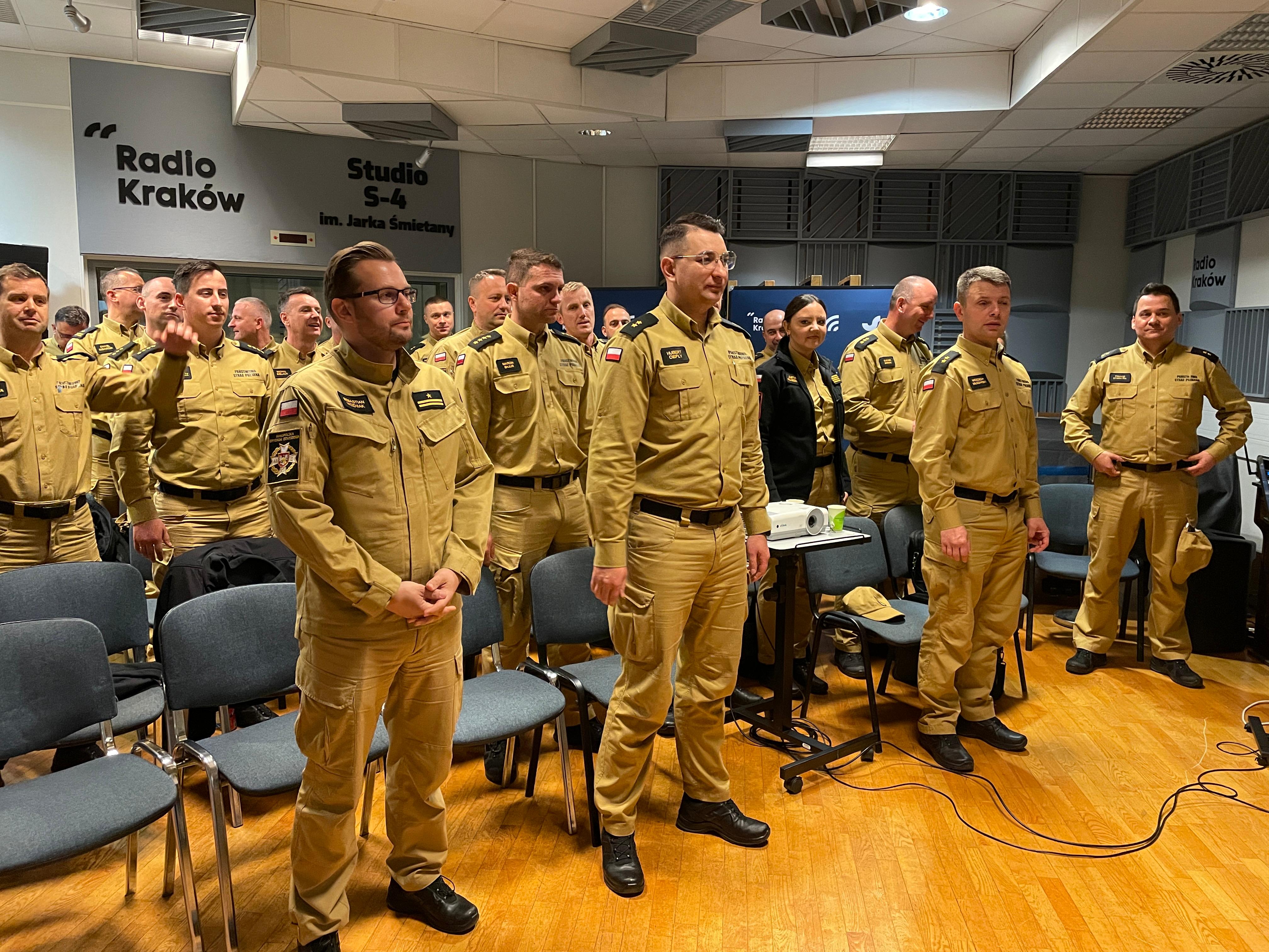 Meldunek o rozpoczęciu szkolenie przyjął Zastępca Małopolskiego Komendanta Wojewódzkiego Państwowej Straży Pożarnej w Krakowie st. bryg. Arkadiusz Kielin, który wspólnie z st. bryg. Piotrem Gadowskim skierował słowa podziękowania dla wszystkich strażaków zajmujących się udzieleniem informacji mediom.