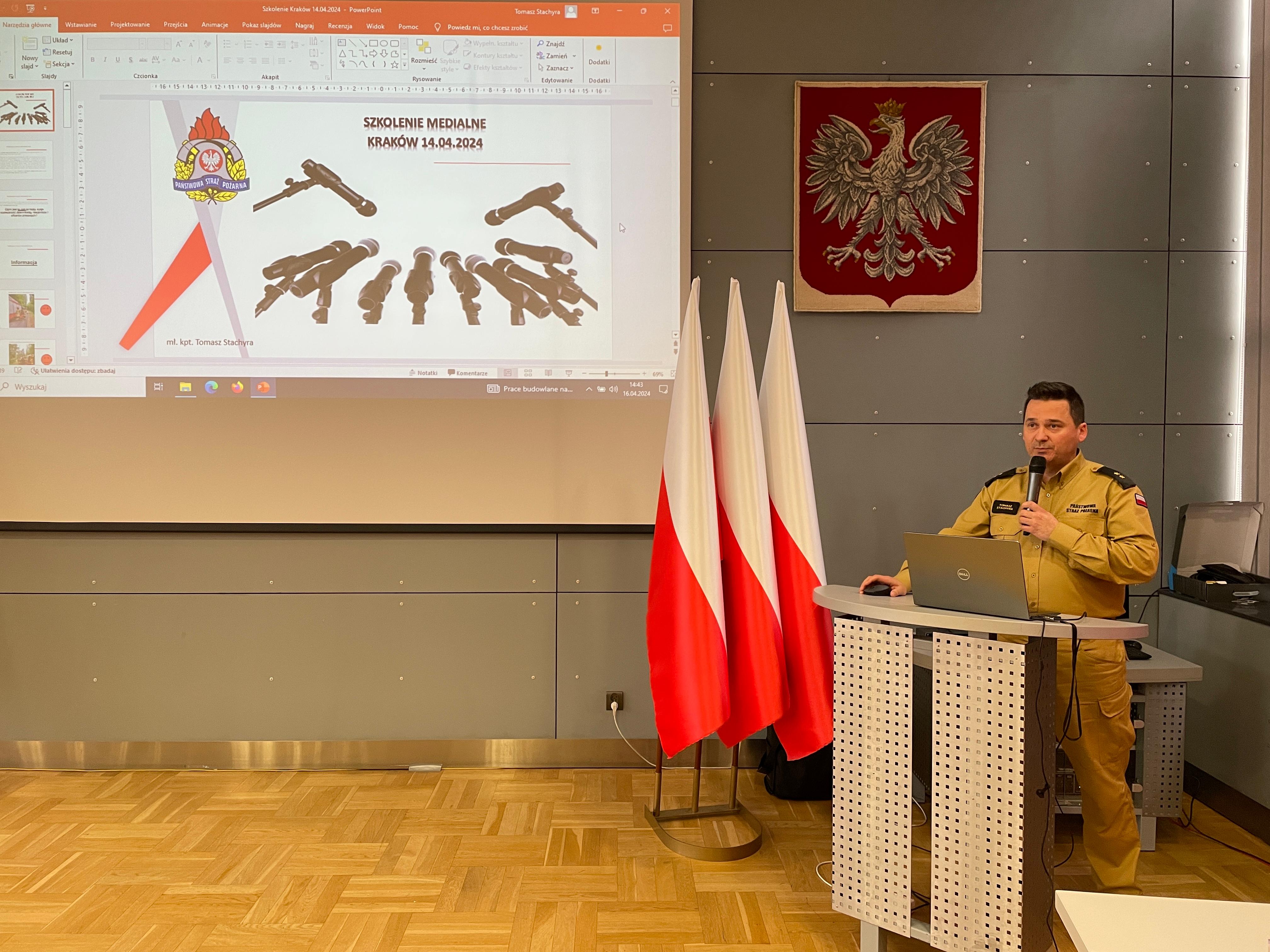 W Komendzie Wojewódzkiej Państwowej Straży Pożarnej w Krakowie odbyło się szkolenie medialne dla oficerów prasowych woj. małopolskiego oraz zaproszonych gości.