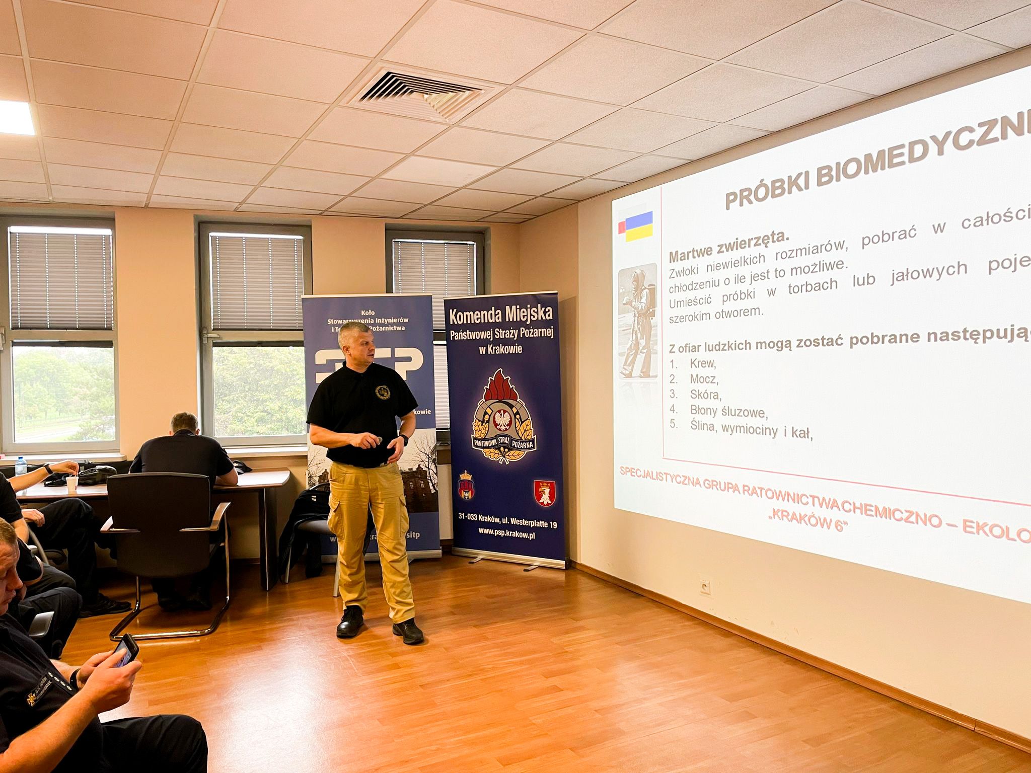 Jesteśmy już po kilku dniach szkolenia dla Strażaków z Ukrainy w zakresie likwidacji skażeń chemicznych i radiologicznych ze szczególnym uwzględnieniem zdarzeń z udziałem fosforu oraz działań dekontaminacyjnych po eksplozji tzw."brudnej bomby". Szkolenie organizowane jest przez Komendę Wojewódzką PSP w Krakowie w ramach projektu Polska Pomoc.