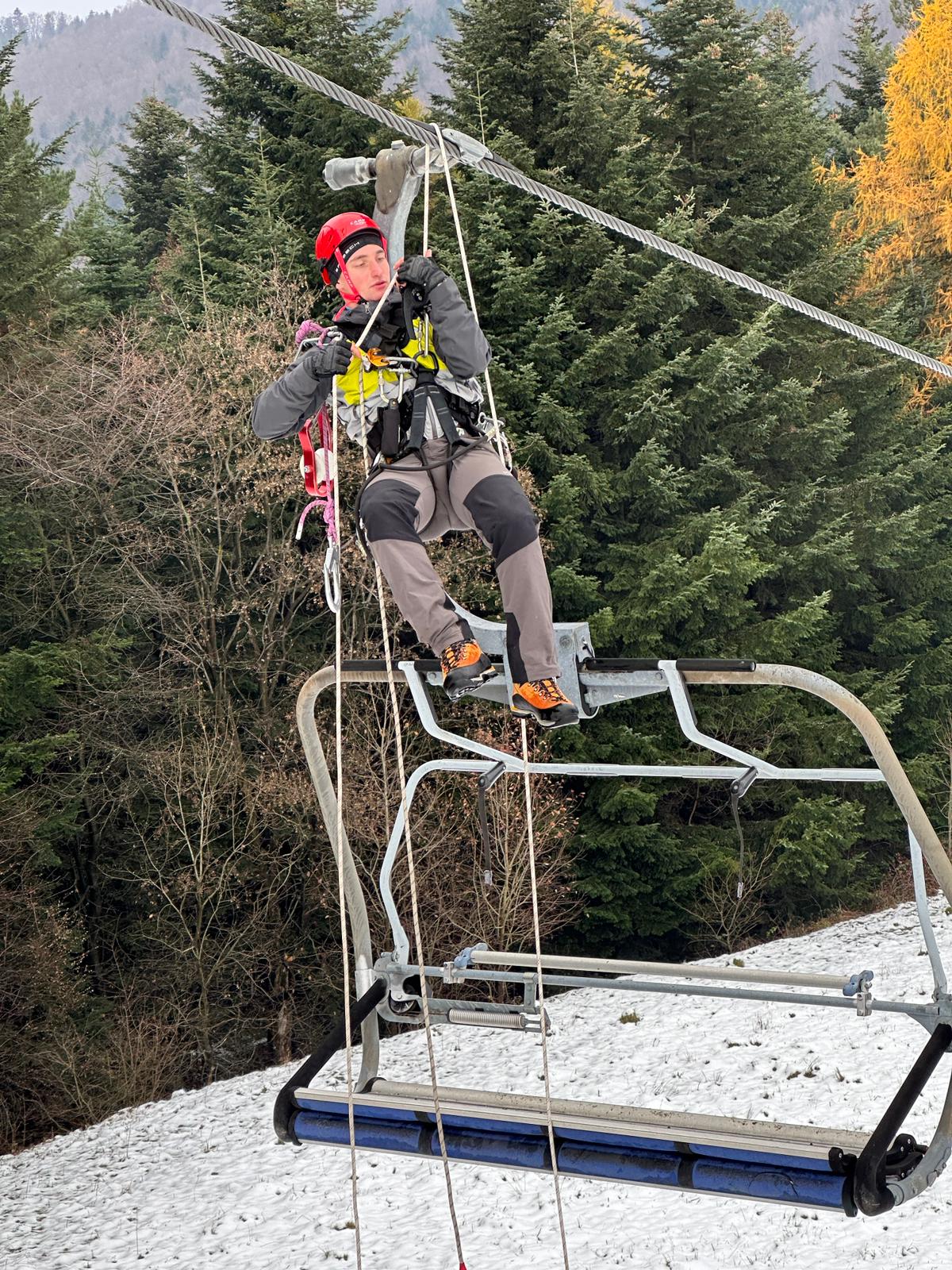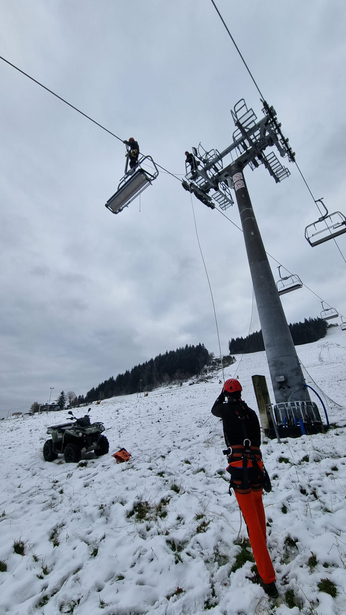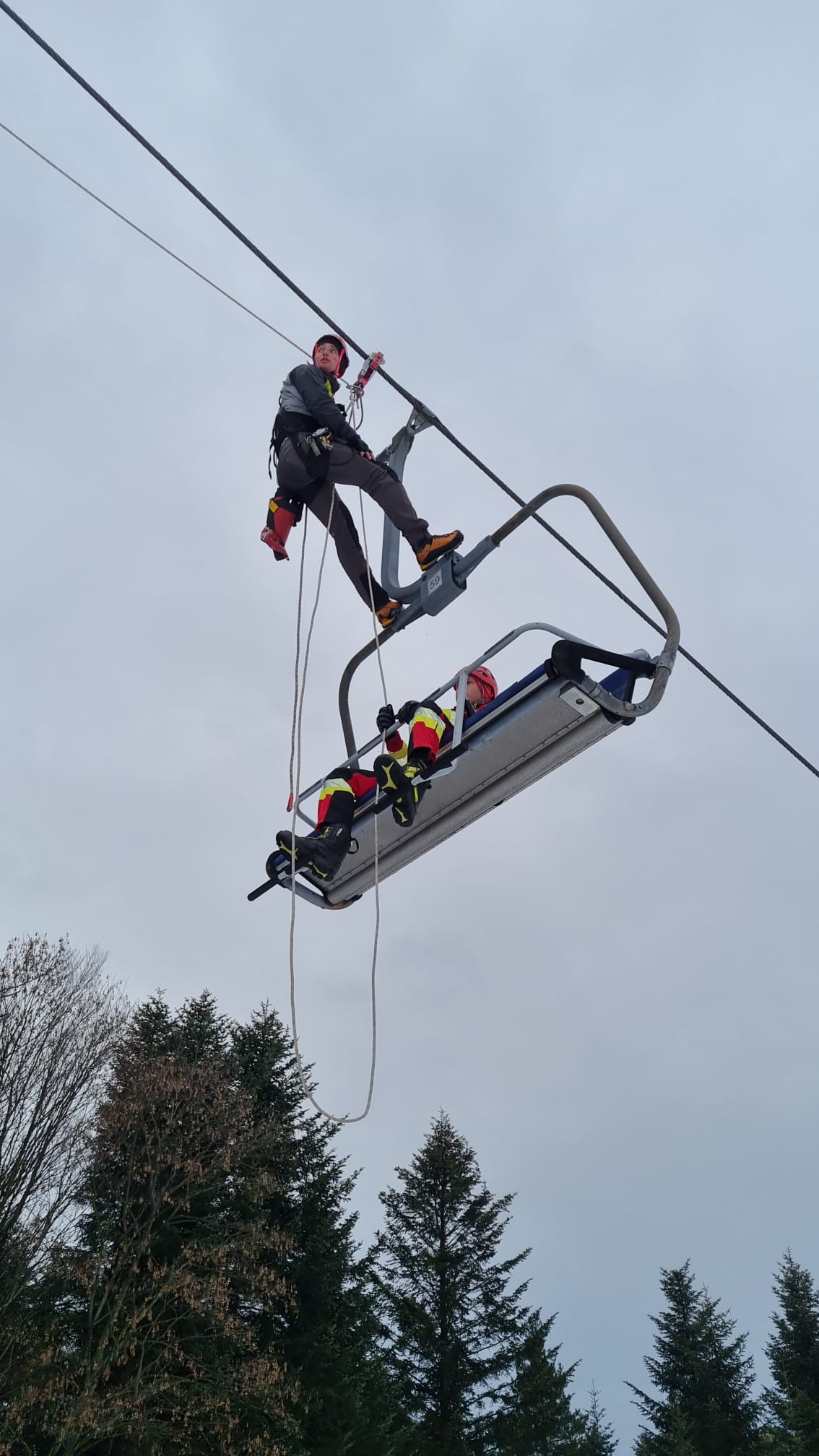 Celem szkolenia było przygotowanie strażaków-ratowników OSP do wykonywania zadań ratownictwa wysokościowego w zakresie podstawowym podczas awaryjnego zatrzymania kolei linowej krzesełkowej.
