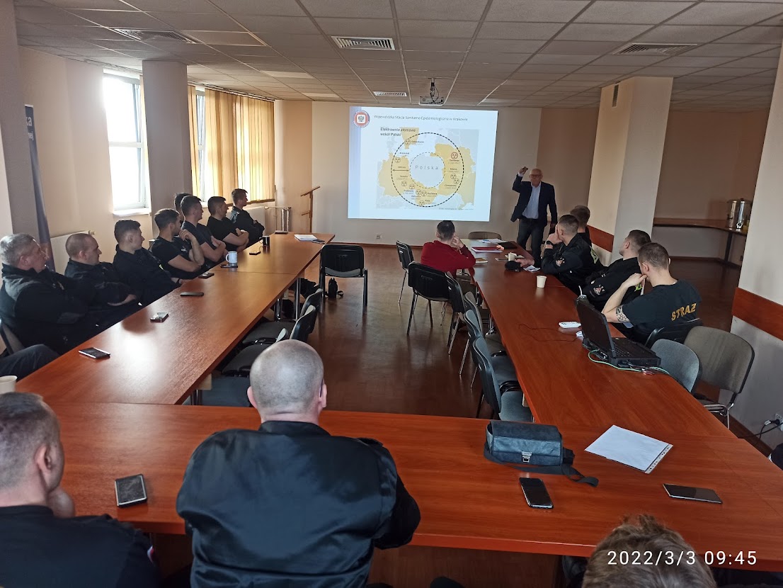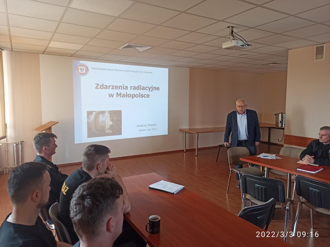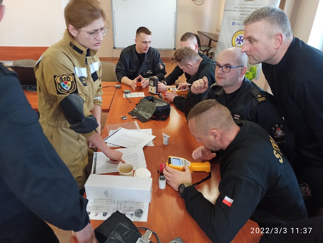 W terminie 2-3 marca 2022r. Komenda Wojewódzka PSP w Krakowie zorganizowała szkolenie z zakresu reagowania na zdarzenia radiacyjne dla członków Specjalistycznych Grup Ratownictwa Chemiczno-Ekologicznego z terenu woj. małopolskiego.