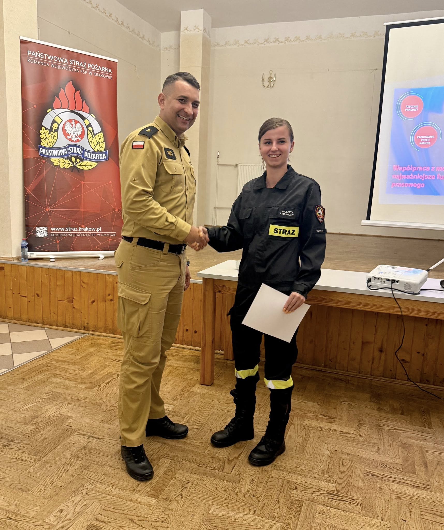 Po zakończeniu szkolenia uczestnicy otrzymali certyfikaty, które wręczył Prezes Zarządu Oddziału Powiatowego ZOSP RP w Krakowie, druh Leszek Zięba.
