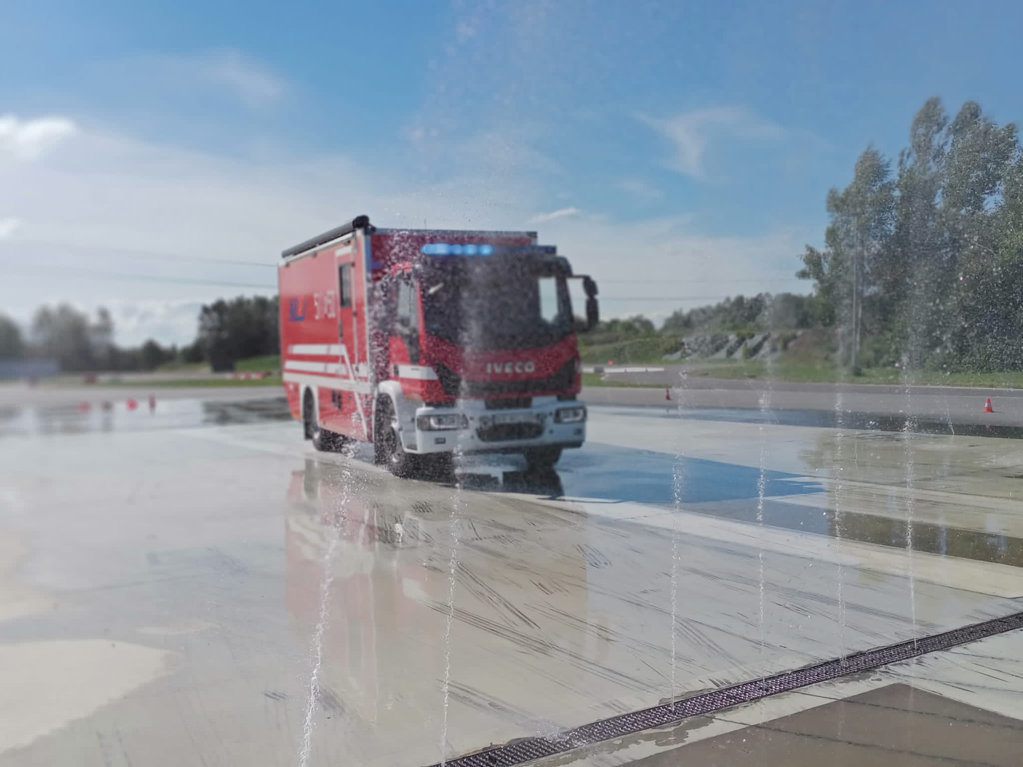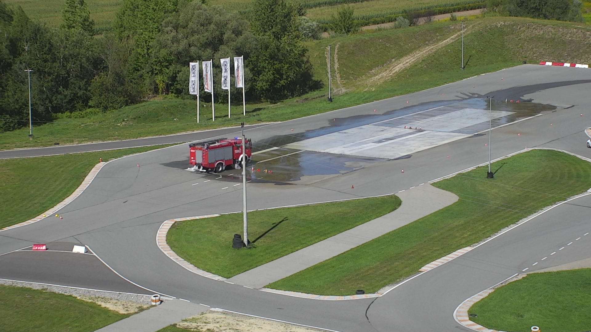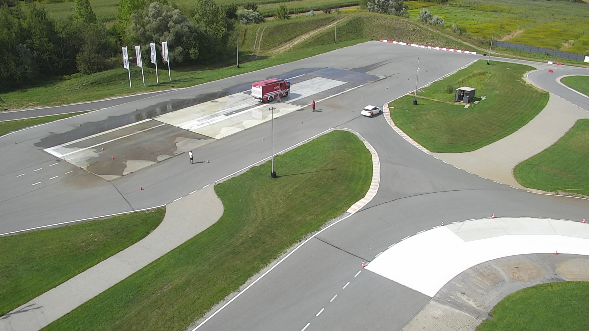 - Hamowanie awaryjne. Hamowanie awaryjne na wprost na przyczepnej, mieszanej i śliskiej nawierzchni. Hamowanie awaryjne z ominięciem przeszkody (kurtyny wodne) i w zakręcie.