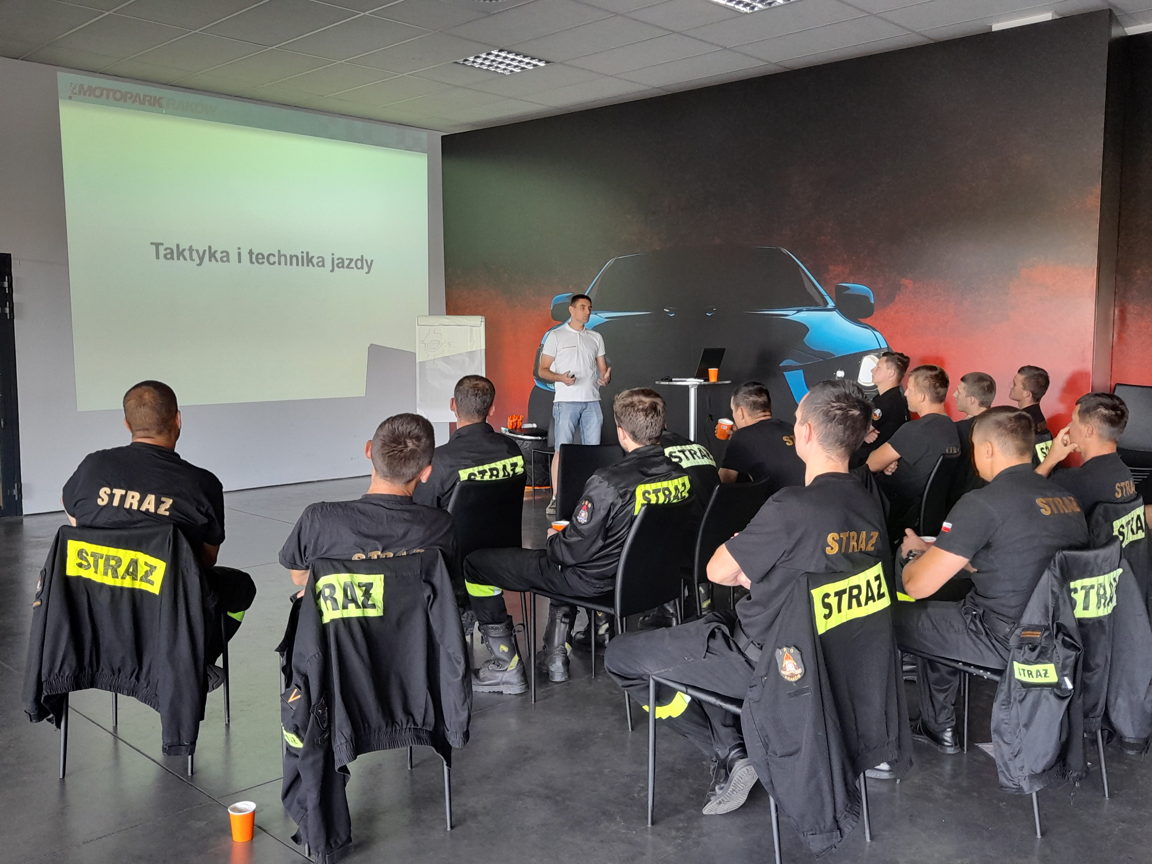 Zajęcia prowadzone były w ośrodku doskonalenia techniki jazdy Moto Park w Krakowie i podzielone zostały na dwie części. W pierwszy dzień szkolenia odbyły się zajęcia teoretyczne w trakcie których omówione zostały następujące tematy: