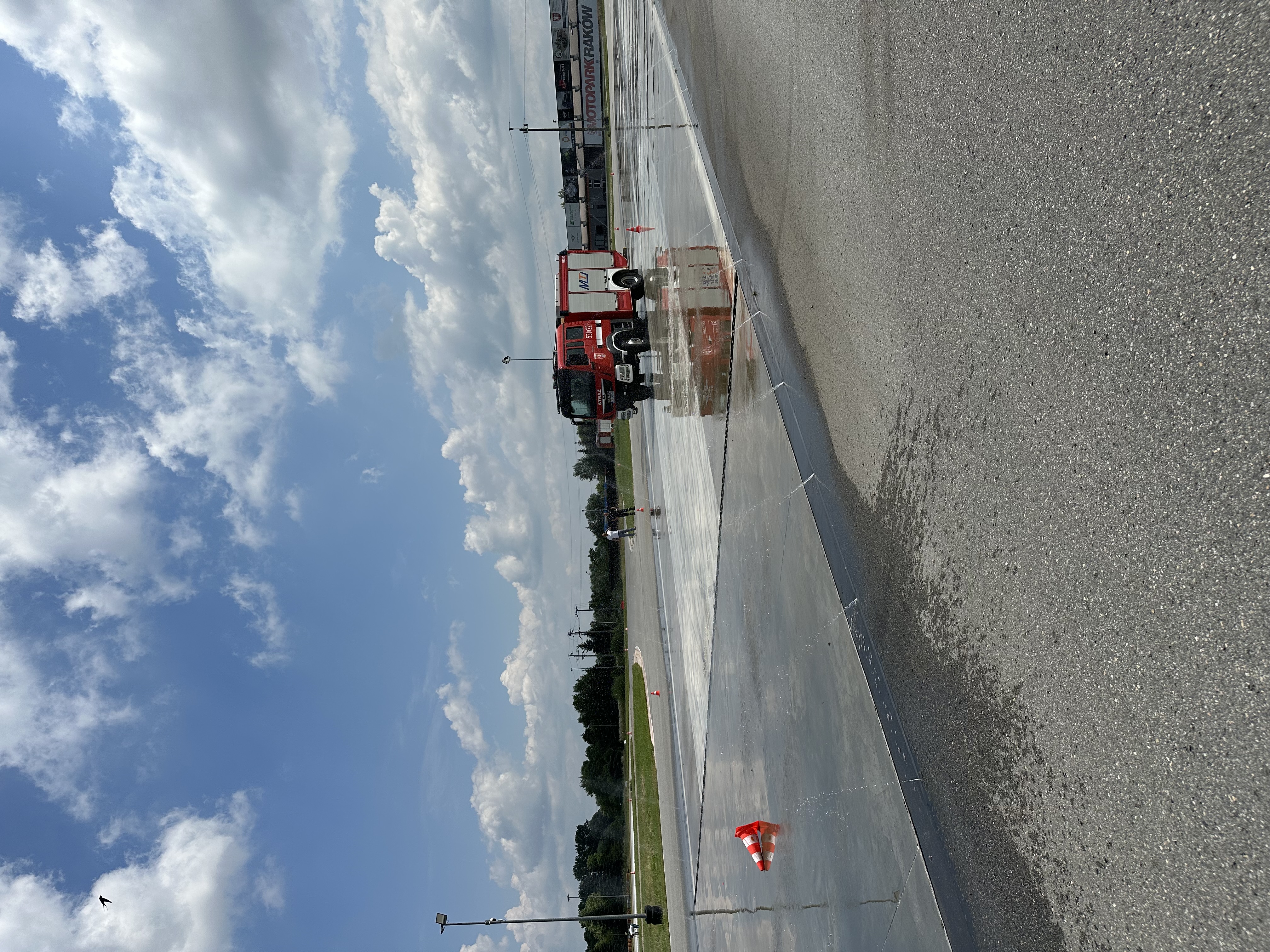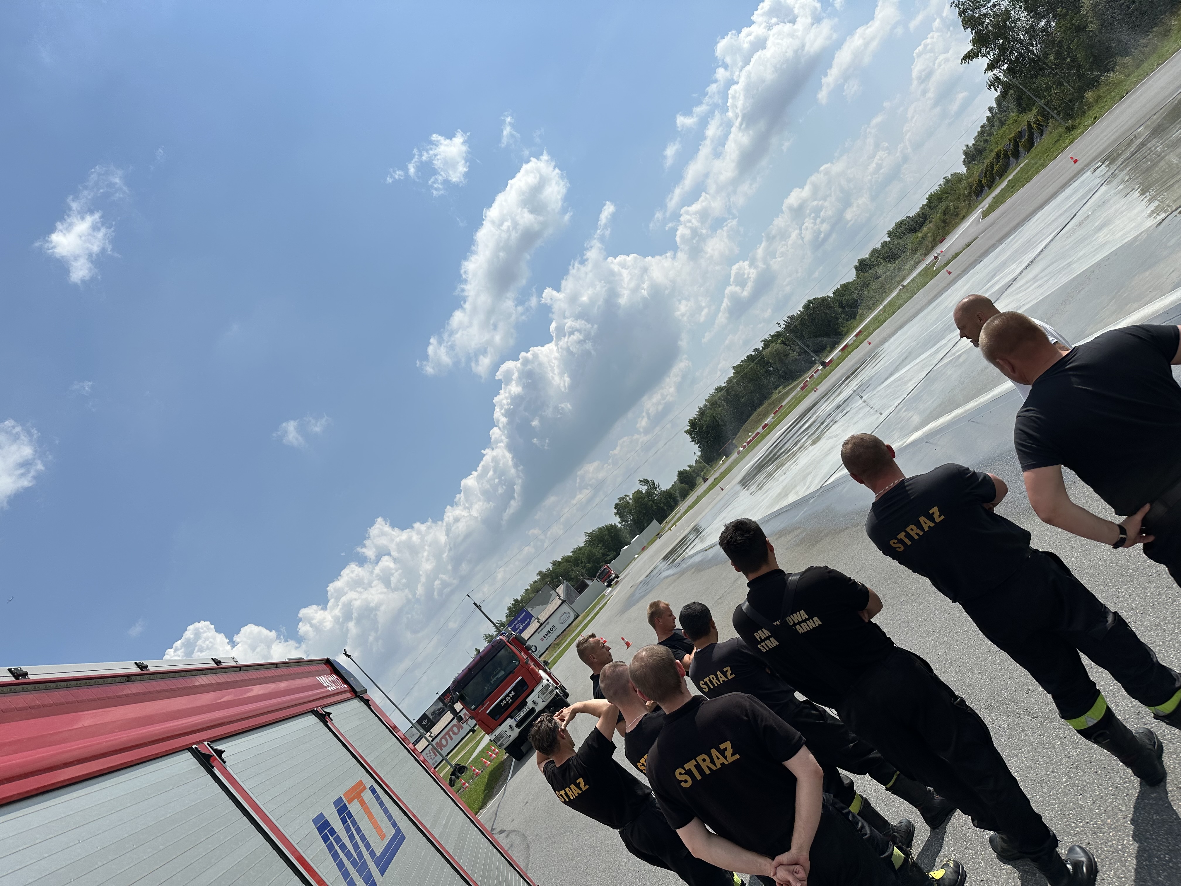 - Hamowanie awaryjne. Hamowanie awaryjne na wprost na przyczepnej, mieszanej i śliskiej nawierzchni. Hamowanie awaryjne z ominięciem przeszkody (kurtyny wodne) i w zakręcie.