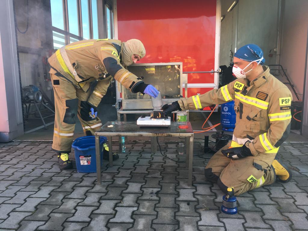 - Pożar wewnętrzny i jego rozwój. Piroliza drewna, modele domków do pokazu rozwoju pożaru. Pokaz granic wybuchowości/palności z wykorzystaniem tzw. „akwarium Giselssona”. Ćwiczenie w komorze ogniowej – pokaz zjawisk pożarowych.