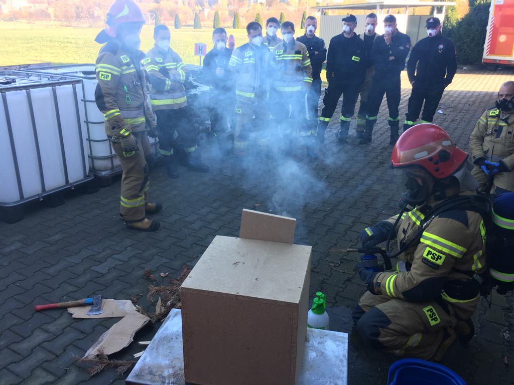 W dniach od 2 do 8 listopada 2021 r. na terenie Komendy Powiatowej PSP w Oświęcimiu, Ośrodek Szkolenia Komendy Wojewódzkiej PSP w Krakowie zorganizował szkolenie z zakresu gaszenia pożarów wewnętrznych skierowane dla funkcjonariuszy przewidzianych do realizacji doskonalenia zawodowego w przedmiotowym zakresie.