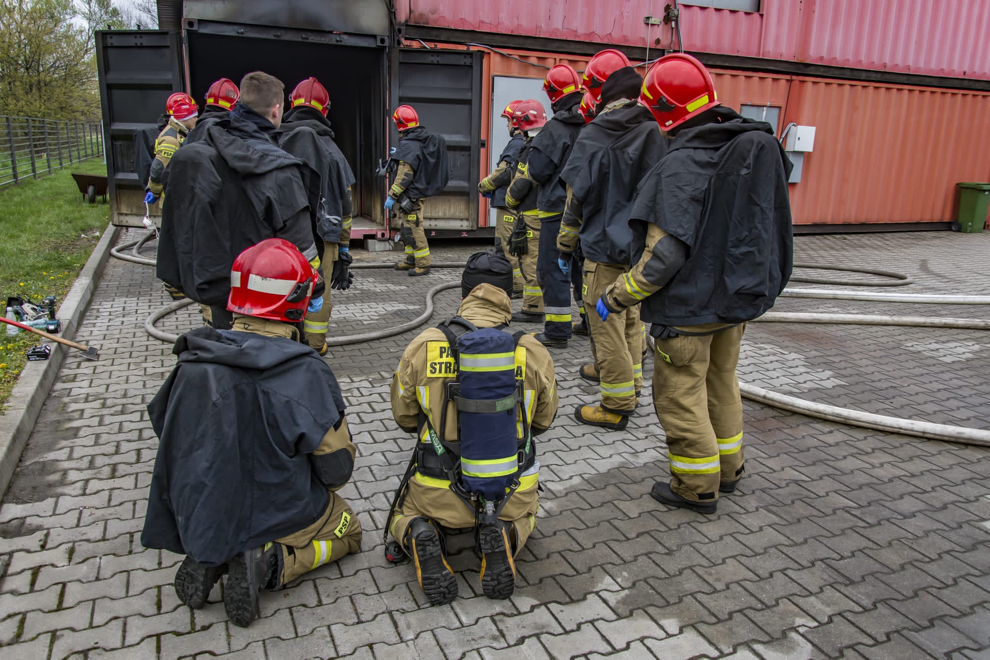 - Taktyka działań gaśniczych. Ćwiczenie w komorze ogniowej – natarcie na pożar w wersji podstawowej i rozszerzonej. Ćwiczenie w komorze ogniowej – natarcie na pożar z przeszukaniem. Ćwiczenie w komorze ogniowej – natarcie na pożar z wymianą gazową (wentylacja sekwencyjna).
