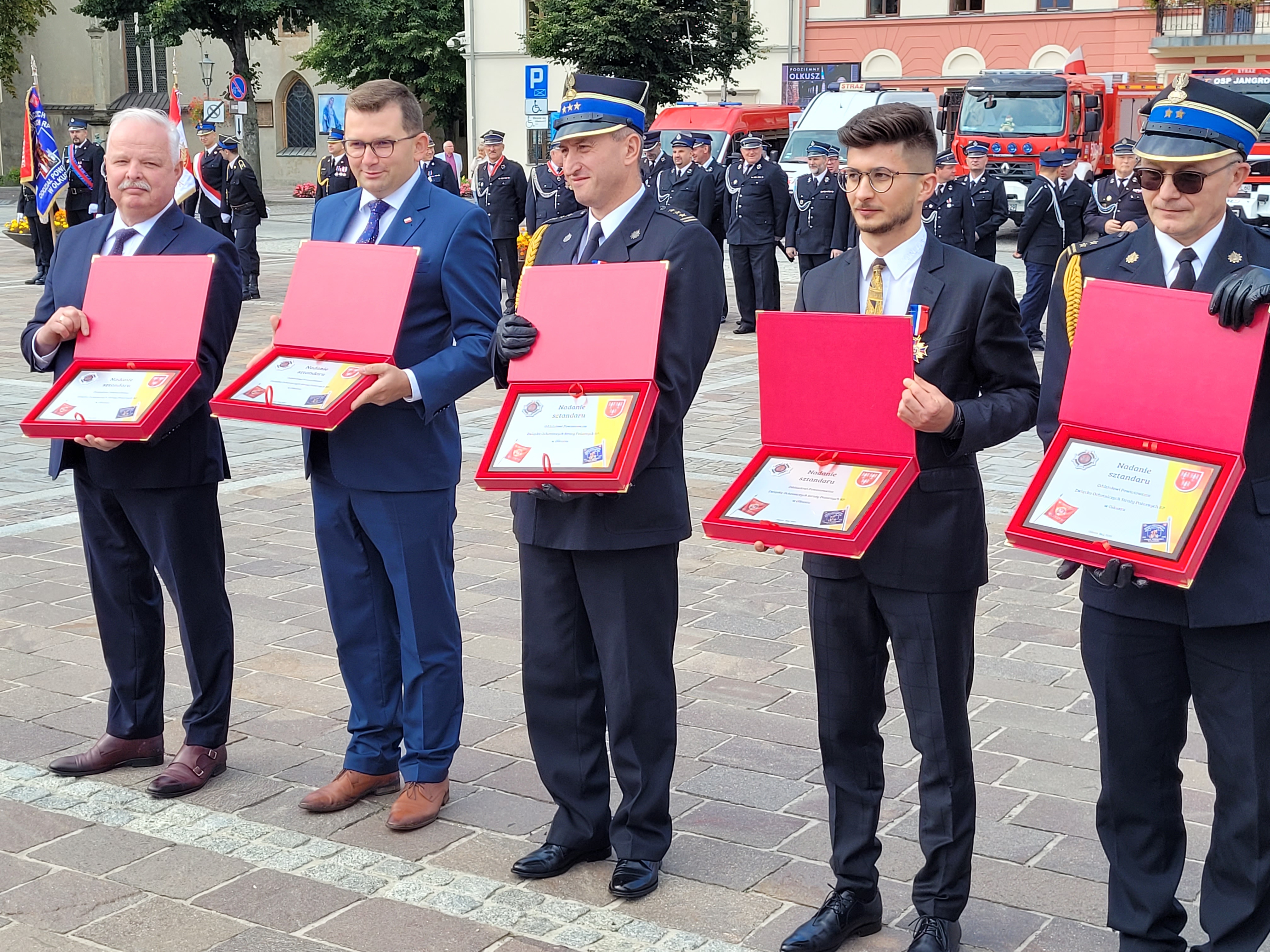 Uroczystość swoją obecnością zaszczycili: Minister Kultury Dziedzictwa Narodowego i Sportu Jacek Osuch, Wojewoda Małopolski Łukasz Kmita, Starosta Powiatu Olkuskiego Bogumił Sobczyk, Radny Województwa Małopolskiego Andrzej Wójcik, Członek Zarządu Głównego ZOSP RP dh Adam Domagała, a także Burmistrzowie, Wójtowie, Księża oraz przedstawiciele władz lokalnych i zarządów gminnych ZOSP RP z terenu powiatu olkuskiego.