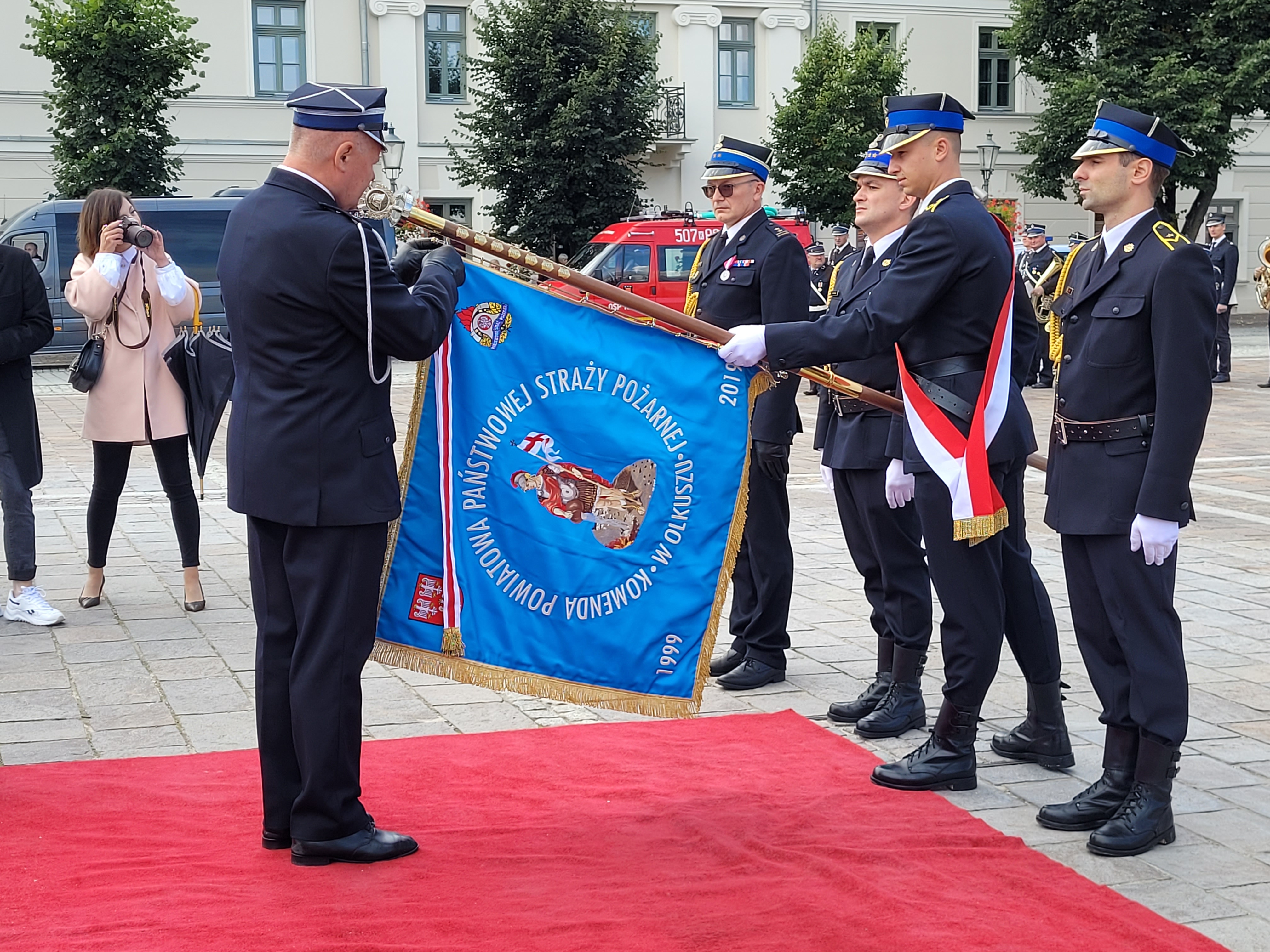 W niedzielę 29 sierpnia na płycie olkuskiego rynku odbyło się uroczyste poświęcenie oraz przekazanie sztandaru dla Oddziału Powiatowego Związku Ochotniczych Straży Pożarnych RP w Olkuszu, jako dowód uznania i wdzięczności społeczeństwa Powiatu olkuskiego, ku chwale Tych, którzy na co dzień nie szczędzą sił dla ratowania życia, zdrowia i mienia. W uroczystości uczestniczył Małopolski Komendant Wojewódzki st. bryg. Piotr Filipek, a aktu poświęcenia sztandaru dokonał Kapelan małopolskich strażaków ks. bryg. Władysław Kulig.