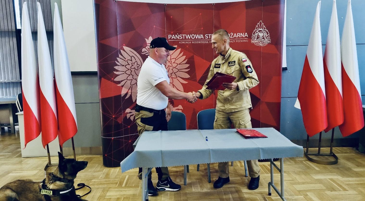 14 lipca 2025 r. Małopolski Komendant Wojewódzki PSP st. bryg. Przemysław Przęczek podpisał umowę o wzajemnej współpracy z przewodnikami gruzowiskowych psów ratowniczych klasy 1 z OSP: