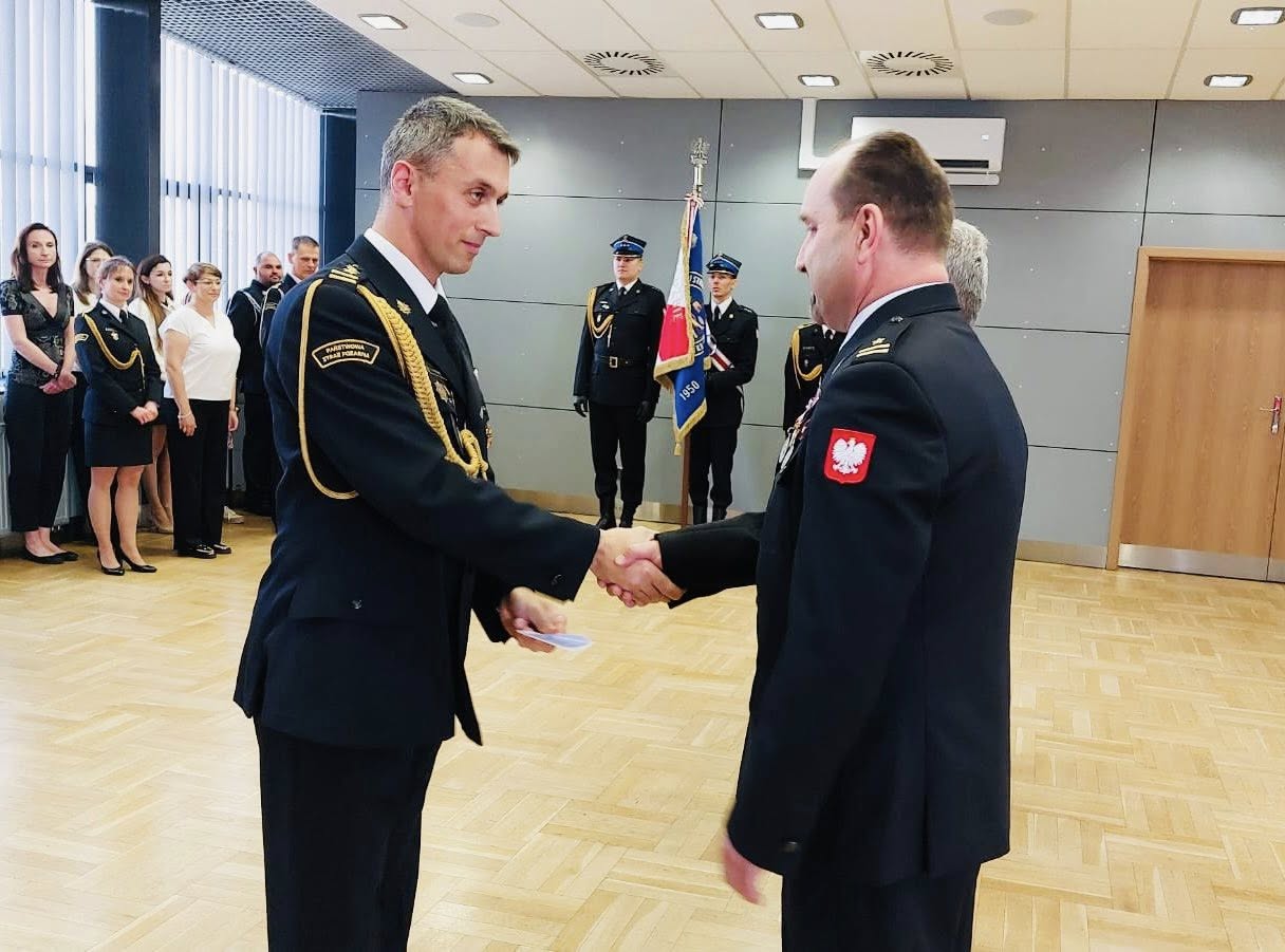 30 maja 2025 roku w sali konferencyjnej KW PSP w Krakowie odbyła się uroczysta zbiórka z okazji Dnia Strażaka. W trakcie wydarzenia Małopolski Komendant Wojewódzki PSP st. bryg. Przemysław Przęczek wręczył odznaczenia i awanse, a także złożył podziękowania za trudną i pełną poświęcenia służbę strażaków.