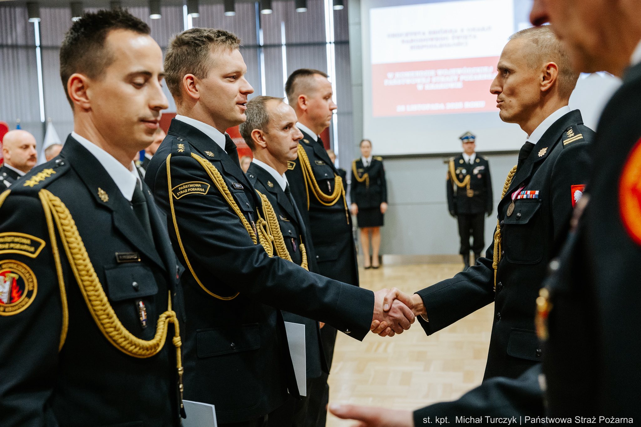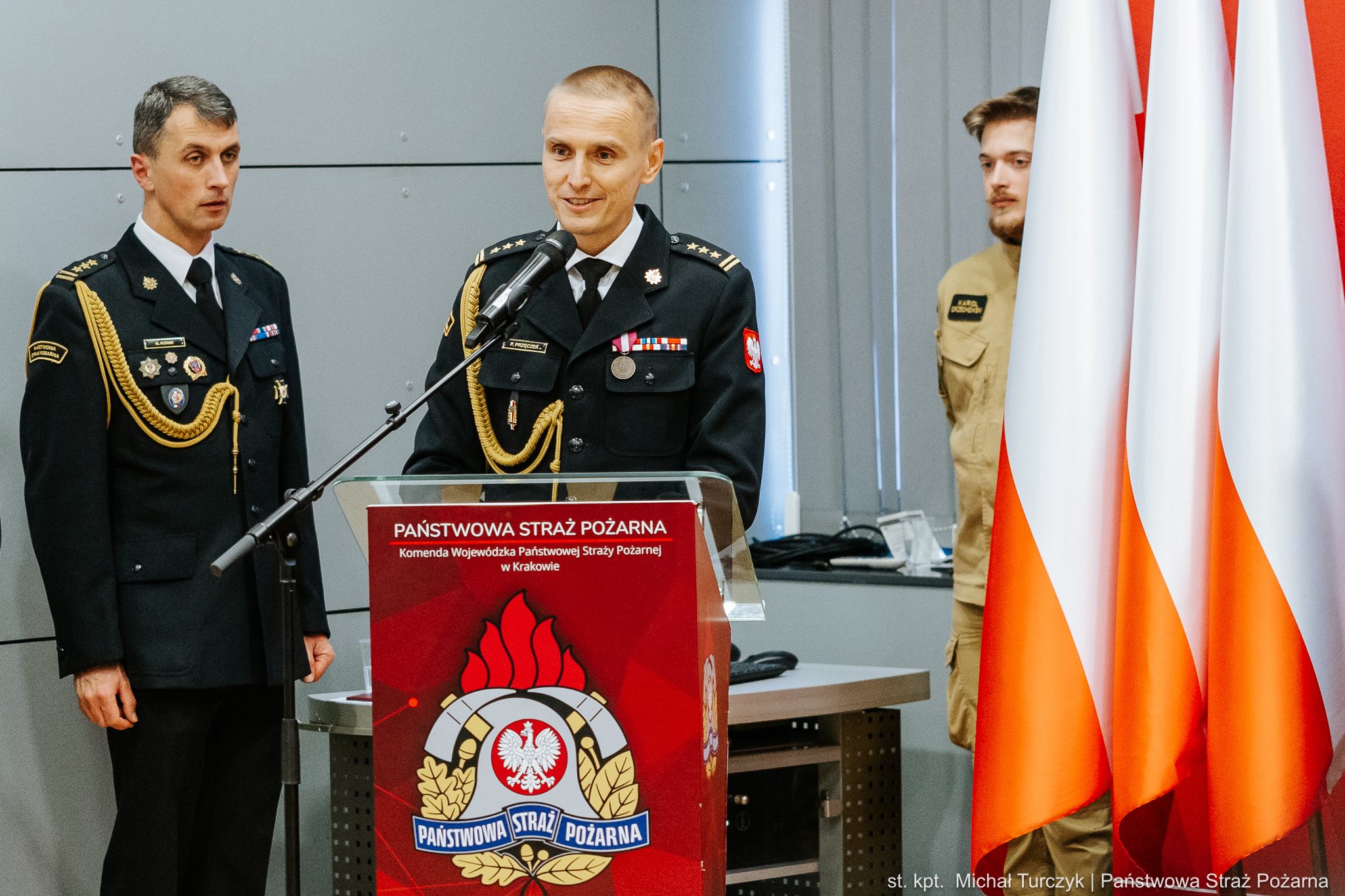 To szczególny moment, w którym strażacy PSP oraz druhowie OSP z całej Małopolski otrzymali awanse, odznaczenia i wyróżnienia za wzorową służbę, poświęcenie i codzienne niesienie pomocy mieszkańcom regionu.