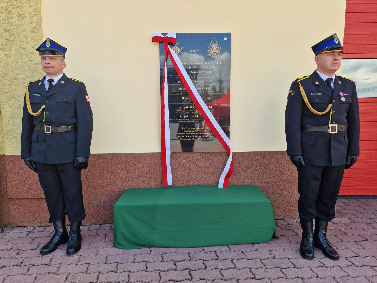 Zwieńczeniem uroczystości było odsłonięcie tablicy pamiątkowej poświęconej członkom Strażackiego Ruchu Oporu „Skała” – bohaterom związanym z powiatem nowotarskim, którzy w czasie II wojny światowej nieśli pomoc, przeciwstawiali się okupantowi i pozostali wierni etosowi strażackiej służby.