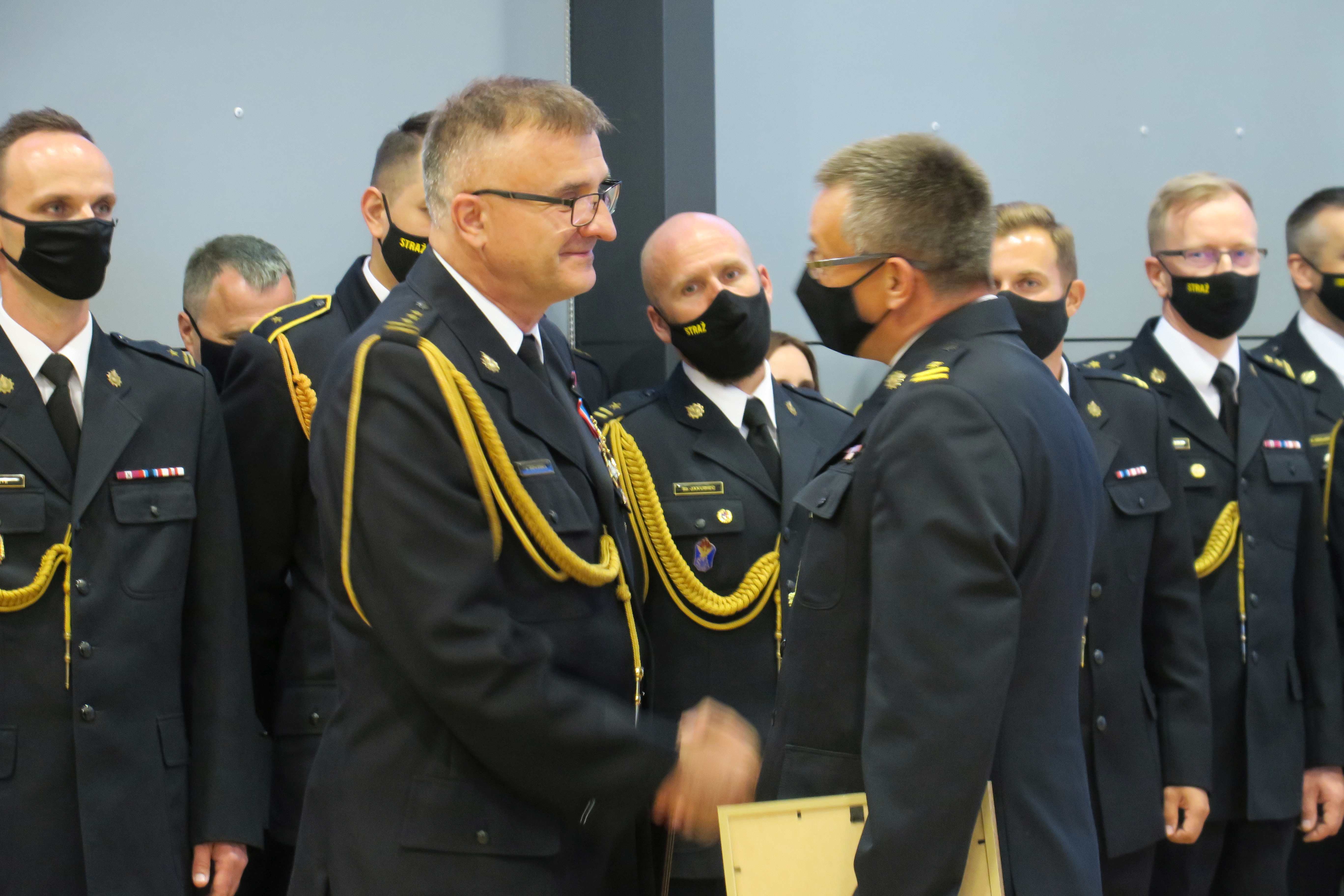 Następnie małopolski komendant wojewódzki PSP w asyście swojego zastępcy - mł. bryg. Przemysława Przęczka wręczył żegnającemu się z czynną służbą funkcjonariuszowi okolicznościowe pamiątki.