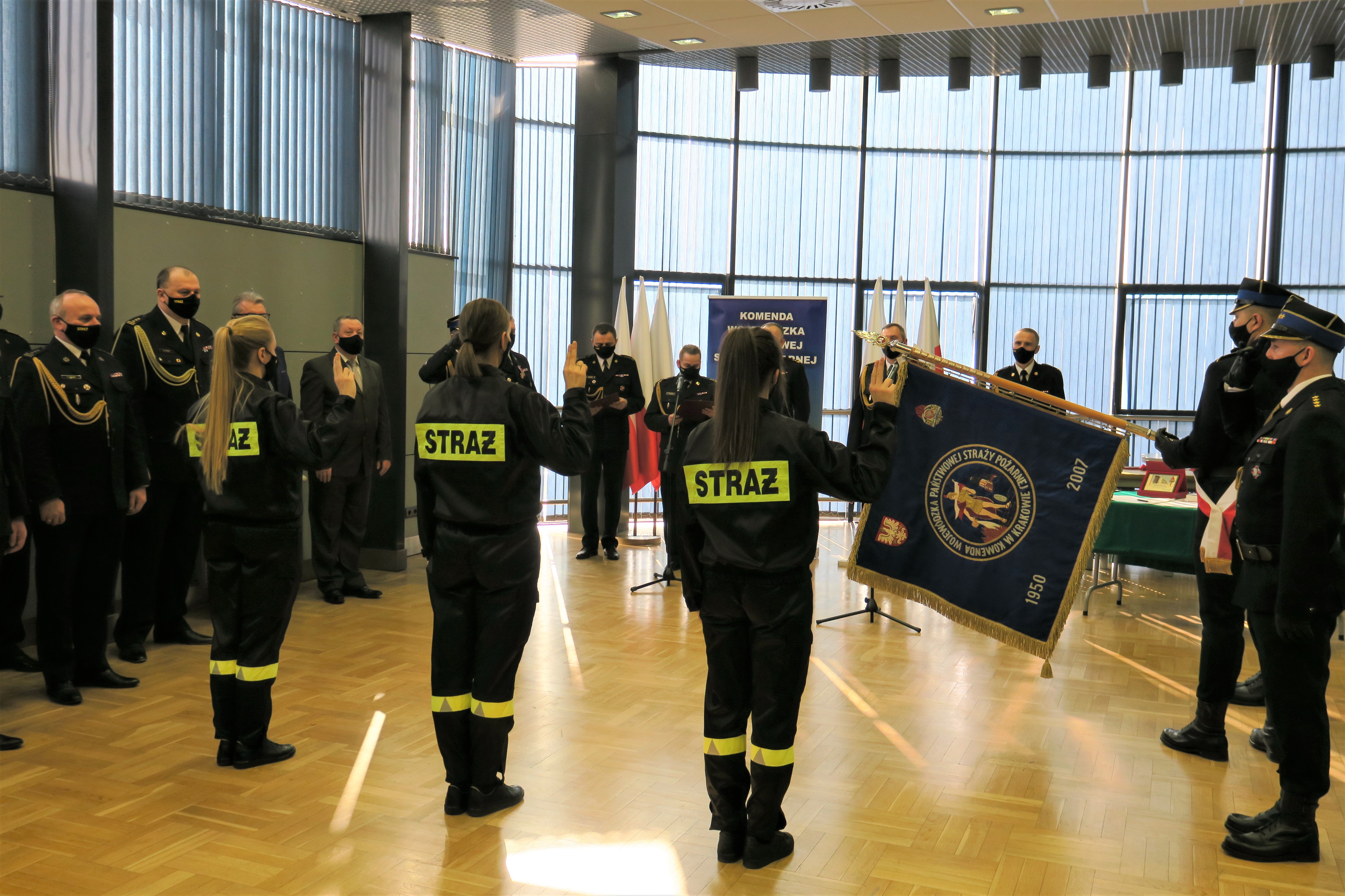 Spotkanie to było również okazją do złożenia ślubowania przez trzy adeptki rozpoczynające służbę w Państwowej Straży Pożarnej. Uświęcenia ślubowania dokonał kapelan małopolskich strażaków ks. bryg. Władysław Kulig.