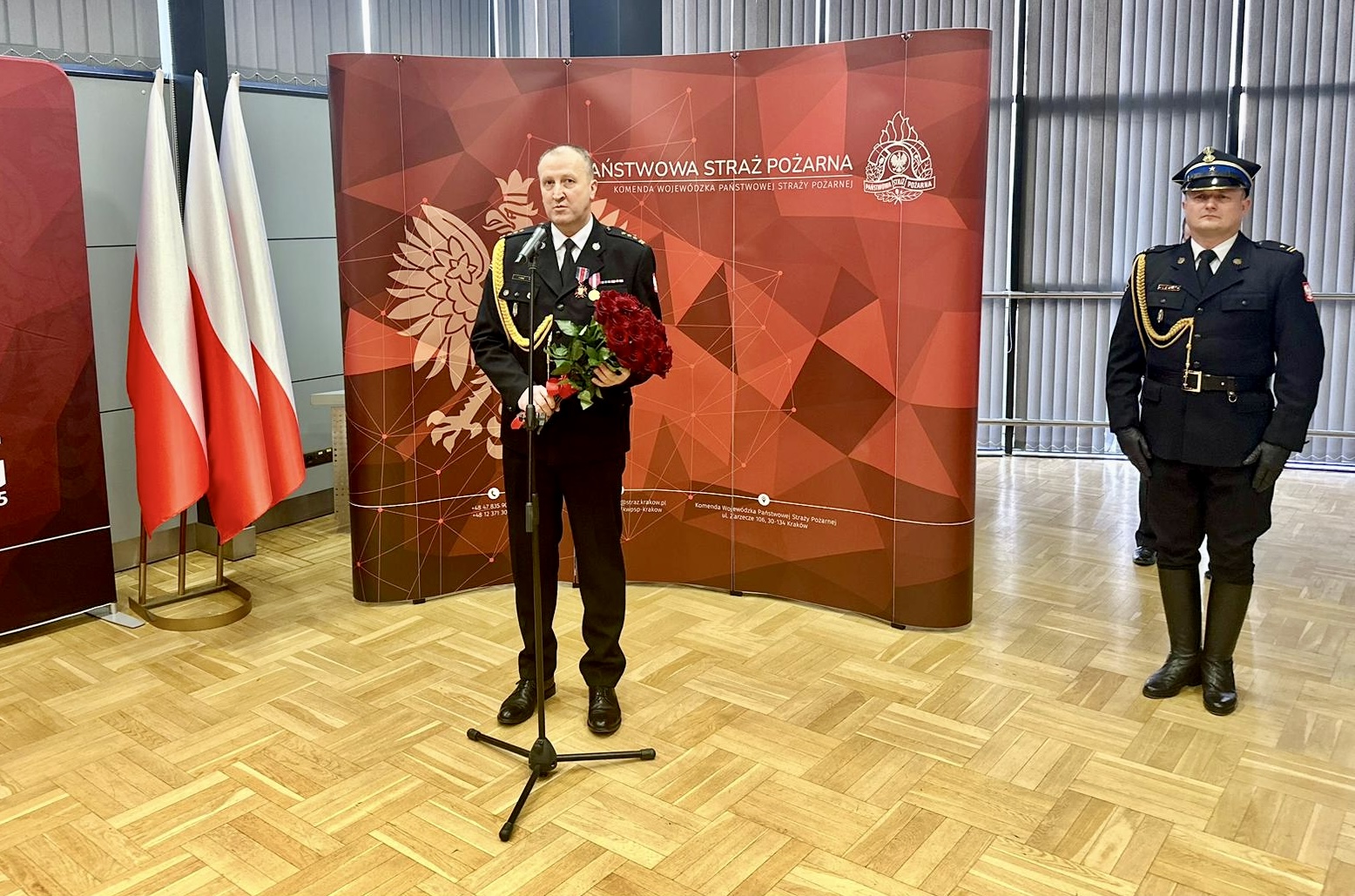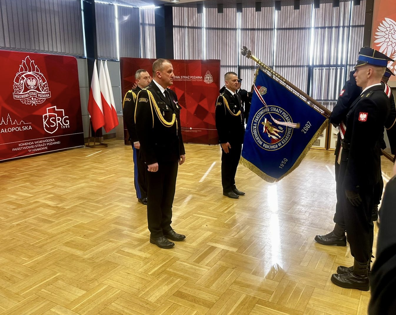 Meldunek o zdaniu obowiązków przyjął nadbryg. Piotr Filipek Małopolski Komendant Wojewódzki Państwowej Straży Pożarnej, który podziękował za wkład i zaangażowanie przez wszystkie lata służby na rzecz ochrony przeciwpożarowej oraz za poświęcenie na stanowiskach kierowniczych w Komendzie Wojewódzkiej Państwowej Straży Pożarnej w Krakowie. Pan Komendant podkreślił ich poświęcenie, profesjonalizm, determinację i zdolności przywódcze, które w znaczący sposób wpłynęły na rozwój struktur strażackich w regionie. Odbyło się również symboliczne pożegnanie ze sztandarem Komendy Wojewódzkiej Państwowej Straży Pożarnej w Krakowie.