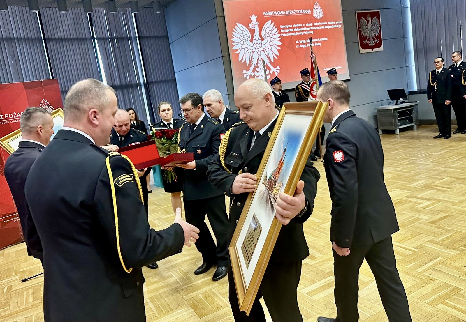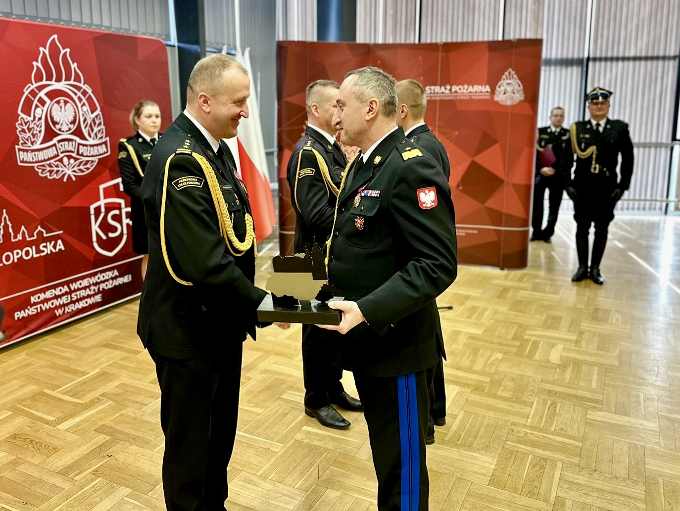 06 lutego 2024 r. w Komendzie Wojewódzkiej Państwowej Straży Pożarnej w Krakowie odbyła się uroczystość związana z przejściem na zaopatrzenie emerytalne Zastępców Małopolskiego Komendanta Wojewódzkiego Państwowej Straży Pożarnej st. bryg. Mariusza Łaciaka i st. bryg. Pawła Żaby.