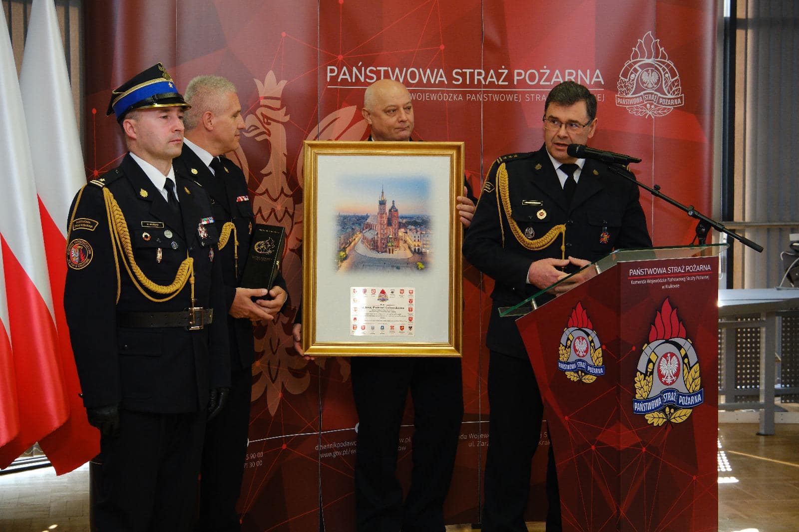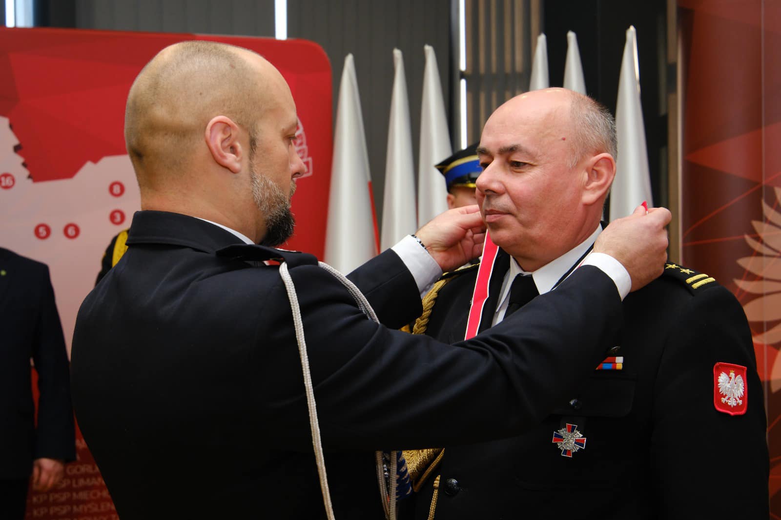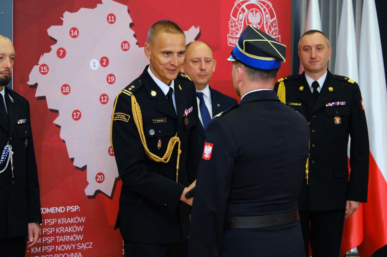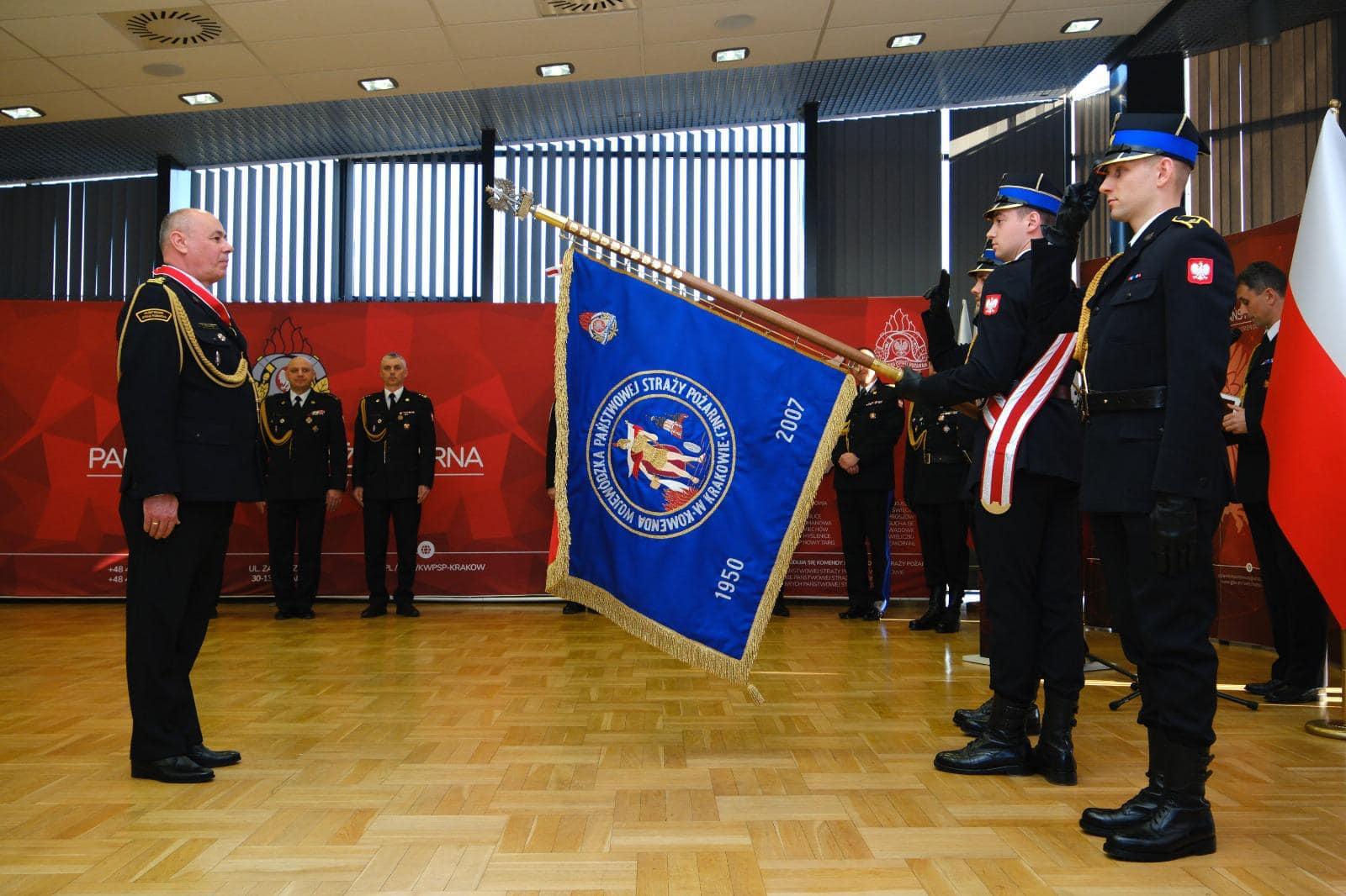 Meldunek o zdaniu obowiązków przyjął bryg. Przemysław Przęczek Małopolski Komendant Wojewódzki Państwowej Straży Pożarnej, który podziękował za wkład i zaangażowanie przez wszystkie lata służby na rzecz ochrony przeciwpożarowej oraz za poświęcenie na stanowisku kierowniczym w Komendzie Wojewódzkiej Państwowej Straży Pożarnej w Krakowie.