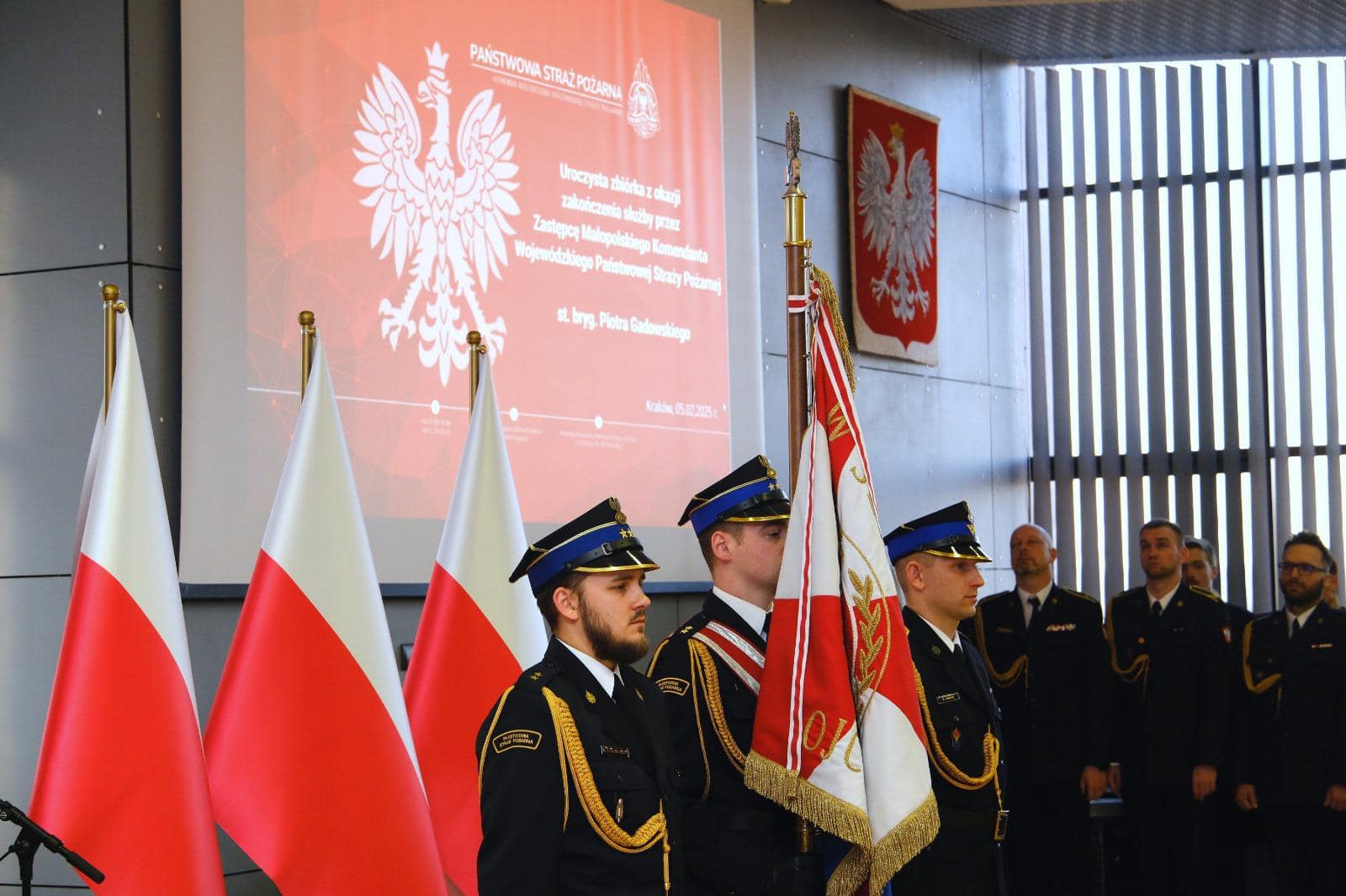05 lutego 2025 r. w Komendzie Wojewódzkiej Państwowej Straży Pożarnej w Krakowie odbyła się uroczystość związana z przejściem na zaopatrzenie emerytalne Zastępcy Małopolskiego Komendanta Wojewódzkiego Państwowej Straży Pożarnej st. bryg. Piotra Gadowskiego.