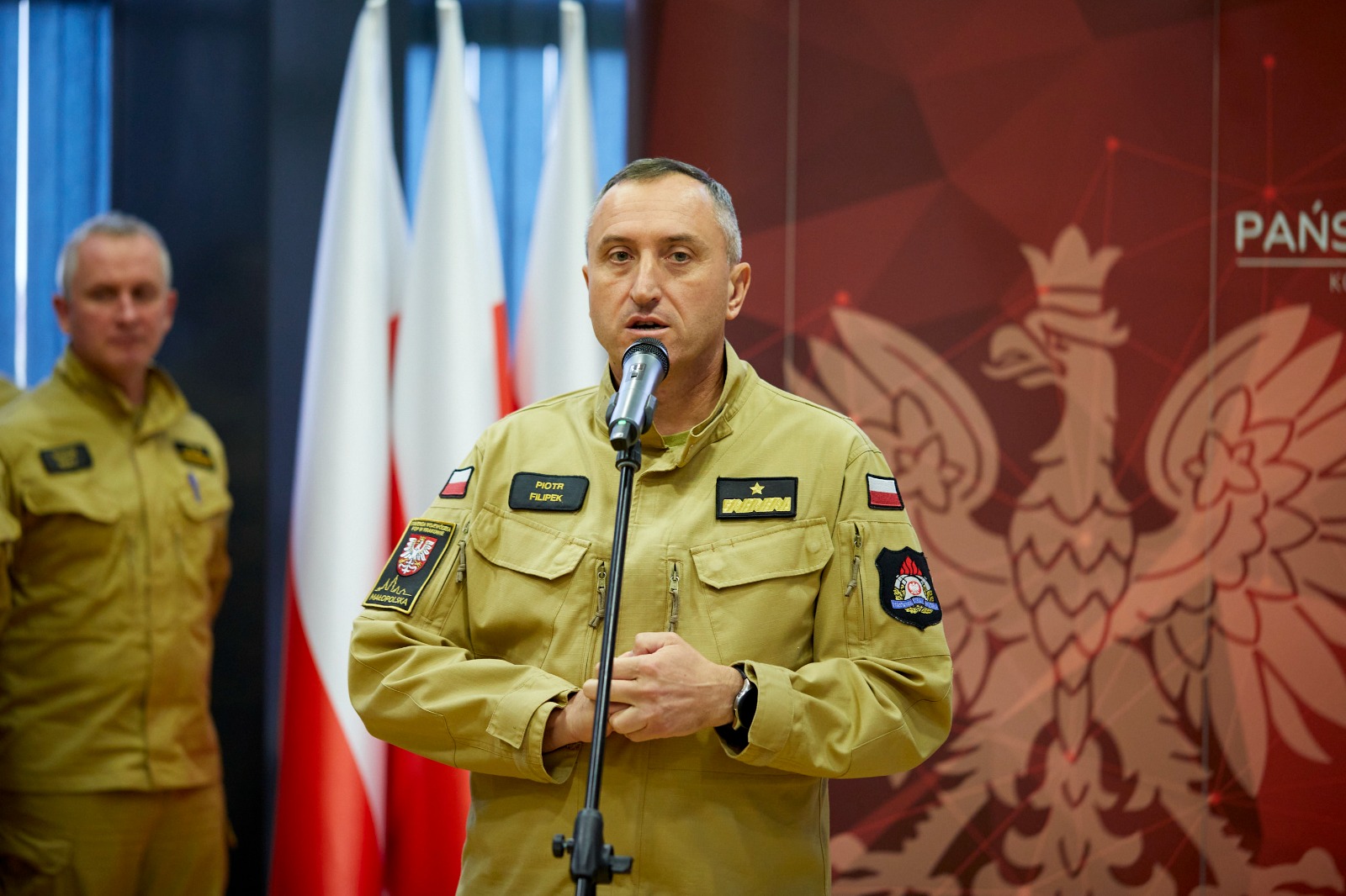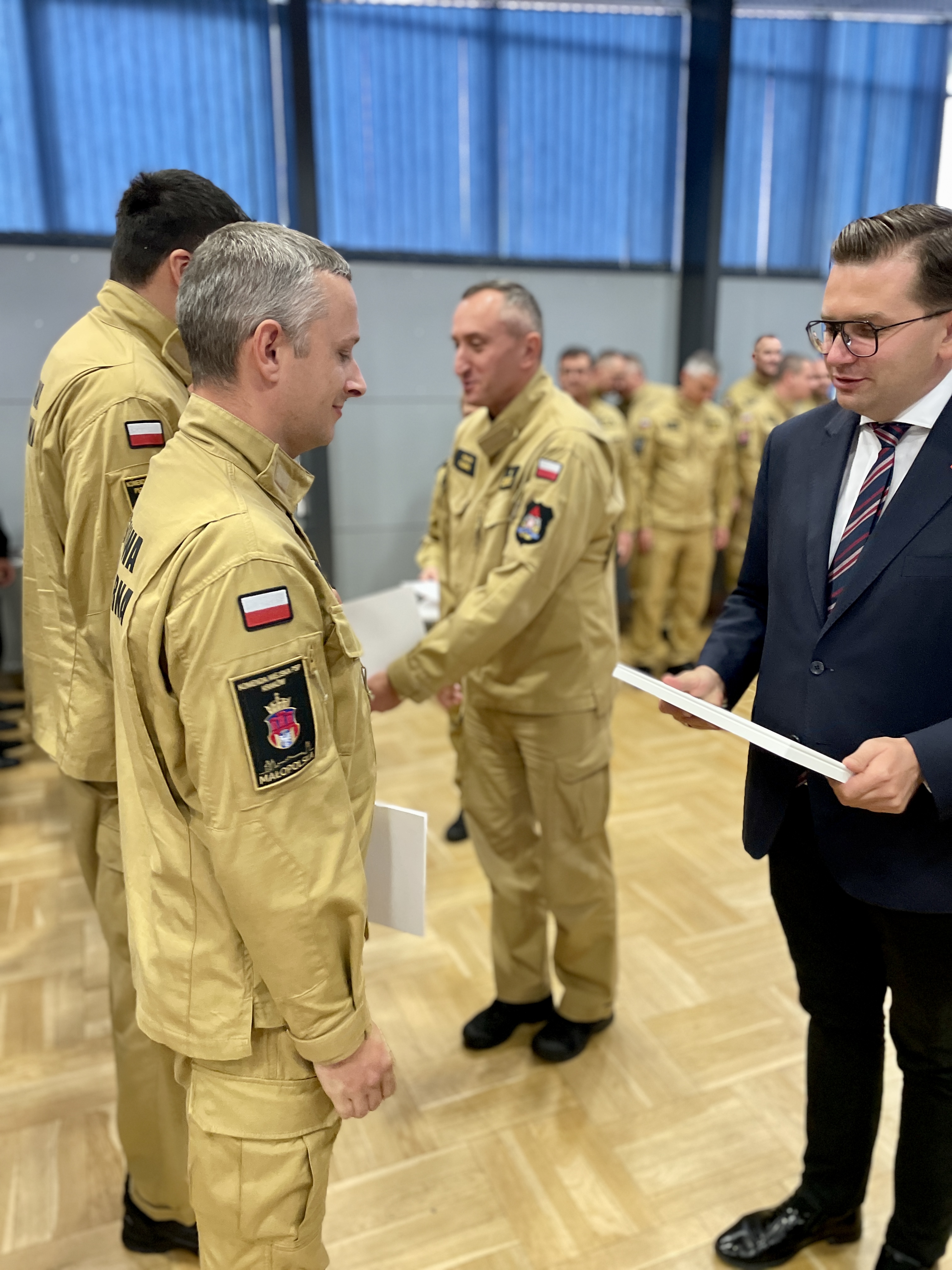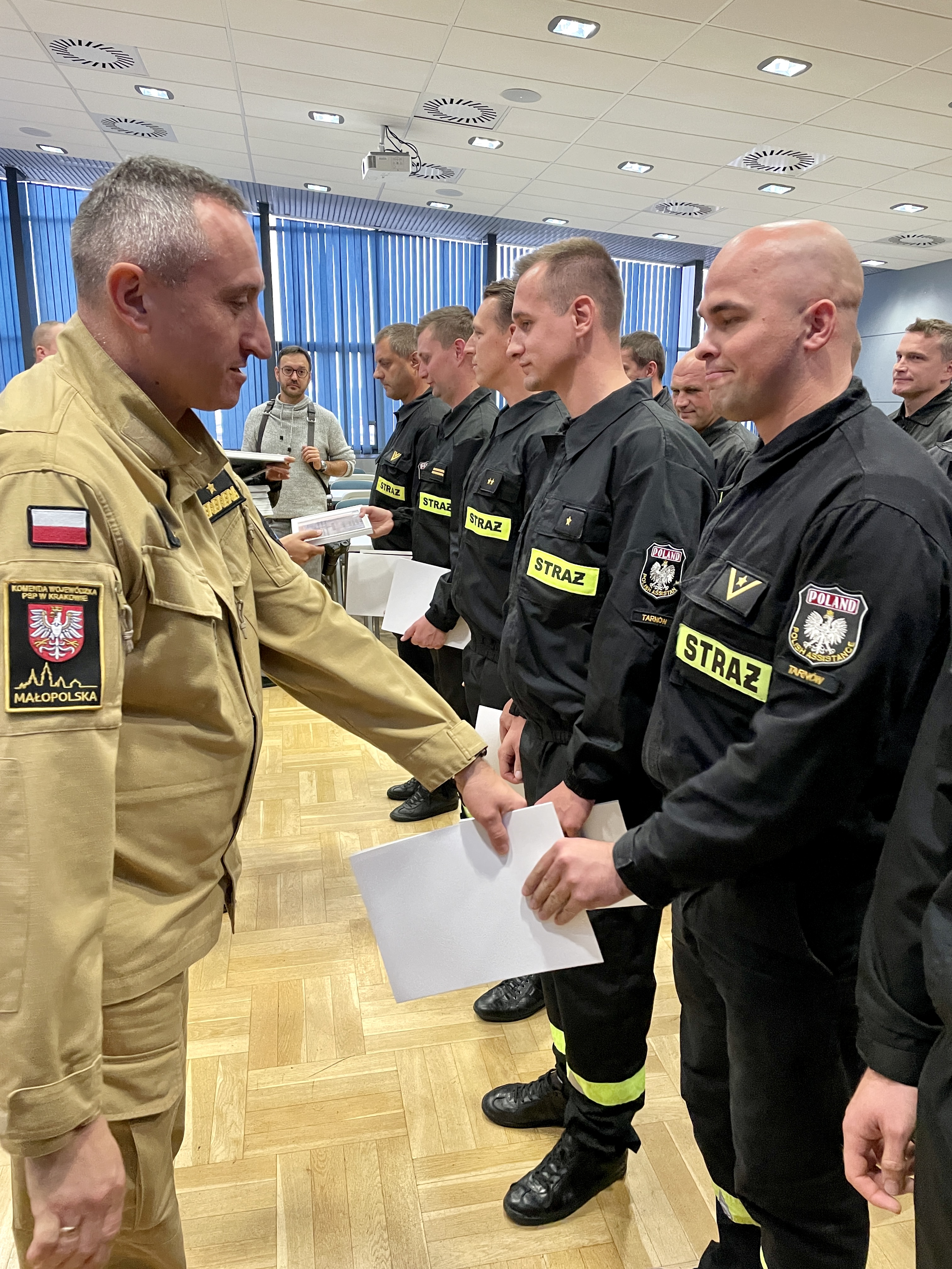 Strażacy z Małopolski Nagrodzeni za Bohaterski Udział w Akcjach Gaszenia Pożarów. Wręczenie dokonał nadbryg. Piotr Filipek Małopolski Komendant Wojewódzkie PSP wraz ze swoimi Zastępcami oraz Wojewoda Małopolski Łukasz Kmita.