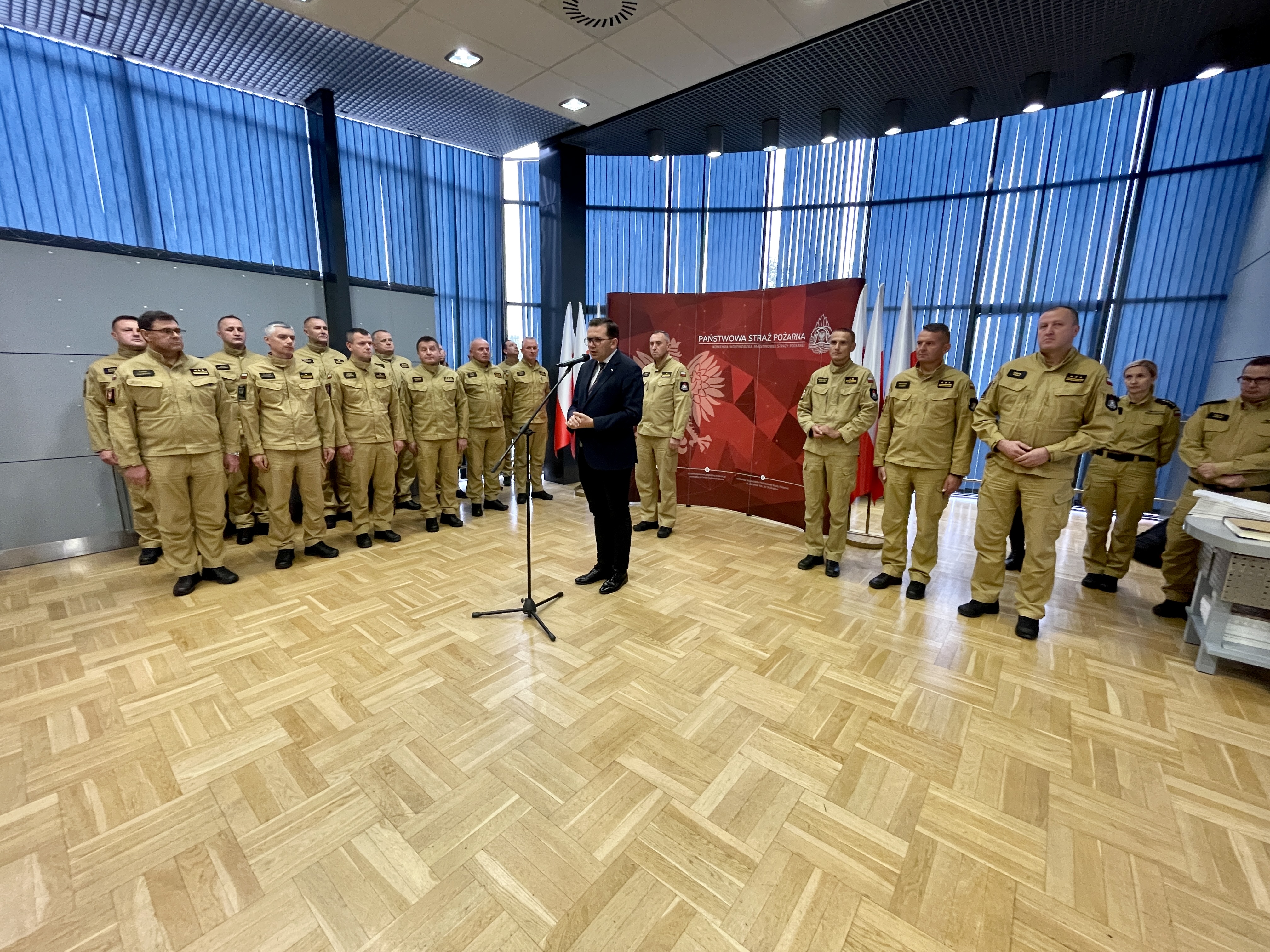 Uroczysta zbiórka z okazji wręczenia nagród strażakom woj. małopolskiego, którzy w dniach 19.07-02.08.2023r. brali udział w działaniach ratowniczych na terytorium Republiki Greckiej.