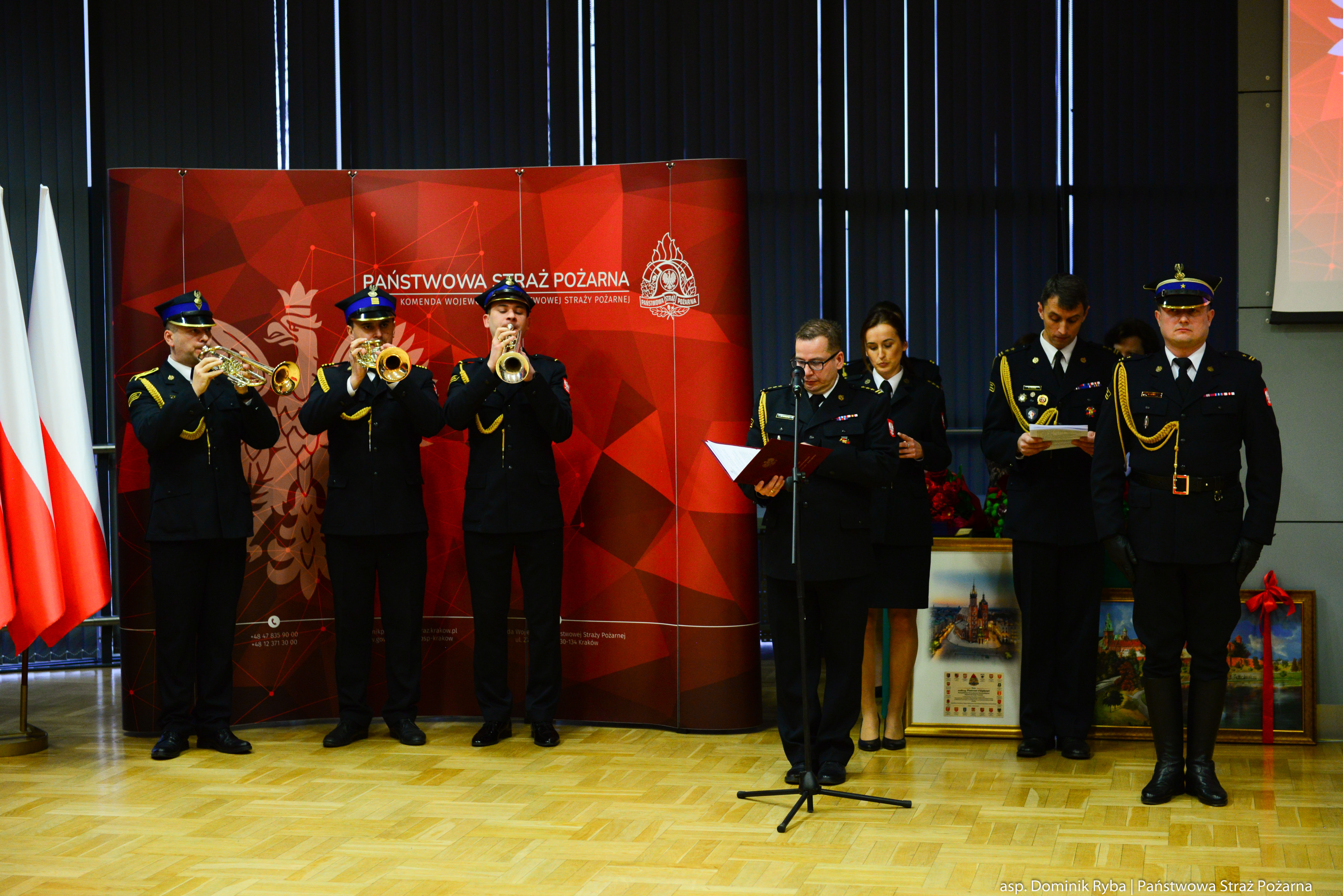 W ceremonii uczestniczyli parlamentarzyści z terenu województwa małopolskiego, Wojewoda Małopolski Krzysztof Jan Klęczar, przedstawiciele samorządu terytorialnego, służb mundurowych oraz instytucji współpracujących z Państwową Strażą Pożarną, Komendanci Miejscy i Powiatowi PSP, funkcjonariusze i pracownicy Komendy Wojewódzkiej PSP w Krakowie.