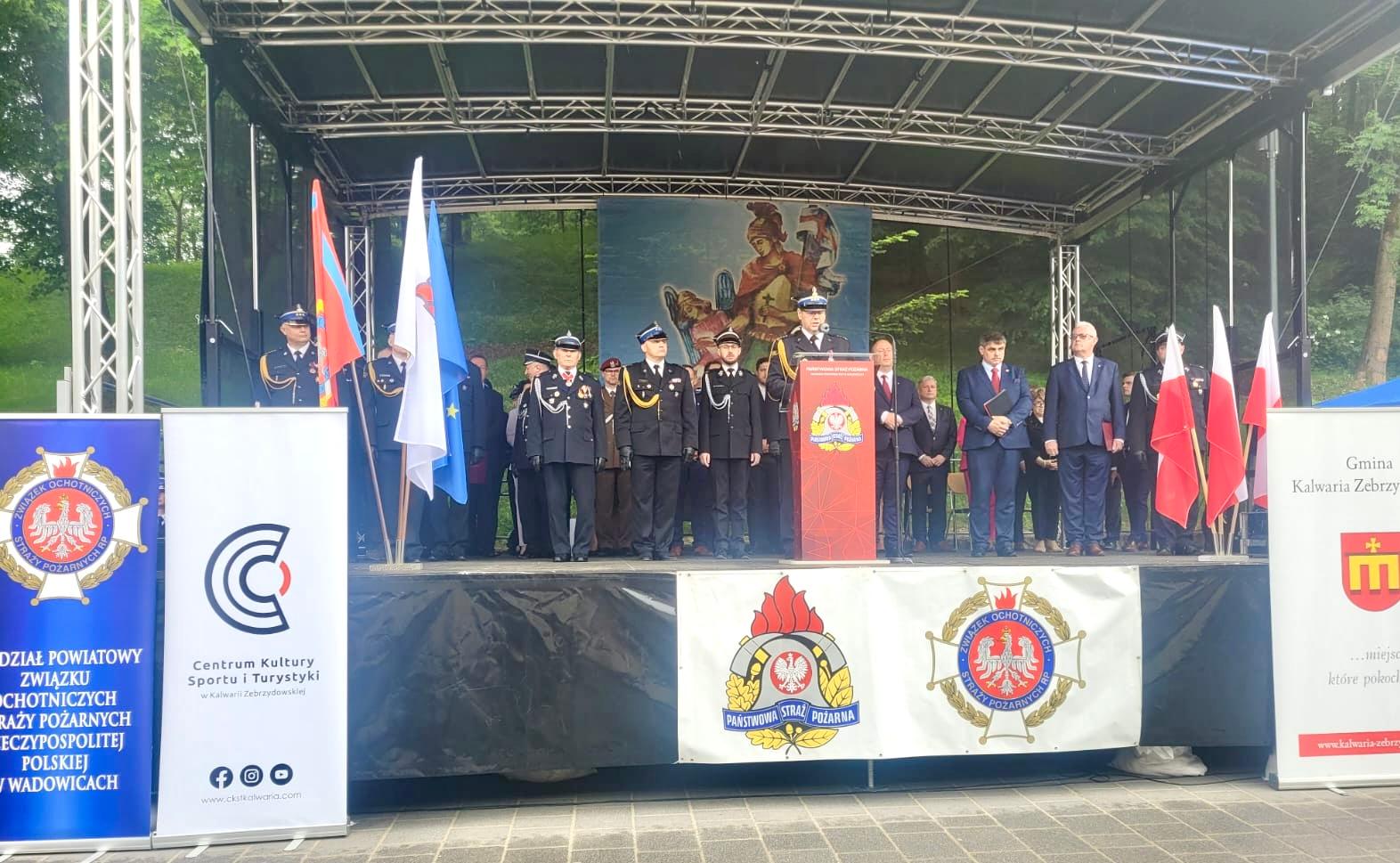 st. bryg. Arkadiusz Kielin Zastępca Małopolskiego Komendanta Wojewódzkiego Państwowej Straży Pożarnej uczestniczył w dniu 19.05.2024 r. w Powiatowych Obchodach Dnia Strażaka w Wadowicach a dokładnie na terenie Sanktuarium Pasyjno-Maryjnego w Kalwarii Zebrzydowskiej. O godz. 14:00 rozpoczęła się Msza Święta w intencji strażaków (ołtarz polowy), a o 15:00 - uroczysty apel: raport, podniesienie flagi państwowej na maszt, wręczenie odznaczeń, awansów i wyróżnień oraz wystąpienia zaproszonych gości. Gratulujemy wszystkim odznaczonym i awansowanym strażakom pow. wadowickiego.