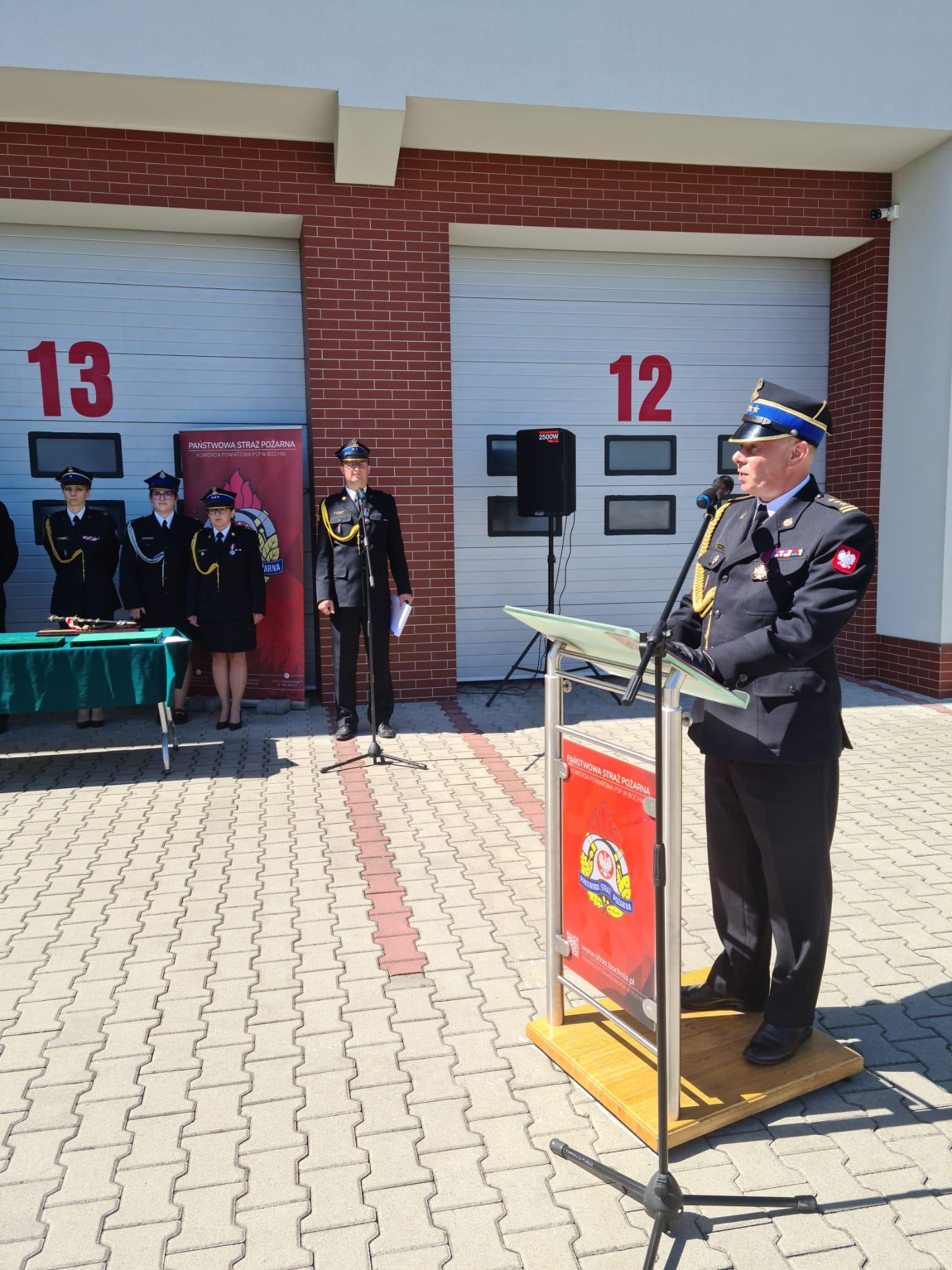 st. bryg. Piotr Gadowski Zastępca Małopolskiego Komendanta Wojewódzkiego Państwowej Straży Pożarnej wziął udział w Powiatowych Obchodach Dnia Strażaka w Bochni. Uroczystości rozpoczęły się od Mszy Św. w Bazylice Mniejszej pw. Św. Mikołaja bpa. Następnie o godz. 10.0 rozpoczął się uroczysty apel na terenie tut. Komendy. Podczas uroczystości wręczone zostały odznaczenia dla druhów jednostek Ochotniczych Straży Pożarnych i akty nadania wyższych stopni służbowych dla funkcjonariuszy Komendy Powiatowej PSP w Bochni. Dodatkowo wręczono decyzję Komendanta Głównego Państwowej Straży Pożarnej włączającą jednostkę OSP w Chodenicach w struktury KSRG.