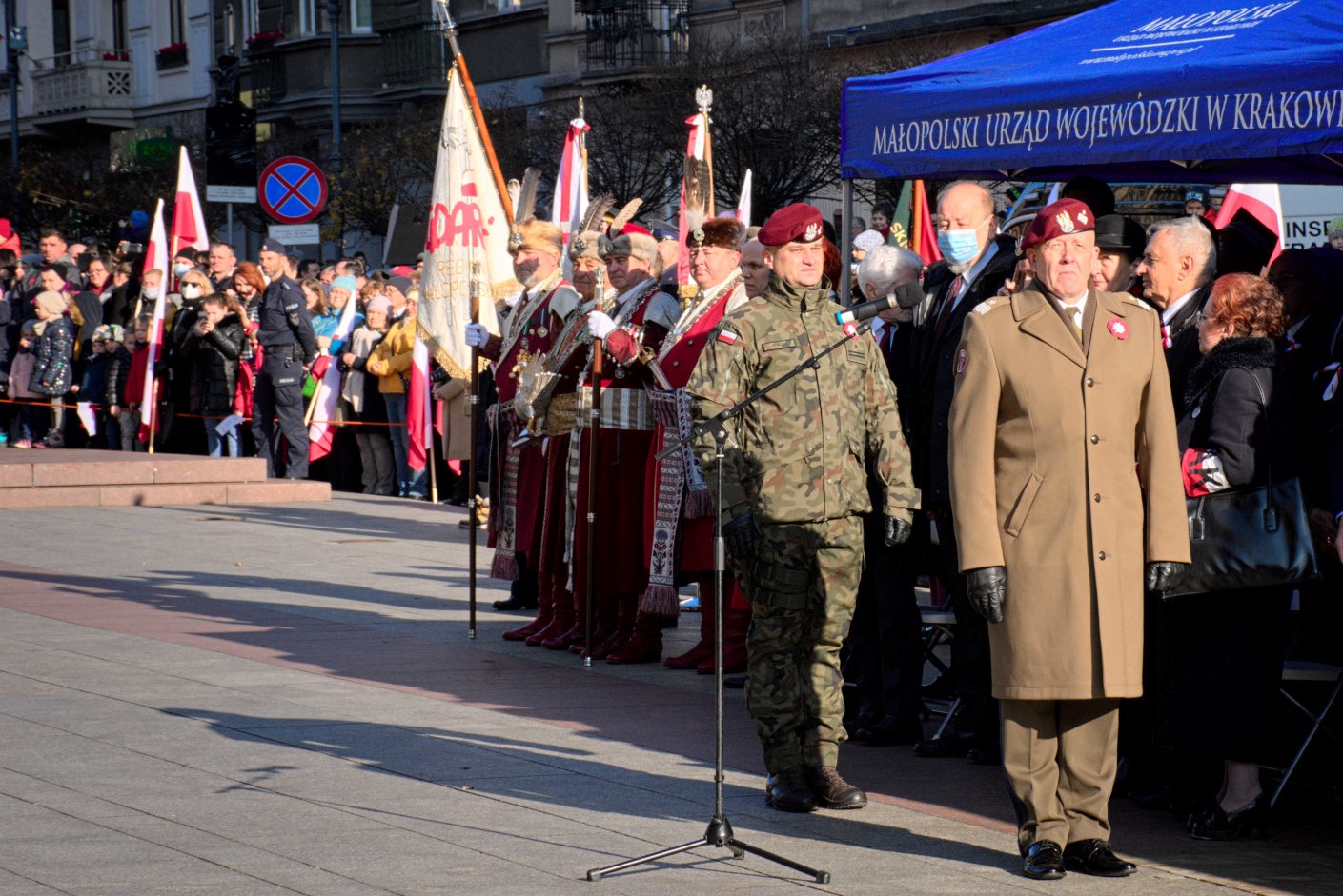 11 listopada br. dokładnie o godz. 10.00 w katedrze wawelskiej rozpoczęła się msza święta w intencji Ojczyzny. Przewodniczył jej ksiądz arcybiskup Marek Jędraszewski, metropolita krakowski. Po mszy świętej wawelskie wzgórze wypełniło się barwami narodowymi. Następnie uczestnicy obchodów udali się na plac ojca Adama Studzińskiego, gdzie przy Krzyżu Katyńskim złożono kwiaty. Kolejno przy Grobie Nieznanego Żołnierza na placu Jana Matejki odbyły się główne uroczystości tegorocznych obchodów Narodowego Święta Niepodległości z udziałem kompanii honorowych i orkiestry Wojska Polskiego.