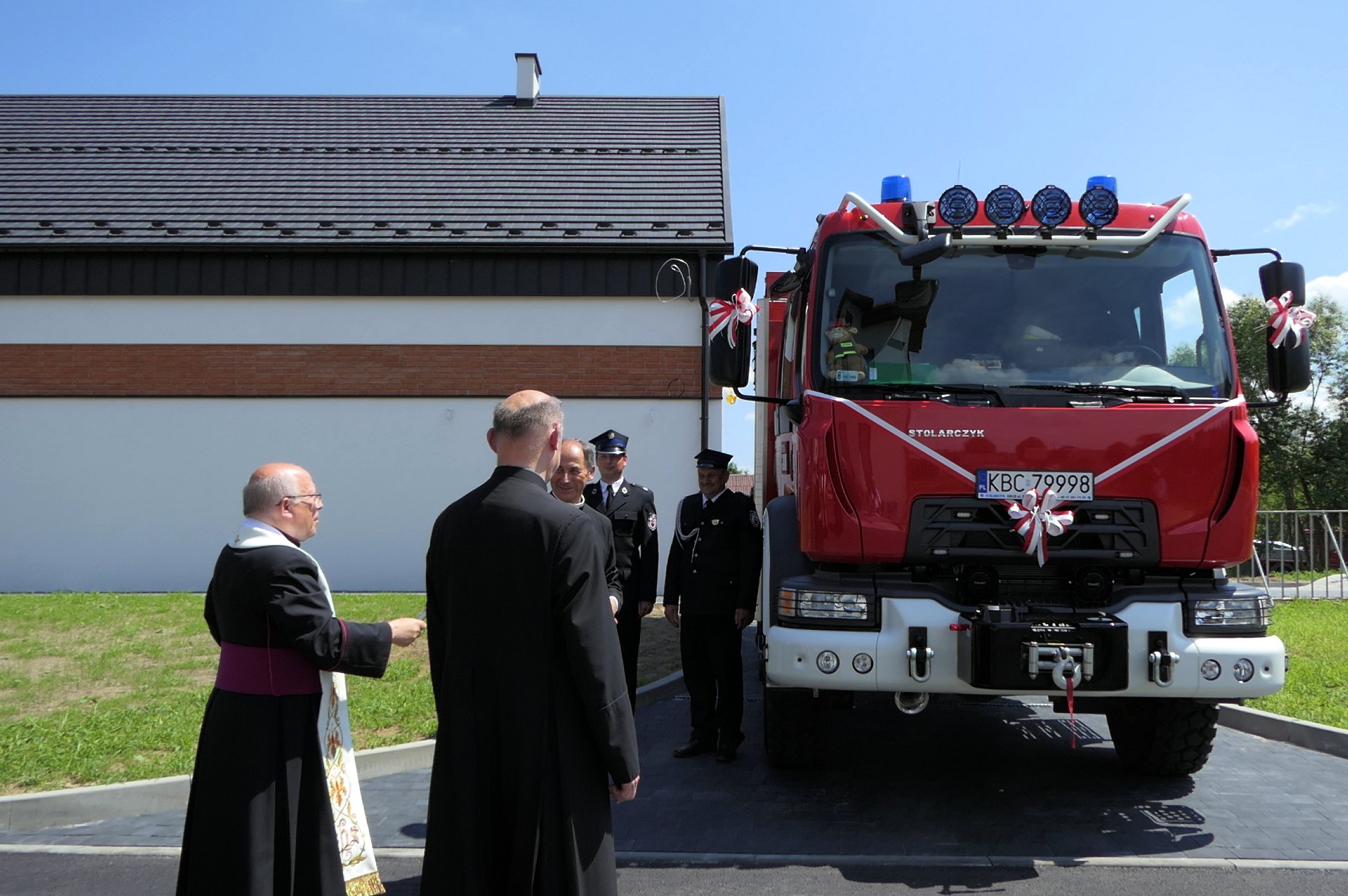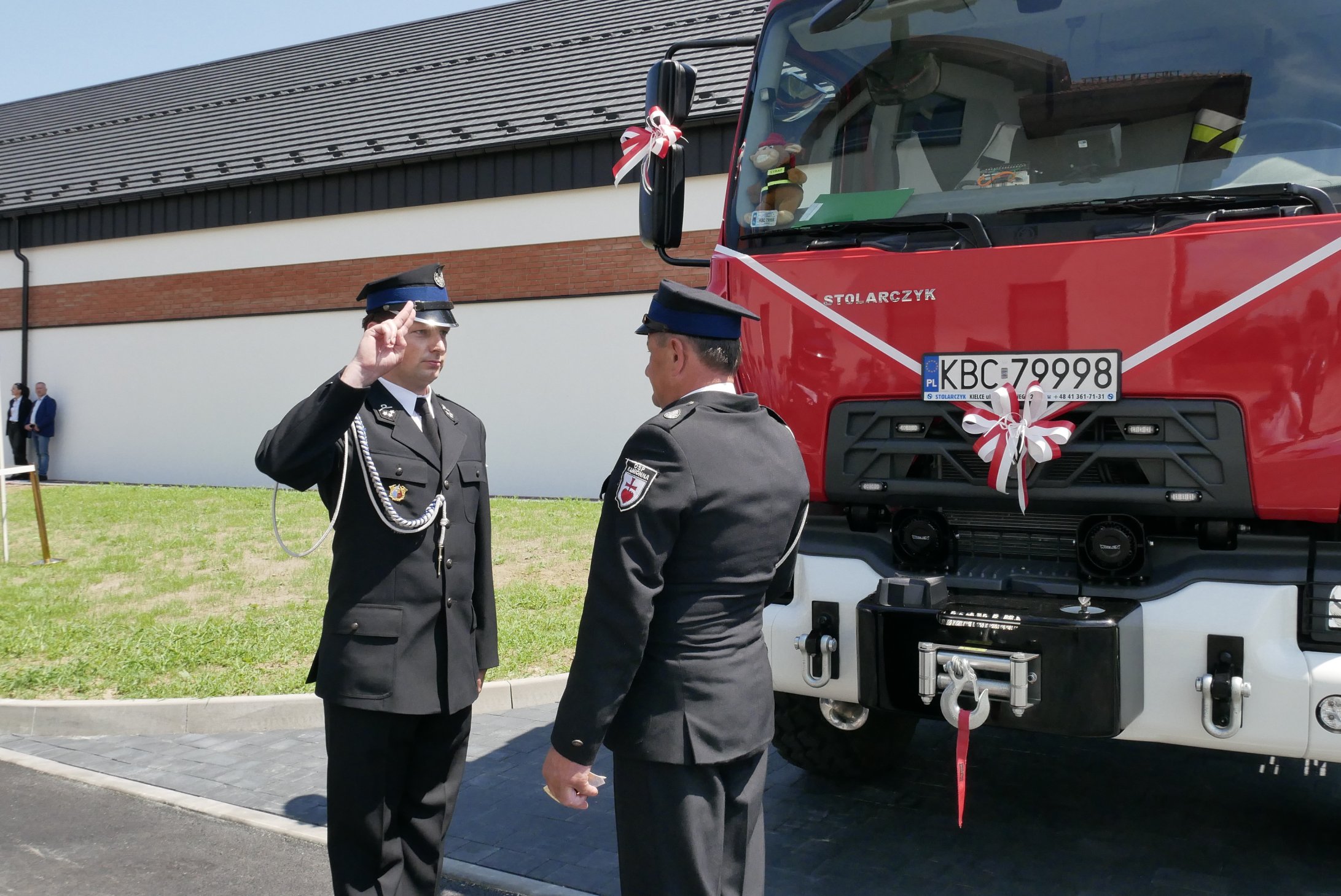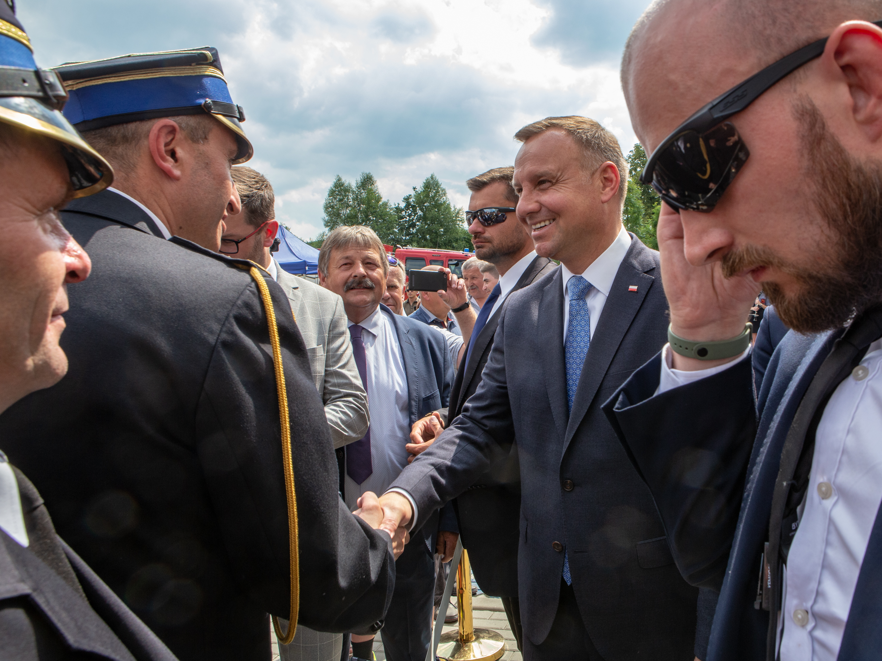 Uroczysty apel z okazji włączenia do Krajowego Systemu Ratowniczo-Gaśniczego oraz przekazania nowego pojazdu Ochotniczej Straży Pożarnej w Kamionnej połączony z oddaniem do użytku siedziby UG w Trzcianie. Wizyta Prezydenta Rzeczypospolitej Polskiej Pana Andrzeja Dudy