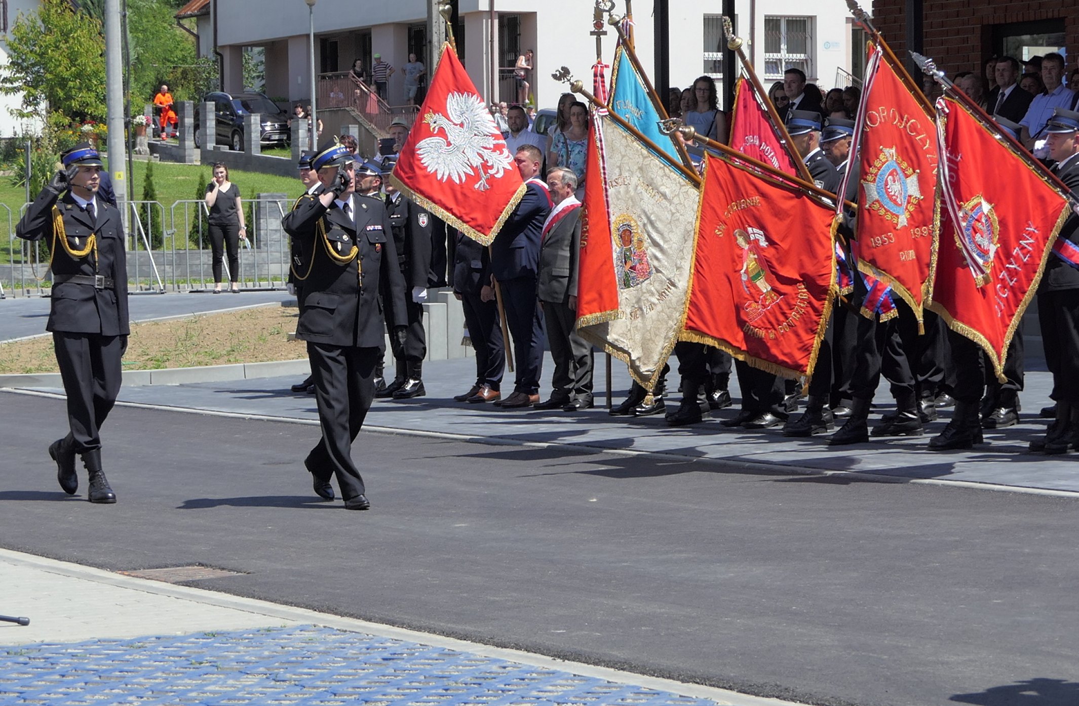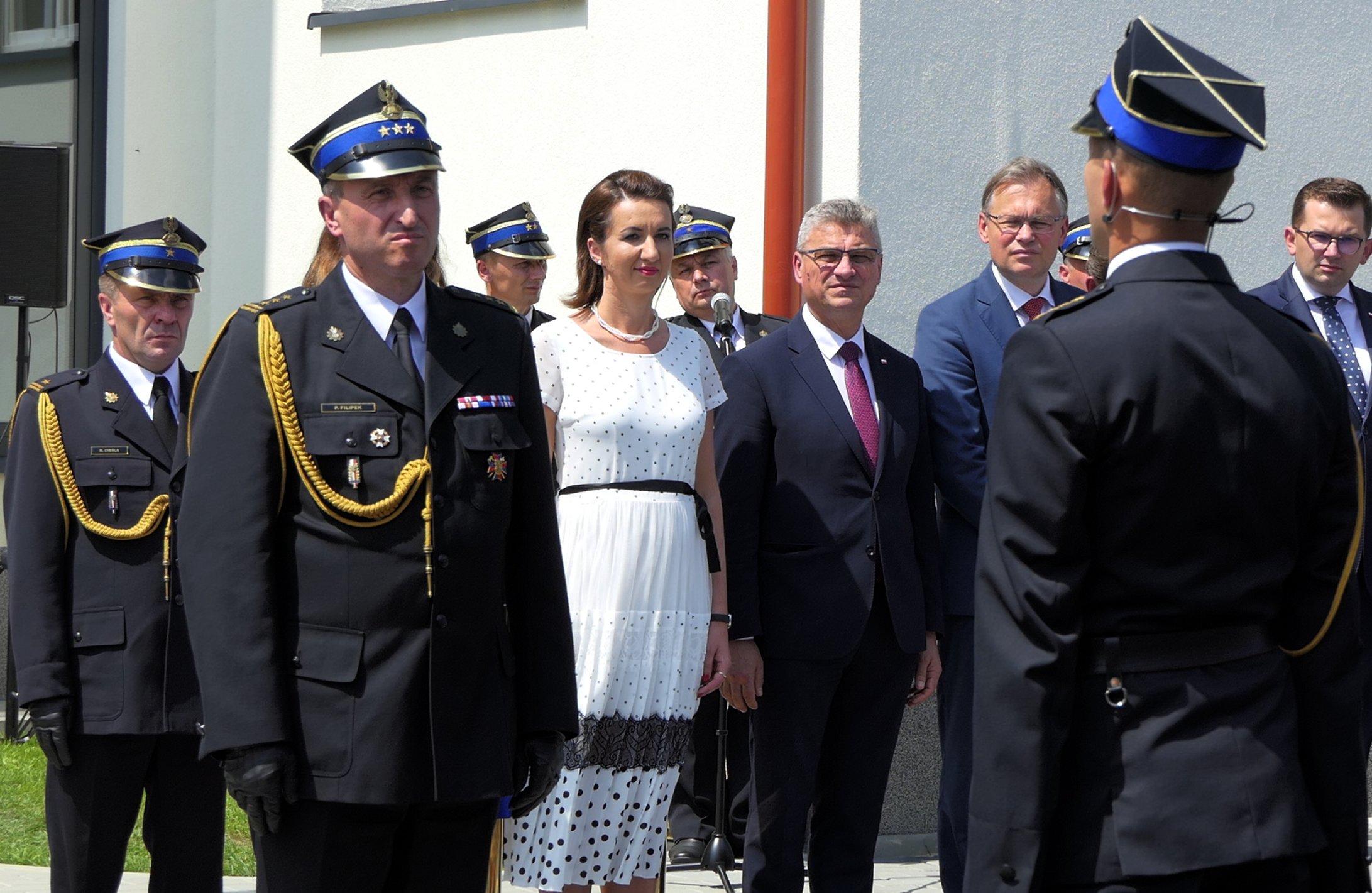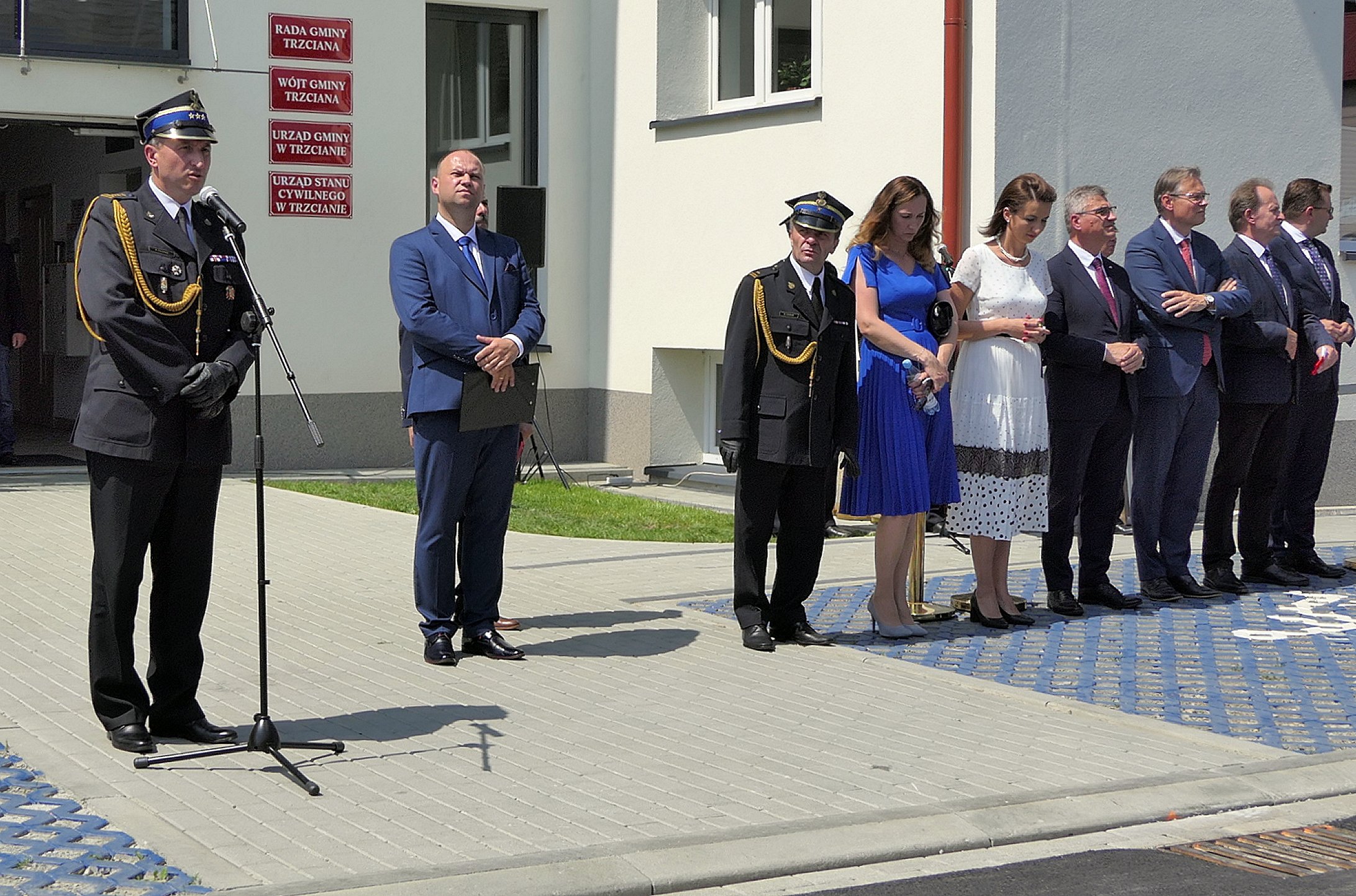 W uroczystości udział wzięli: sekretarz stanu w Ministerstwie Nauki i Szkolnictwa Wyższego oraz senator Rzeczypospolitej Polskiej prof. Włodzimierz Bernacki, poseł na Sejm Rzeczypospolitej Polskiej Wiesław Krajewski, poseł na Sejm Rzeczypospolitej Polskiej Arkadiusz Mularczyk, poseł na Sejm Rzeczypospolitej Polskiej Urszula Rusecka, poseł na Sejm Rzeczypospolitej Polskiej Piotr Sak, poseł na Sejm Rzeczypospolitej Polskiej Stanisław Bukowiec, poseł na Sejm Rzeczypospolitej Polskiej Anna Pieczarka, poseł na Sejm Rzeczypospolitej Polskiej Józefa Szczurek Żelazko, Wojewoda Małopolski Łukasz Kmita, Wicewojewoda Małopolski Józef Leśniak, Małopolski Komendant Wojewódzki Państwowej Straży Pożarnej st. bryg. Piotr Filipek, członek Zarządu Województwa Małopolskiego Marta Malec-Lech, radny sejmiku województwa małopolskiego Piotr Dziurdzia, starosta bocheński Adam Korta, komendant powiatowy Państwowej Straży Pożarnej w Bochni mł. bryg. Robert Cieśla, zastępca komendanta powiatowego Państwowej Straży Pożarnej w Bochni bryg. Piotr Gadowski, wójt gminy Trzciana Cezary Stawarz, burmistrzowie i wójtowie z terenu powiatu bocheńskiego, radni powiatu bocheńskiego oraz sztandary i przedstawiciele jednostek OSP z terenu gminy Trzciana.
