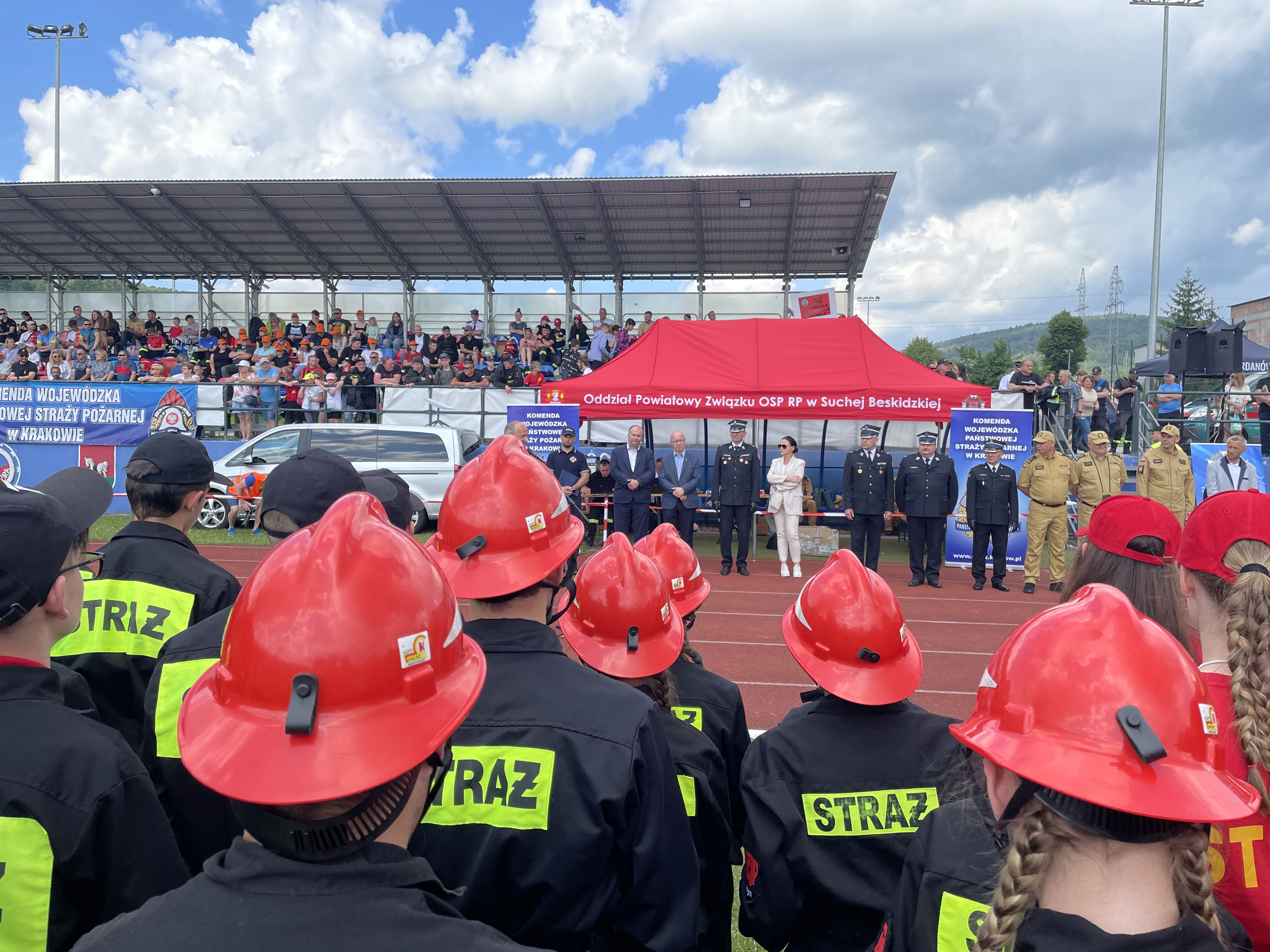 Na stadionie miejskim w Suchej Beskidzkiej od godzin porannych dnia 18.06.2023 r. odbyły się VIII Wojewódzkie Młodzieżowe Zawody Sportowo - Pożarnicze woj. małopolskiego.