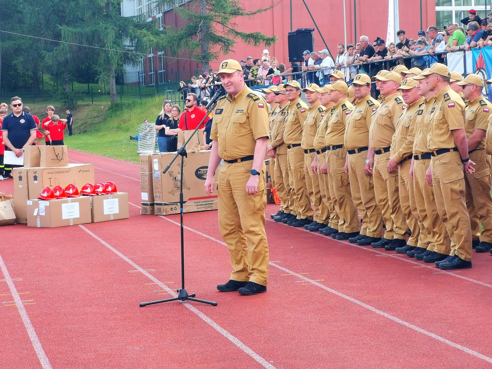 Zastępca Małopolskiego Komendanta Wojewódzkiego PSP st. bryg. Paweł Żaba podsumował i wręczył nagrody dla zwycięskich drużyn.