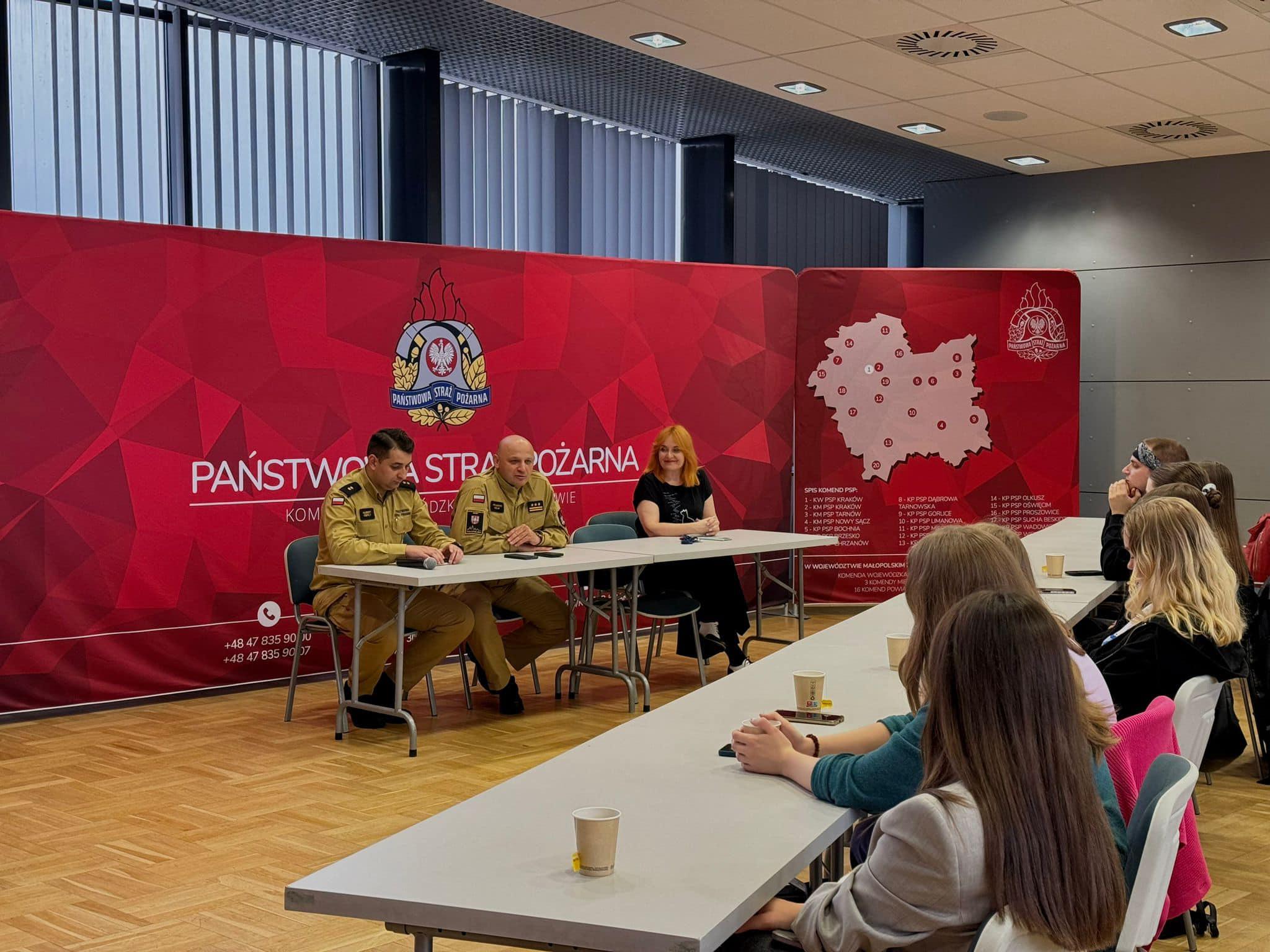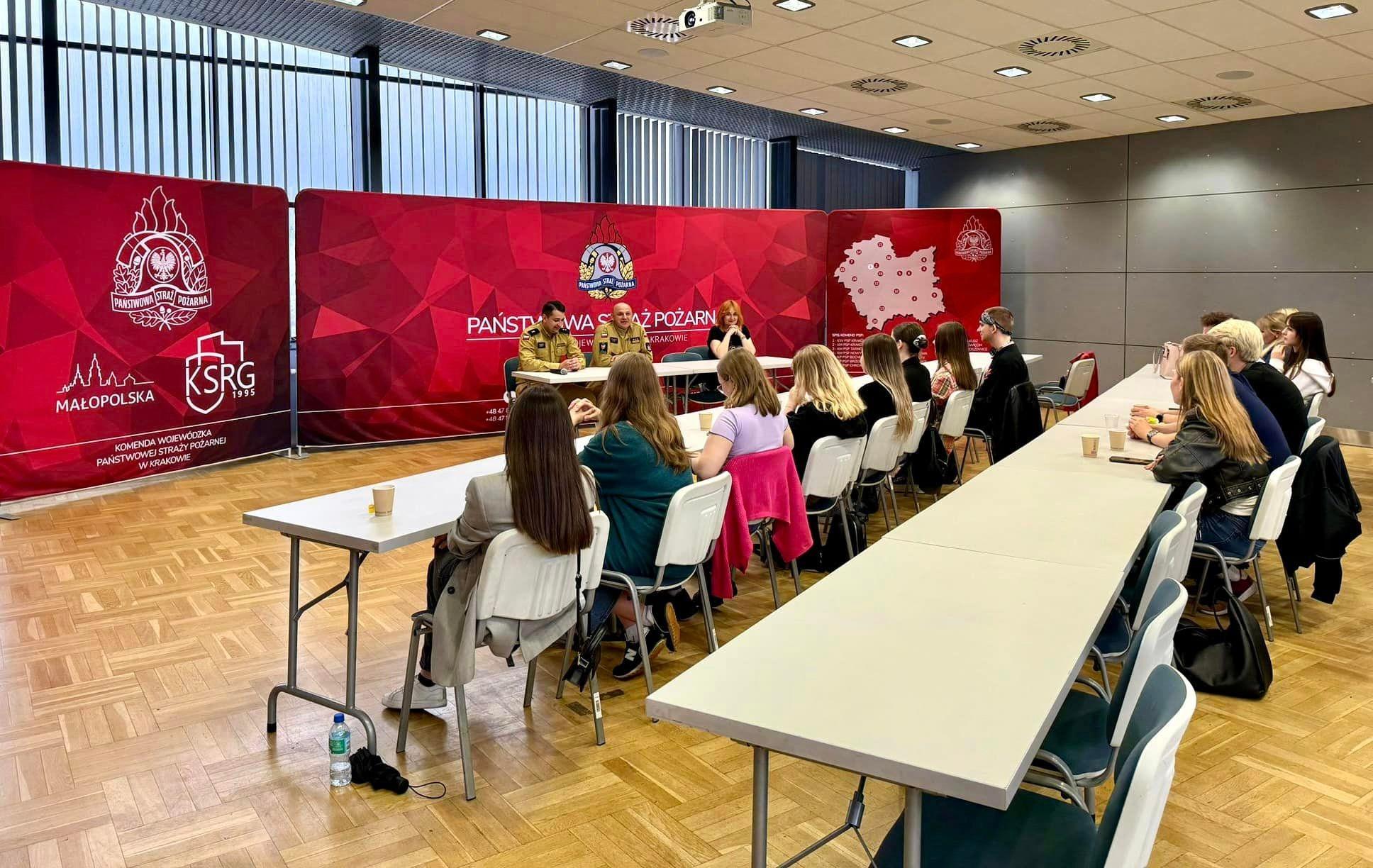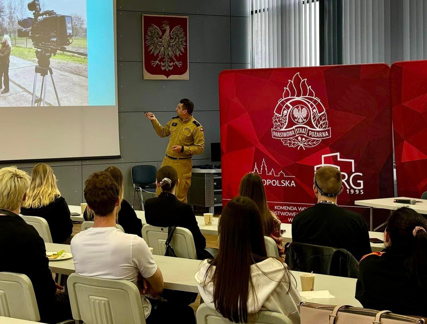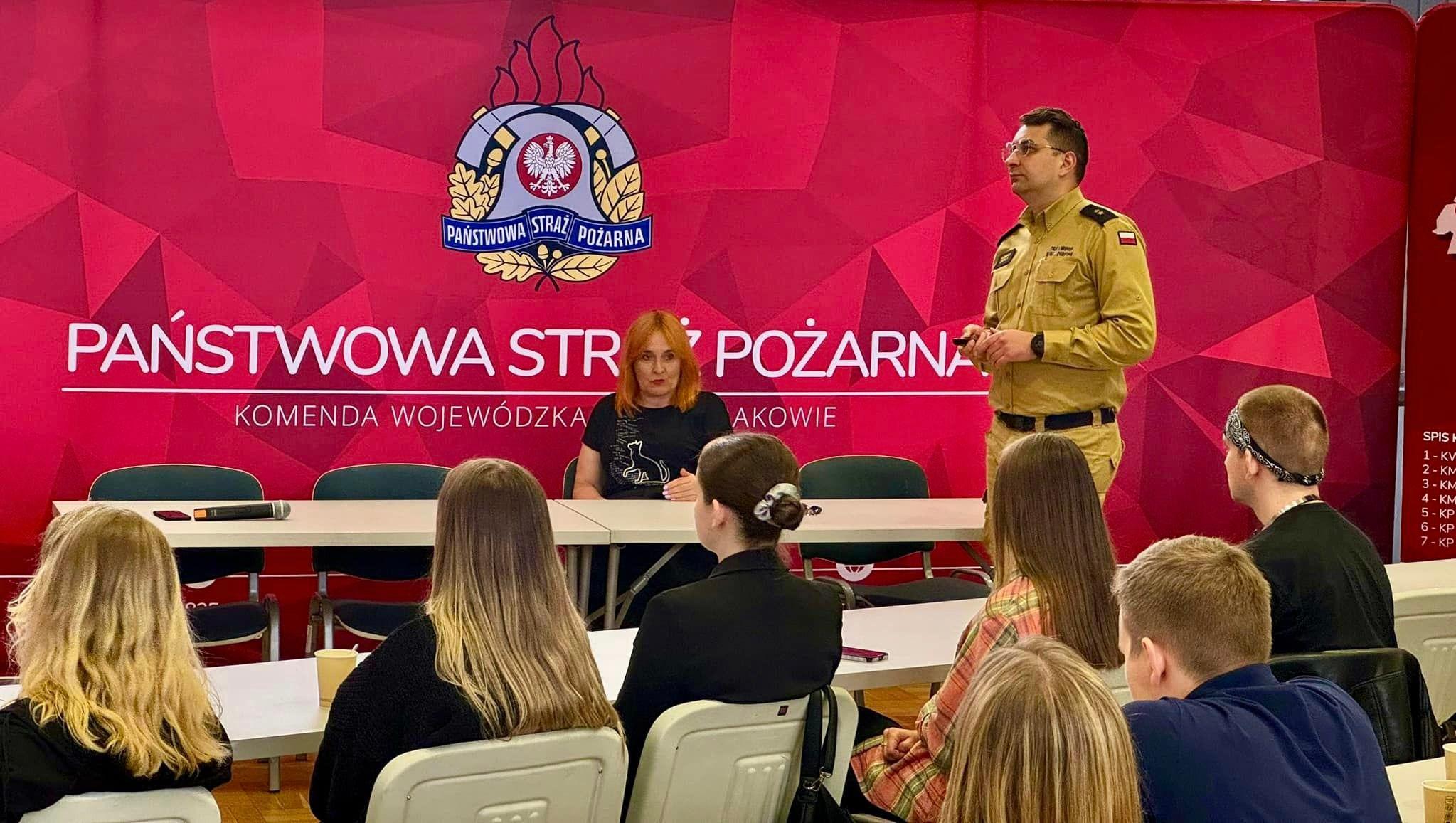 Warsztaty przeprowadzone były przez mł. kpt. Huberta Ciepłego Rzecznika Prasowego Małopolskiego Komendanta Wojewódzkiego Państwowej Straży Pożarnej.