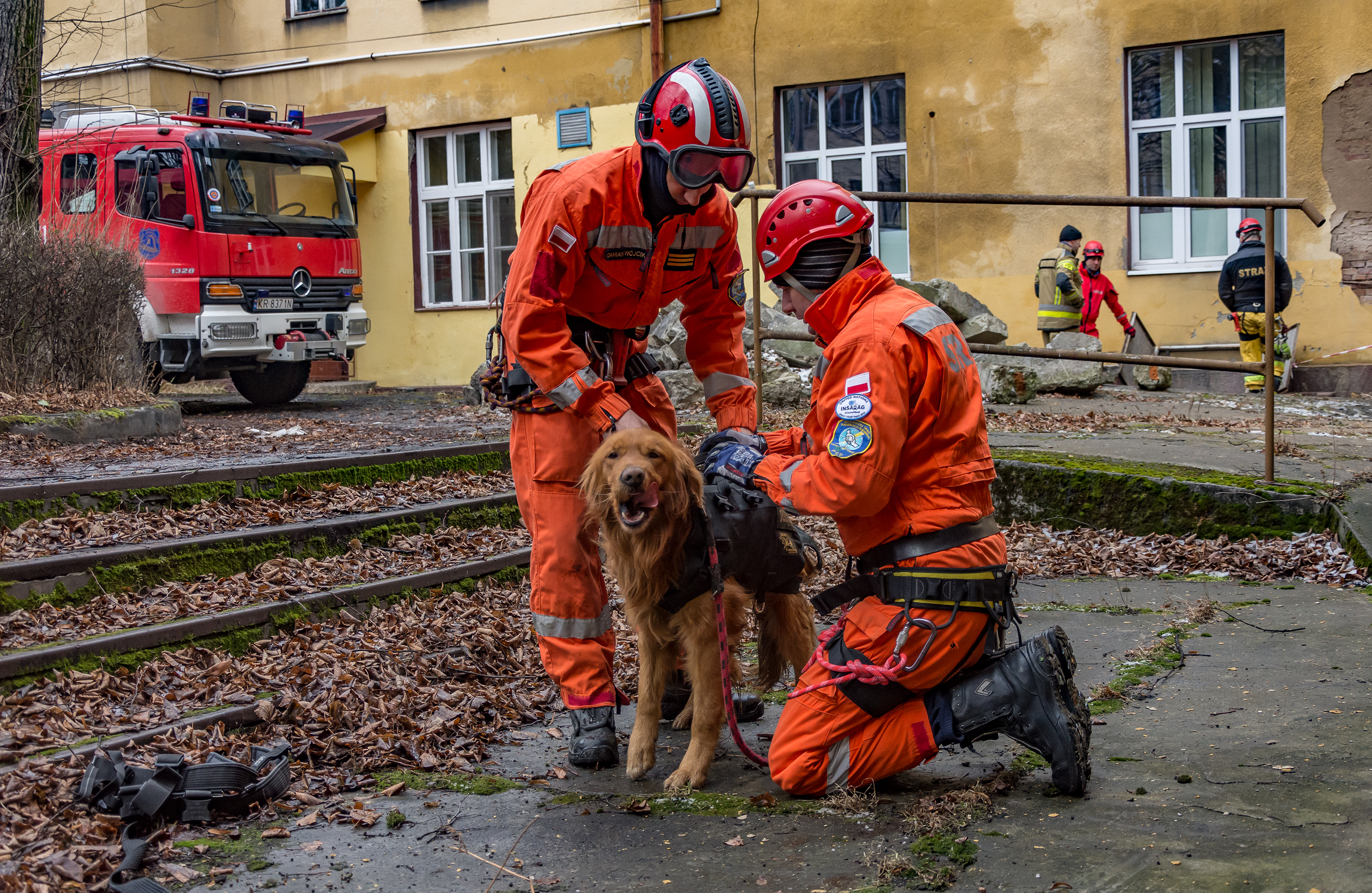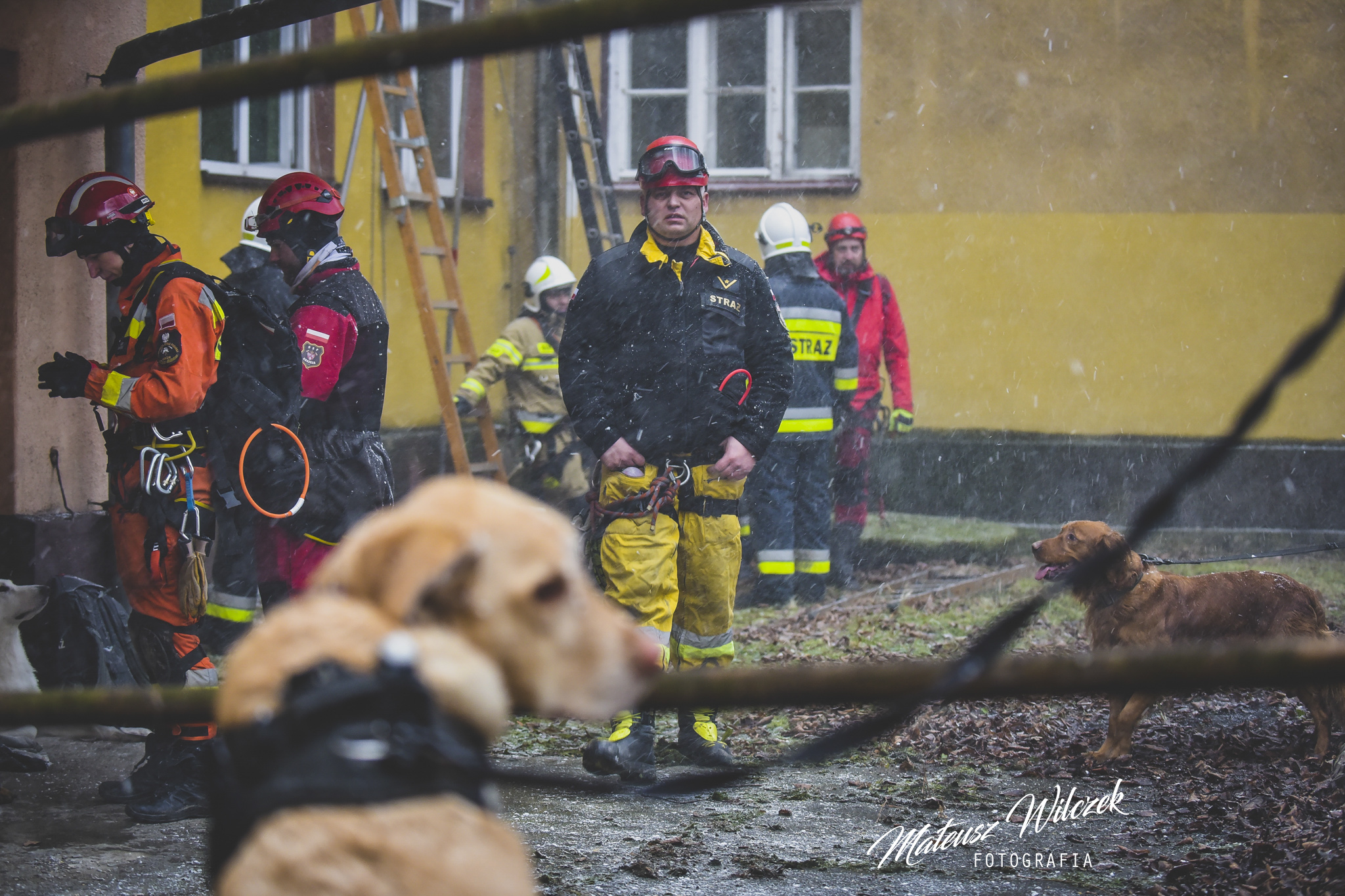 W dniu 20 stycznia br. na terenie byłego szpitala w Wadowicach odbyły się warsztaty dla małopolskich przewodników psów gruzowiskowych ze Specjalistycznej Grupy Poszukiwawczo Ratowniczej PSP w Nowym Sączu oraz z OSP: Wieprz, Kęty, Goszcza, Mników. Pozorantami byli zaprzyjaźnieni druhowie z OSP: Sucha Beskidzka, Bieruń, Mucharz, Klecza Dolna oraz Roczyny.