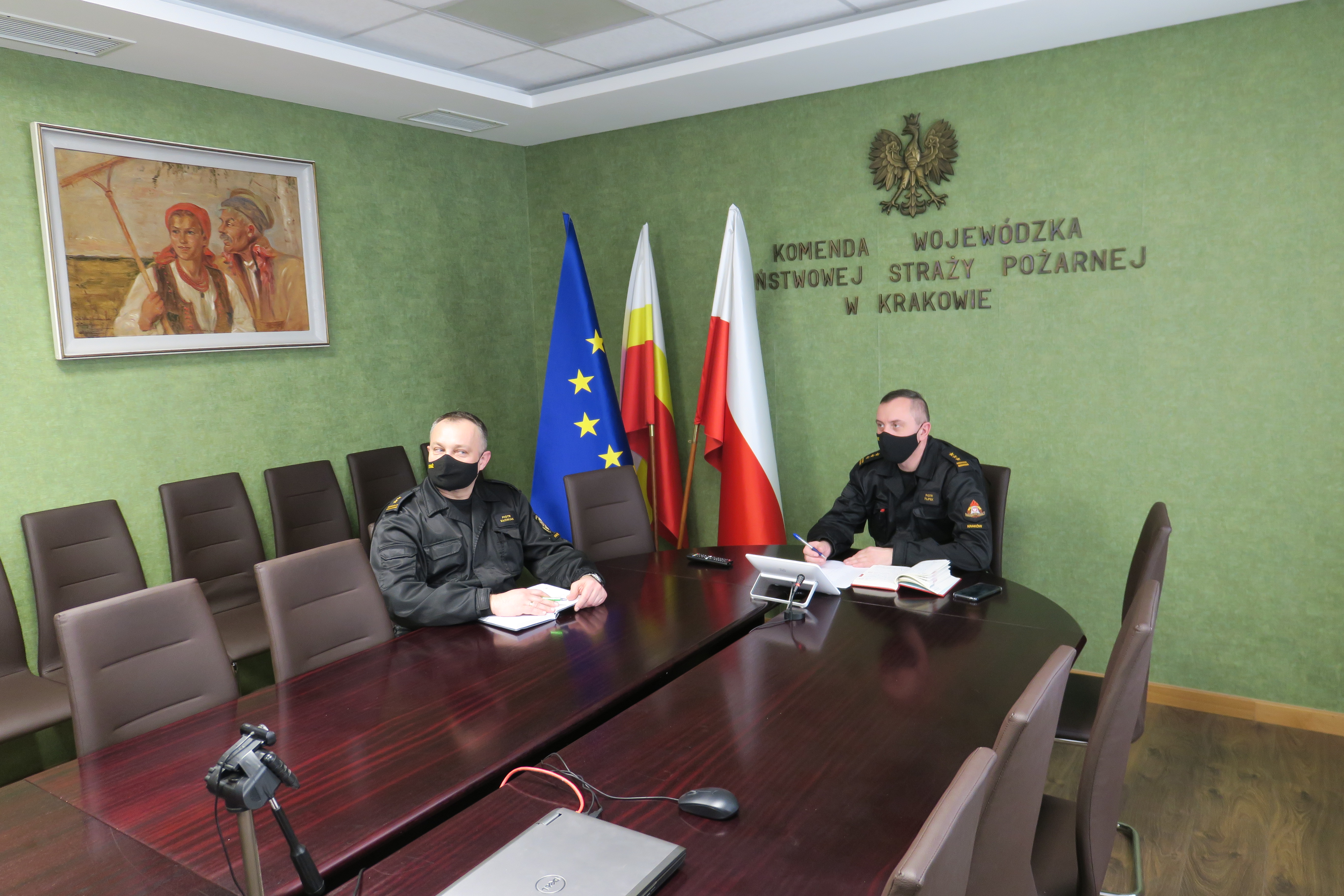 W dniu 15 marca br małopolski komendant wojewódzki PSP st. bryg. Piotr Filipek oraz zastępca komendanta bryg. Piotr Słowiak podczas wideokonferencji z komendantami powiatowymi (miejskimi) PSP woj. małopolskiego przedstawili najważniejsze informacje związane z rozpoczynającą się w bieżącym tygodniu akcją informacyjną nt. szczepień oraz planowanymi szczepieniami funkcjonariuszy PSP i druhów OSP.