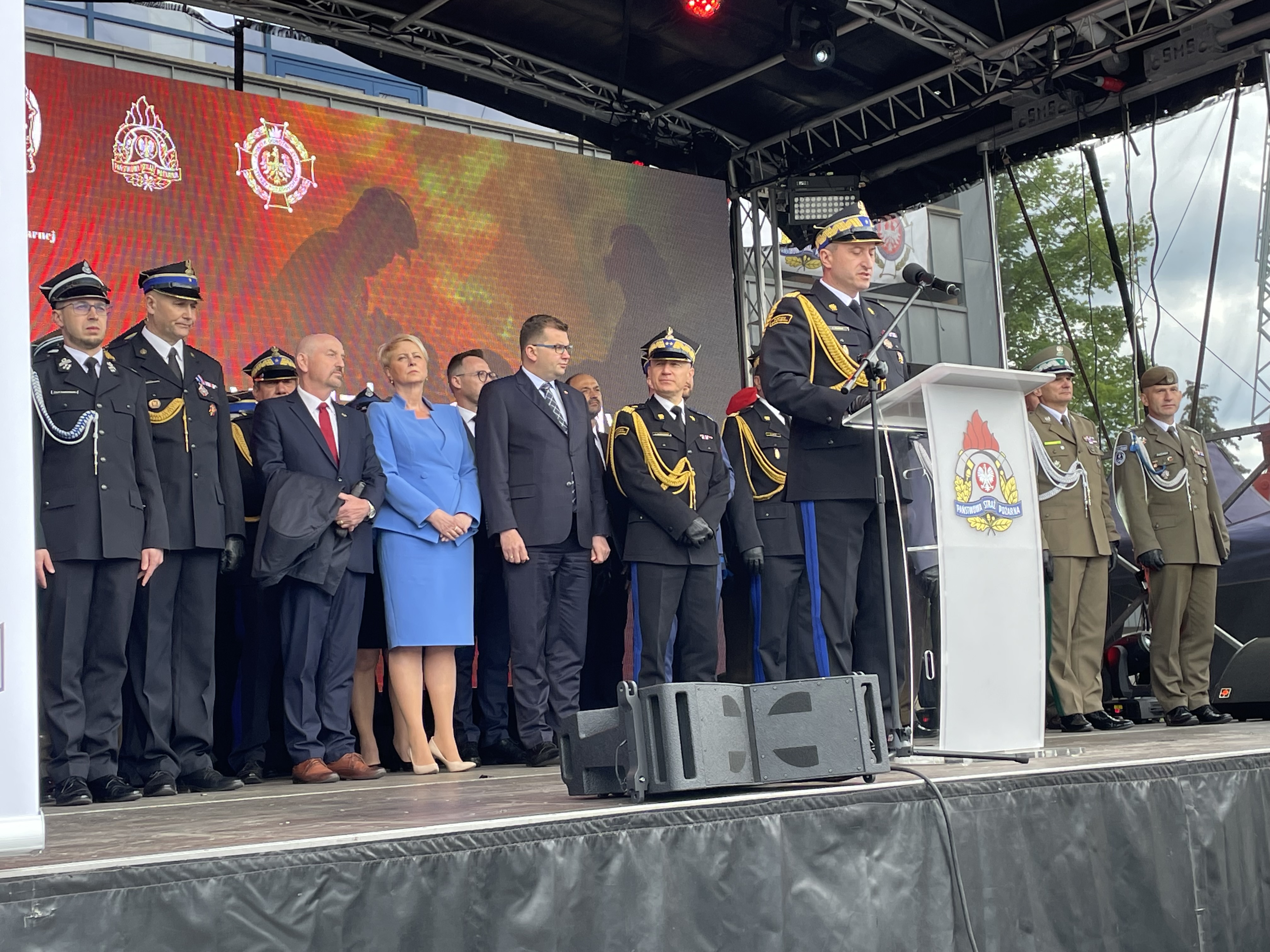 - „Polskiego orła w koronie nosimy też za granicą. Jesteśmy podczas katastrof: Haiti, Nepalu w Bejrucie. Jesteśmy podczas pożarów: Szwecji, Grecji, Turcji. Pomagamy przy powodziach. Pomagamy humanitarnie w wielu państwach, walczymy z pandemią. Wszędzie tam był polski strażak i niósł ze sobą hasła z roty ślubowania, realizowane na najwyższym poziomie”- powiedział komendant główny PSP podczas przemówienia.