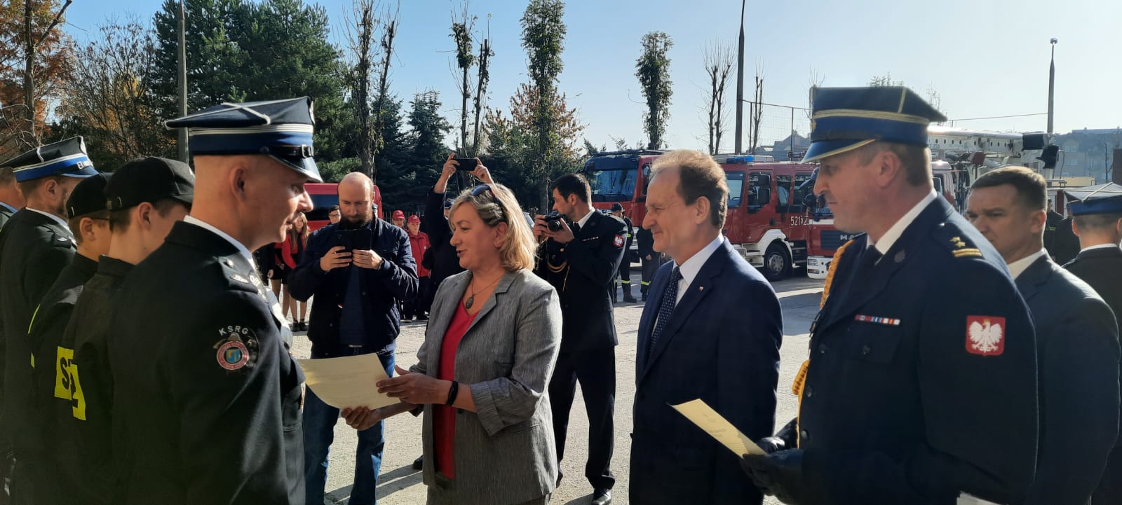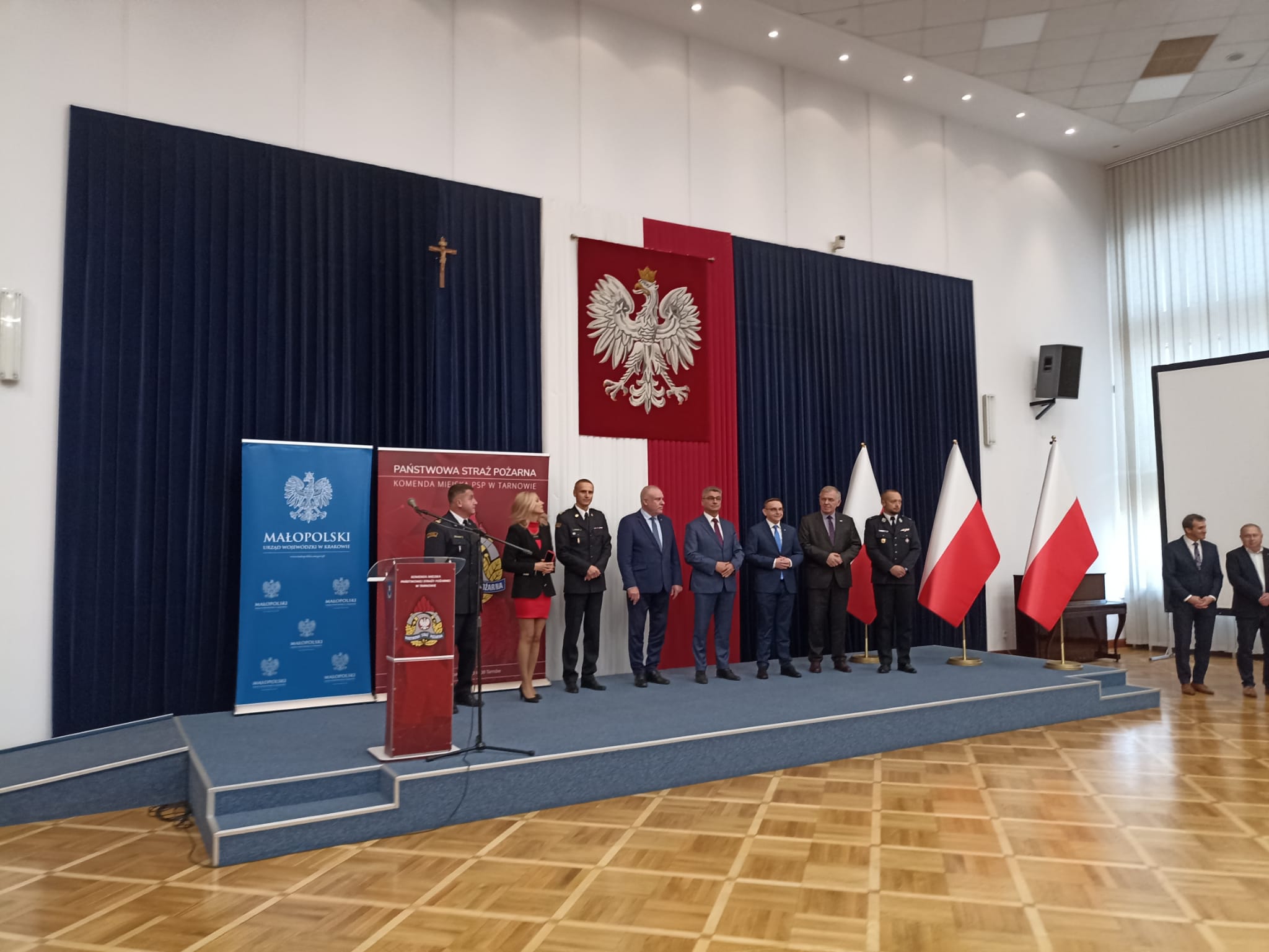 Nadbryg. Piotr Filipek, Małopolski Komendant Wojewódzki PSP wspólnie z zastępcami MKW PSP st. bryg. Mariuszem Łaciakiem, bryg. Przemysławem Przęczkiem oraz bryg. Pawłem Żabą, wziął udział w uroczystości wręczenia promes na dofinansowanie Młodzieżowych Drużyn Pożarniczych OSP z terenu woj. małopolskiego.