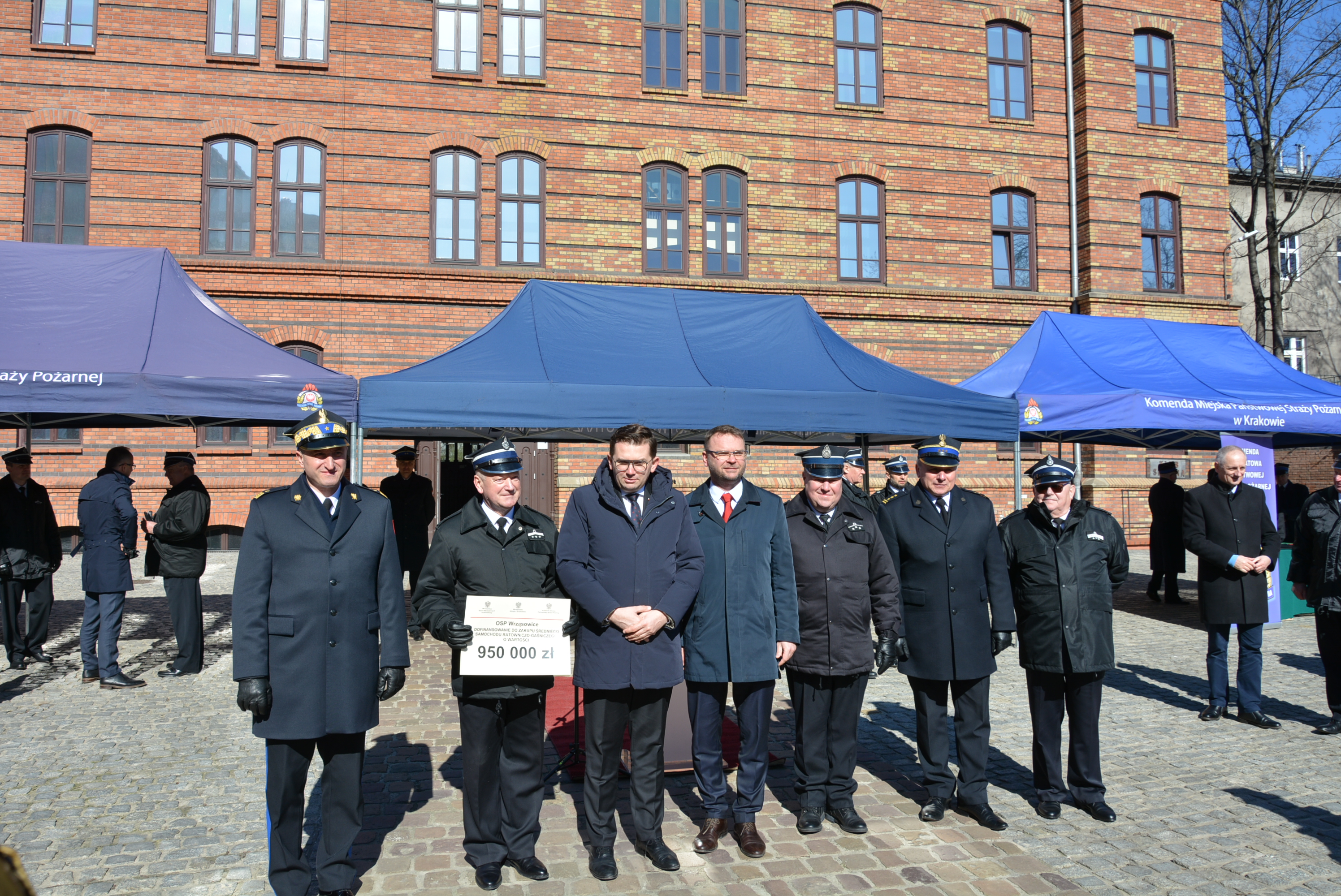 Wręczenie promes na zakup pojazdów ratowniczo-gaśniczych dla jednostek OSP z powiatów krakowskiego, miechowskiego, olkuskiego, tarzańskiego. limanowskiego i nowotarskiego