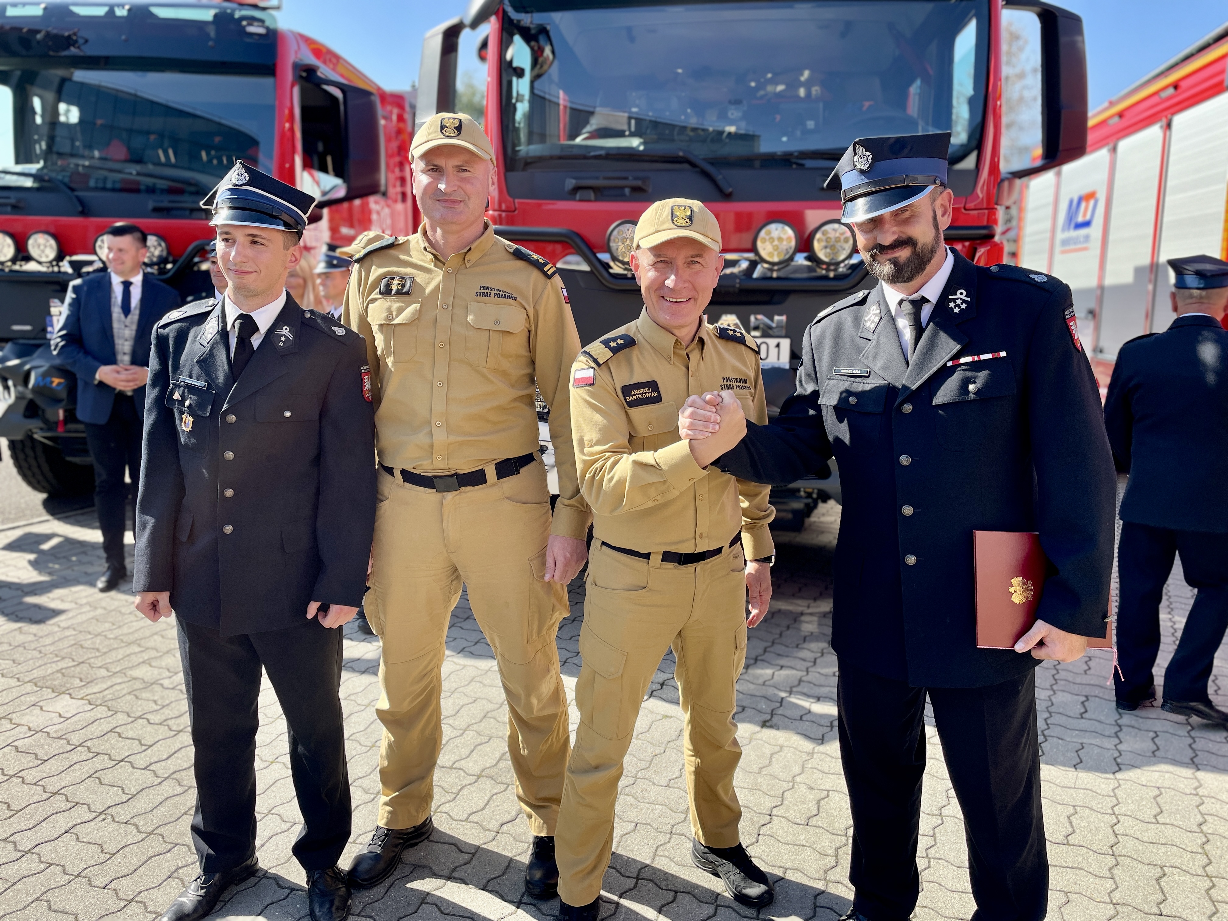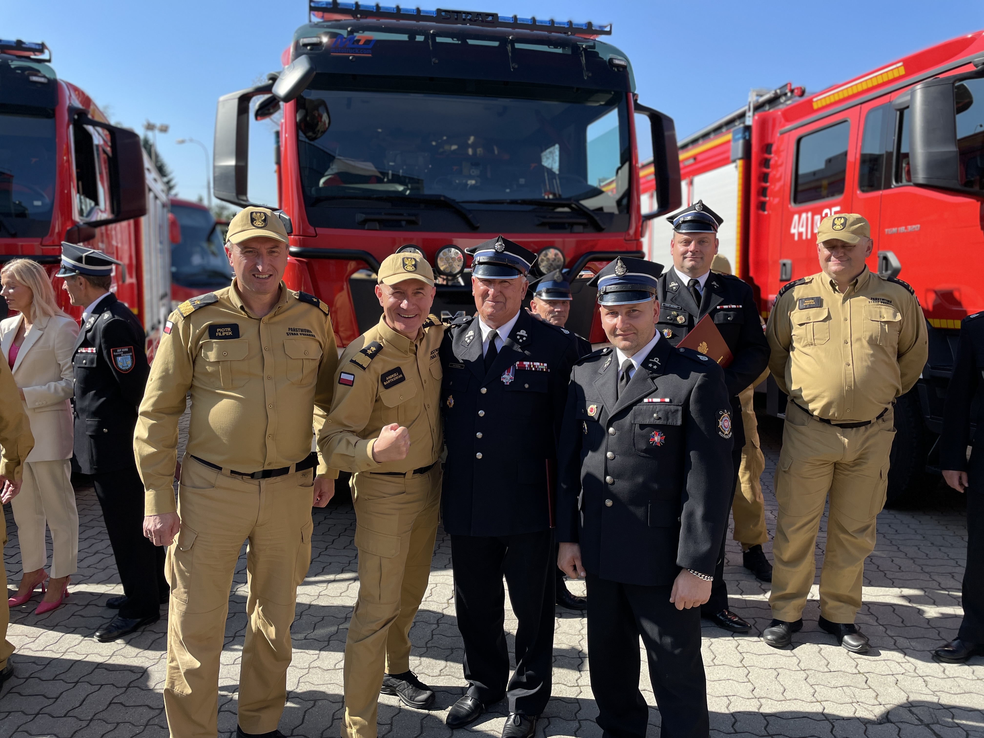 W ramach projektu „Usprawnienie systemu ratownictwa na drogach – Etap V” finansowanego ze środków Funduszu Spójności w ramach Programu Infrastruktura i Środowisko dla komend miejskich i powiatowych Państwowej Straży Pożarnej zakupionych zostało 21 nowych samochodów pożarniczych, a kwota inwestycji to ponad 27 milionów złotych. Projekt realizowany w latach 2022-2023. W dniu dzisiejszym symboliczne przekazano 4 samochody: 3 ciężkie oraz 1 średni dla: