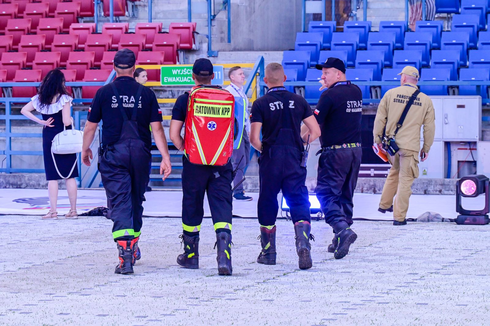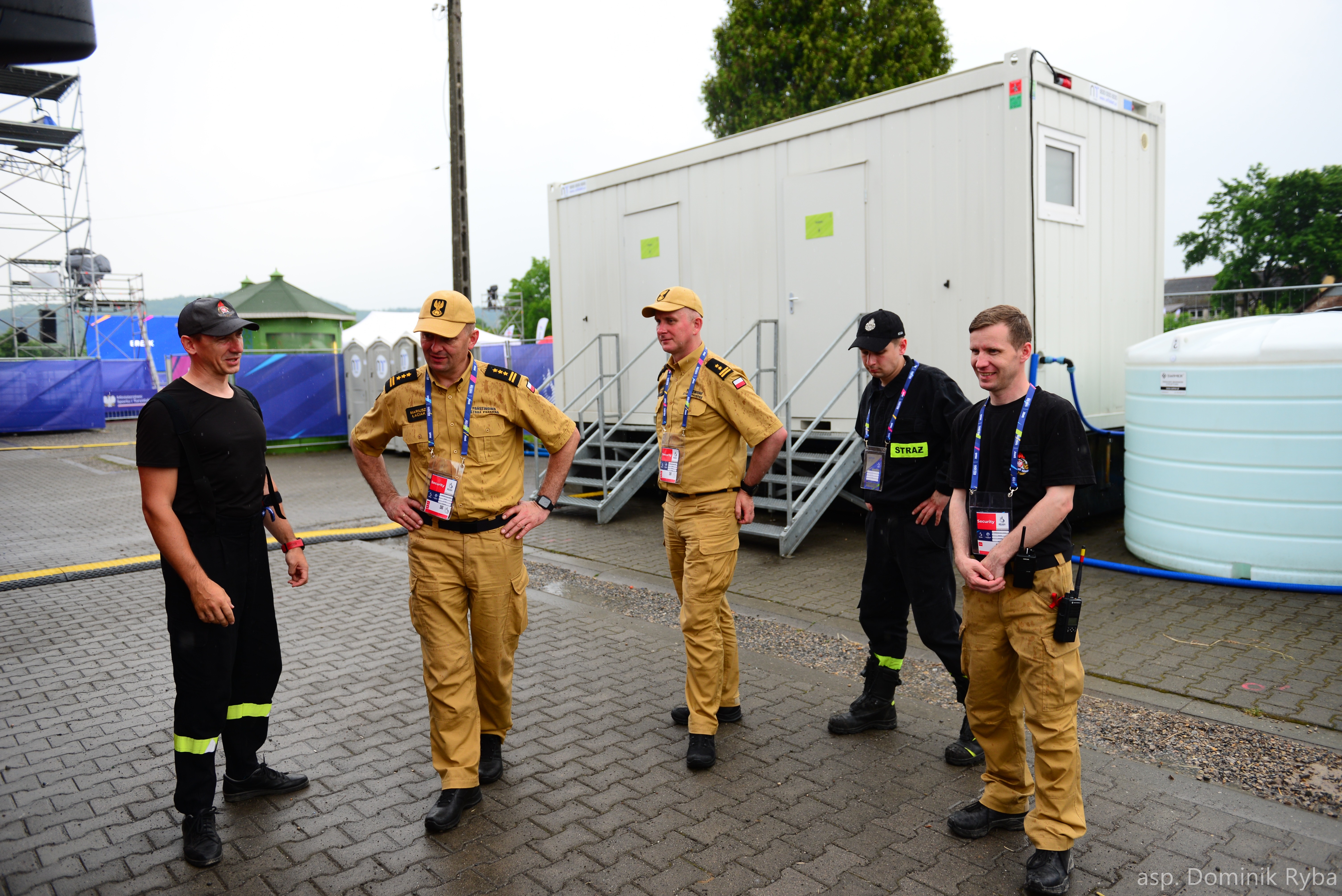 Strażacy zorganizowali oprócz zabezpieczenia przez samochody ratowniczo - gaśnicze będące na miejscu, dodatkowo PATROLE PIESZE. „Patrol Pieszy” - składa się z 4 ratowników, wyposażony w plecak pierwszej pomocy oraz gaśnice i koc gaśniczy. Poruszają się po terenie zabezpieczenia w miejscach o dużym nagromadzeniu osób.