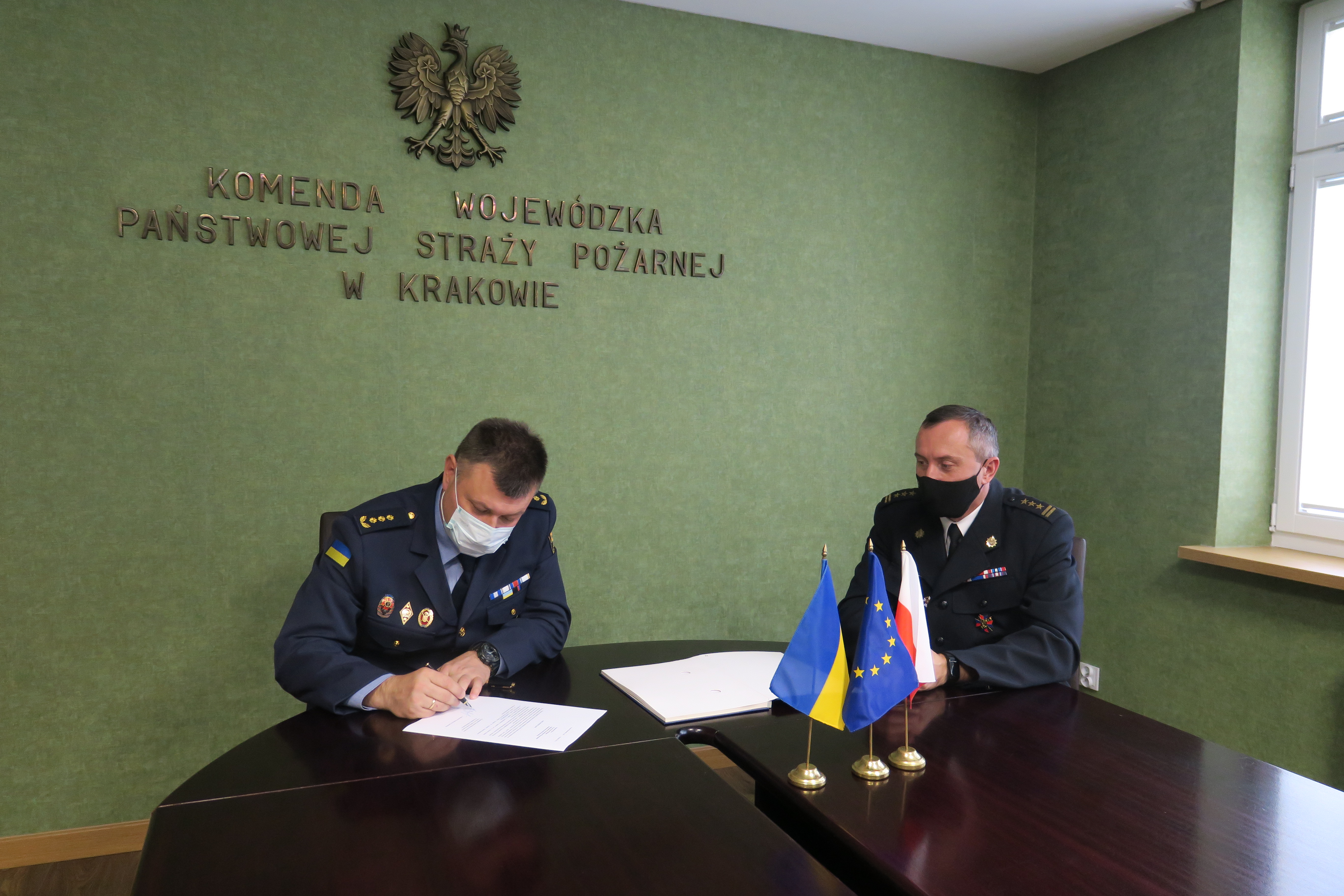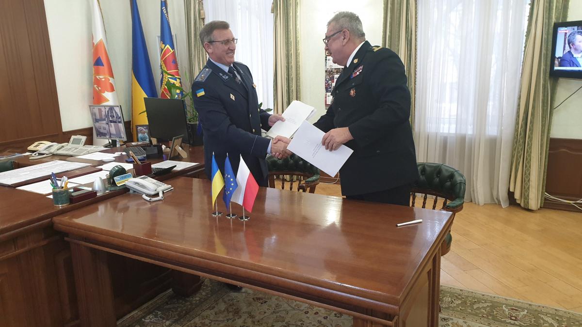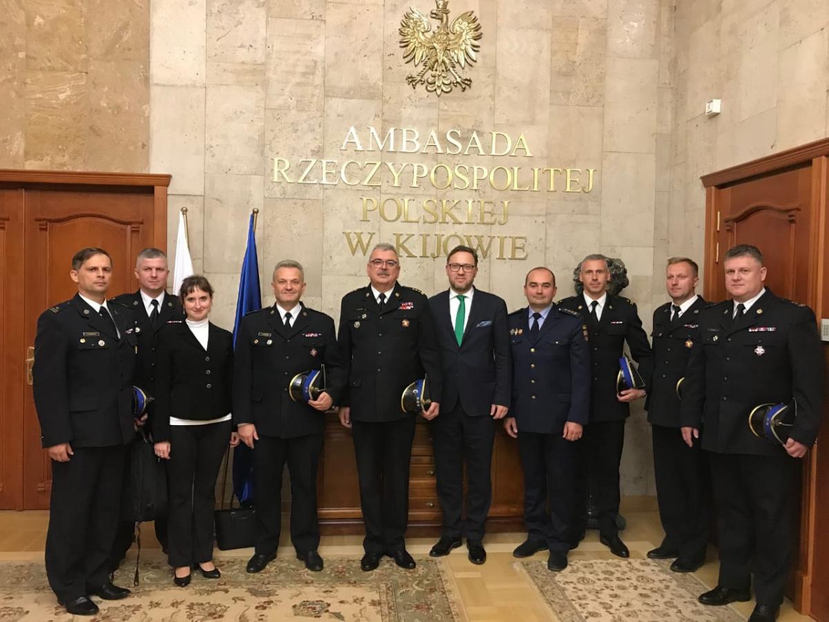 - Wizyta studyjna. W dniach 24-28 października 2019 r. 8-osobowa delegacja Państwowej Straży Pożarnej woj. małopolskiego wzięła udział w wizycie studyjnej w Kijowie (Ukrainie). Jej celem było przeprowadzenie ewaluacji ex-ante działań zaplanowanych do realizacji w ramach projektu pn. "Zwiększenie skuteczności reagowania ukraińskich służb ratowniczych na sytuacje kryzysowe - etap III". W czasie pobytu w polscy delegaci mieli okazję spotkać się m.in. z ambasadorem nadzwyczajnym i pełnomocnym w Kijowie p. Bartoszem Cichockim oraz przedstawicielami kadry kierowniczo-dowódczej Państwowej Służby Ukrainy ds. Sytuacji Nadzwyczajnych w mieście Kijów, a także dokonać wizytacji ośrodka szkolenia.