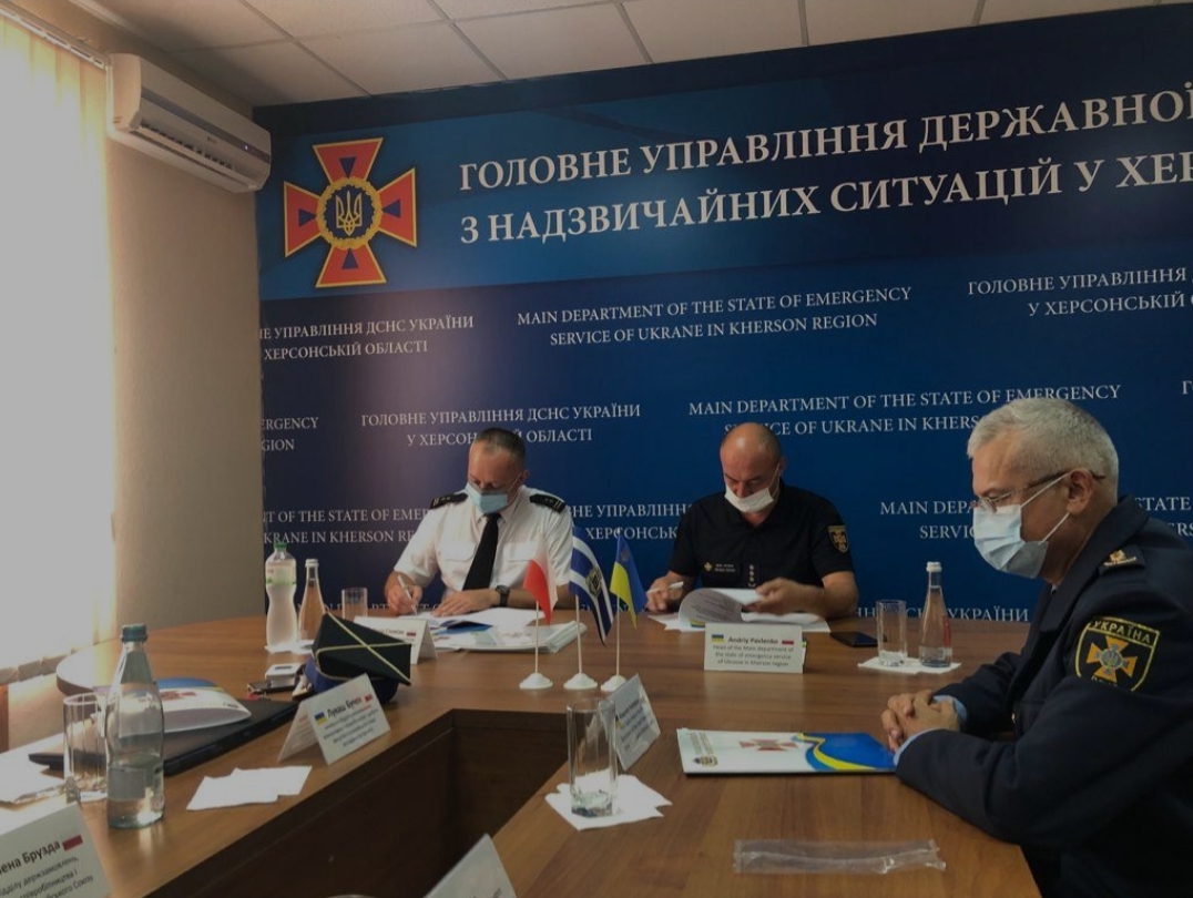 W dniach 29 sierpnia - 1 września 2021 r. sześcioosobowa delegacja z Komendy Wojewódzkiej Państwowej Straży Pożarnej w Krakowie pod przewodnictwem bryg. Piotra Słowiaka wzięła udział w wizycie studyjnej w wybranych jednostkach Państwowej Służby Ukrainy ds. Sytuacji Nadzwyczajnych w Obwodzie Chersońskim. W trakcie pobytu na Ukrainie przedstawiciele małopolskiej formacji ratowniczej spotkali się m.in. z zastępcą Gubernatora Obwodu Chersońskiego p. Mykolą Yakimenko, Wicemarszałkiem Obwodu Chersońskiego p. Yuriim Sobolewskim oraz Dyrektorem Zarządu Głównego Państwowej Służby Ukrainy ds. Sytuacji Nadzwyczajnych w Obwodzie Chersońskim płk Andrijem Pavlenko. W trakcie wizyty podpisano porozumienie o wspólnej realizacji projektu pn. "Zwiększenie skuteczności reagowania ukraińskich służb ratowniczych na sytuacje kryzysowe - etap IV" finansowanego ze środków programu Polska Pomoc Rozwojowa. Ponadto przeprowadzono działania ewaluacyjne dotyczące przedmiotowego przedsięwzięcia wizytując jednostki ratowniczo-gaśnicze w Chersoniu, Nowej Kachowce oraz Skadowsku.