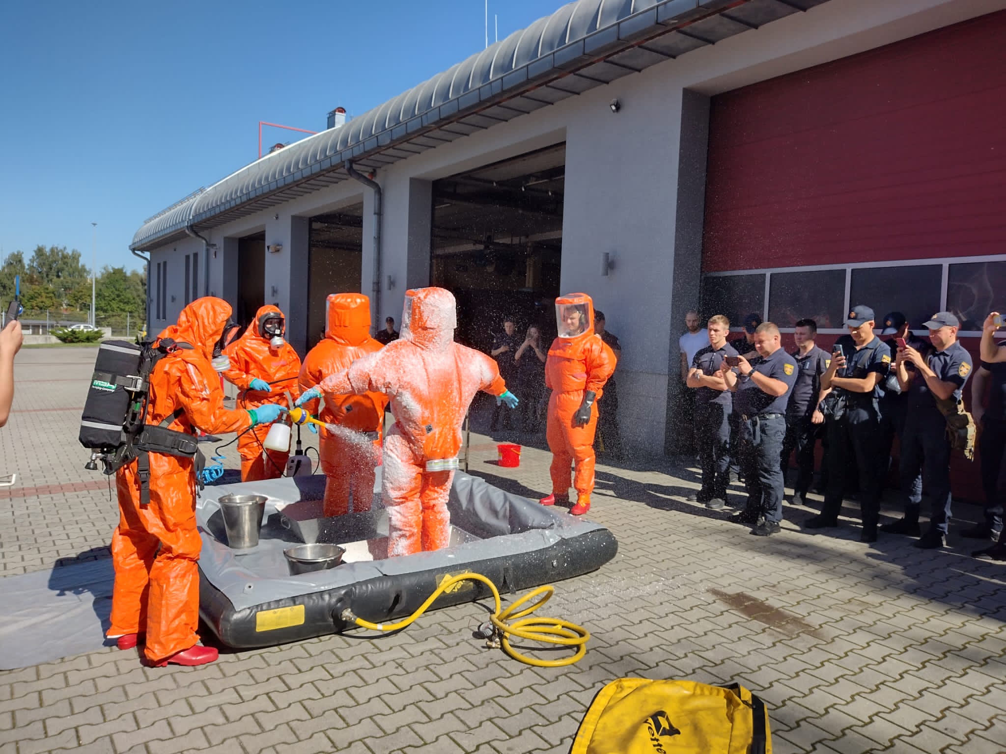 W dniach 17-23 września 2023 r. przeprowadzono szkolenie w zakresie Likwidacji skażeń chemicznych i radiologicznych ze szczególnym uwzględnieniem zdarzeń z udziałem fosforu oraz działań dekontaminacyjnych po eksplozji tzw. „brudnej bomby”. W szkoleniu wzięło udział 45 przedstawicieli Państwowej Służby Ukrainy ds. Sytuacji Nadzwyczajnych z obwodów: chersońskiego, odeskiego, iwanofrankiwskiego, chmielnickiego, tarnopolskiego, Kijowa oraz Trzeciego Specjalnego Centrum Szybkiego Reagowania.